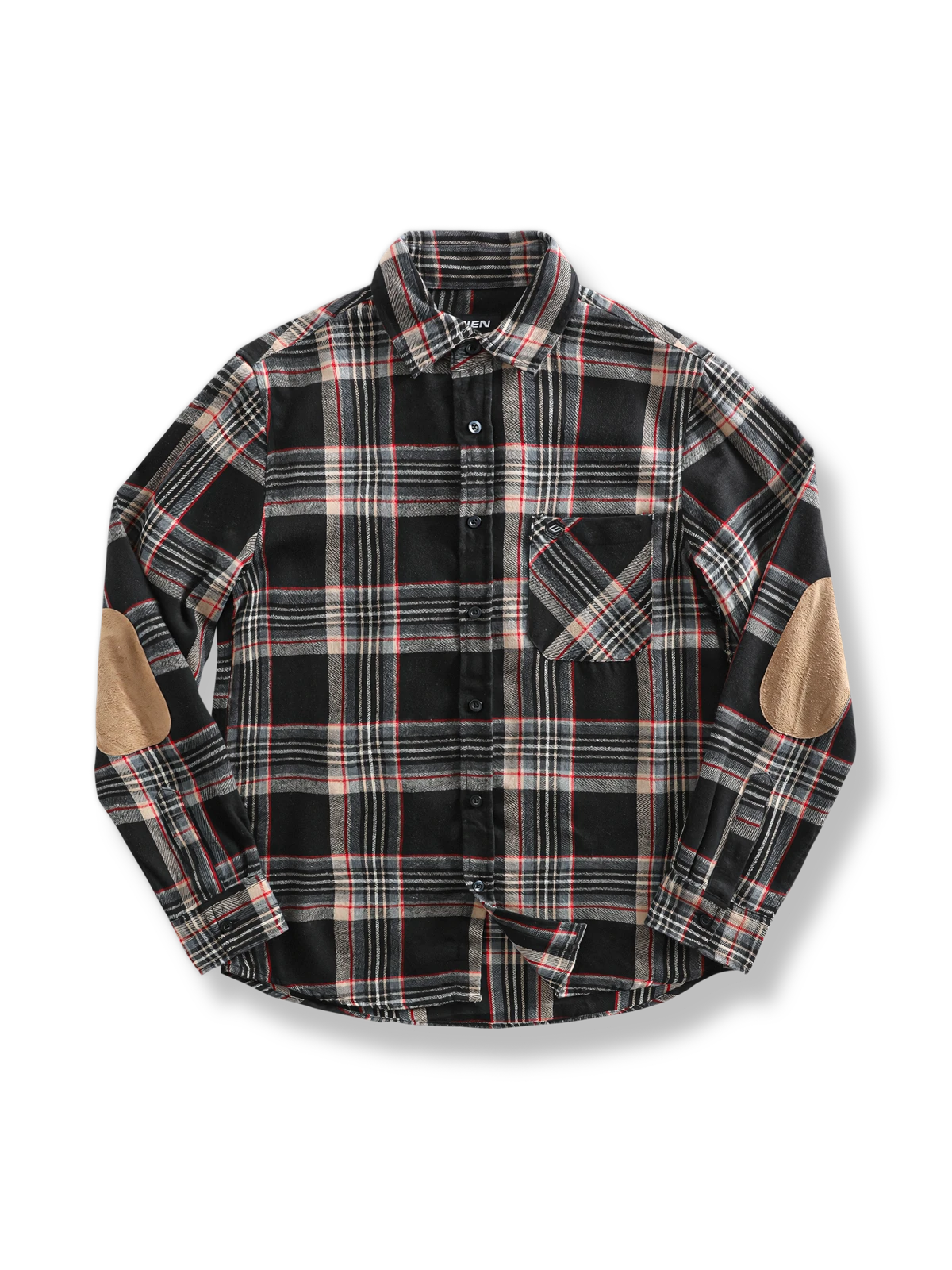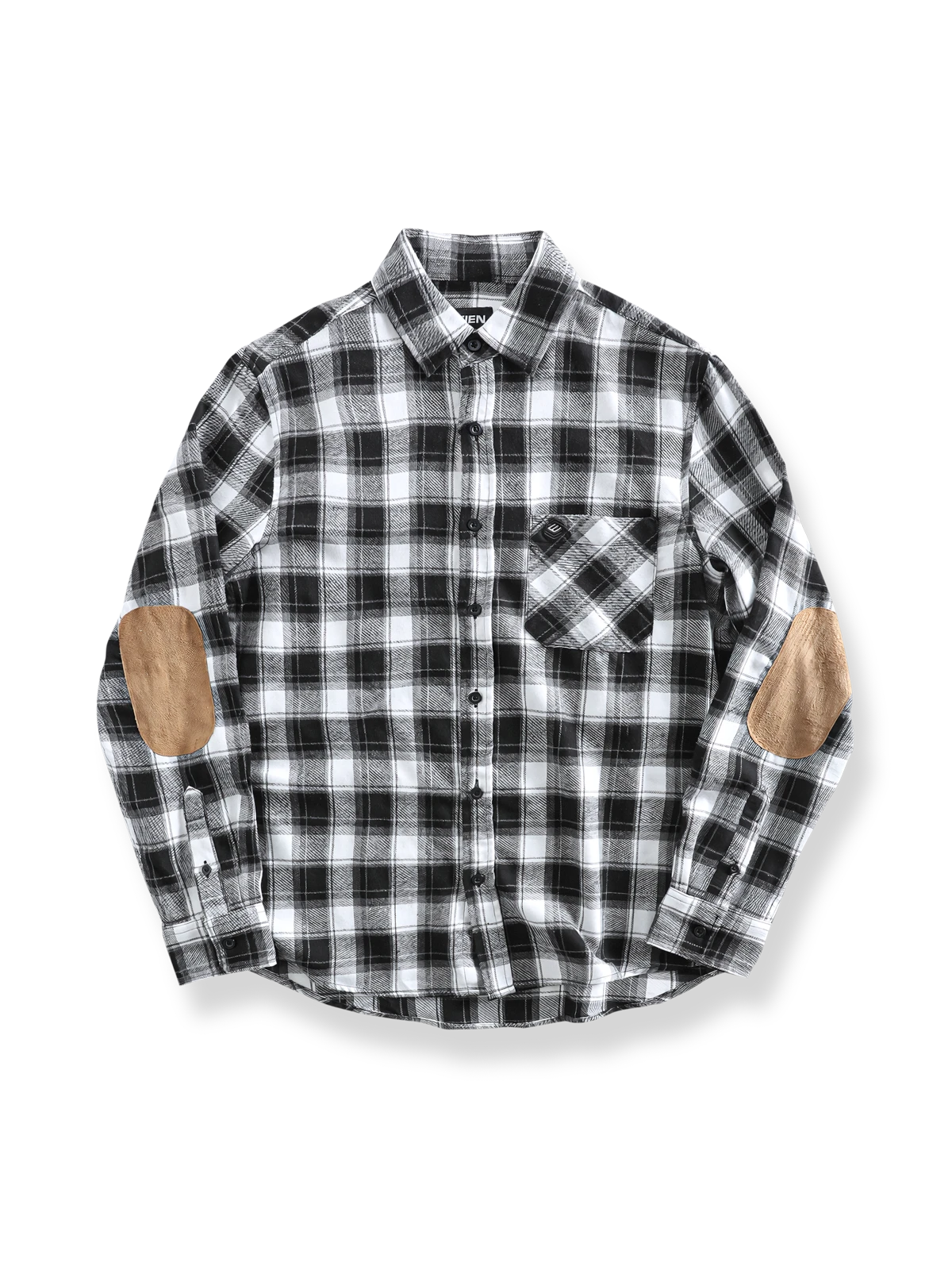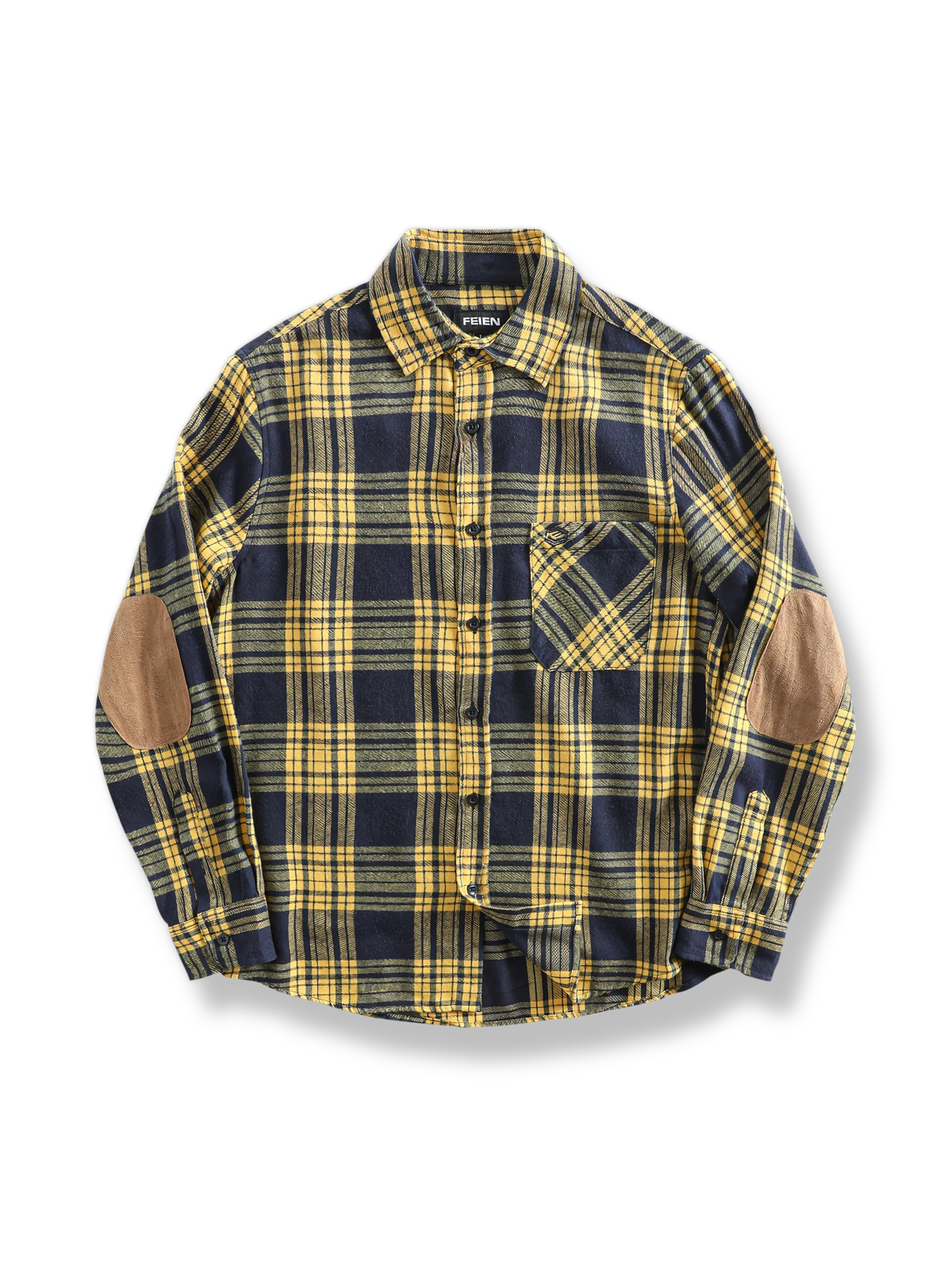 チェックシャツは、メンズウェアのクラシックアイテムであり、その起源は18世紀に遡りスコットランドのタータンチェックにまでさかのぼります。家族の象徴として登場しました。この起毛チェックシャツは、伝統的なチェックを基に、肘にパッチを加えることで、レトロかつモダンな雰囲気を演出しています。