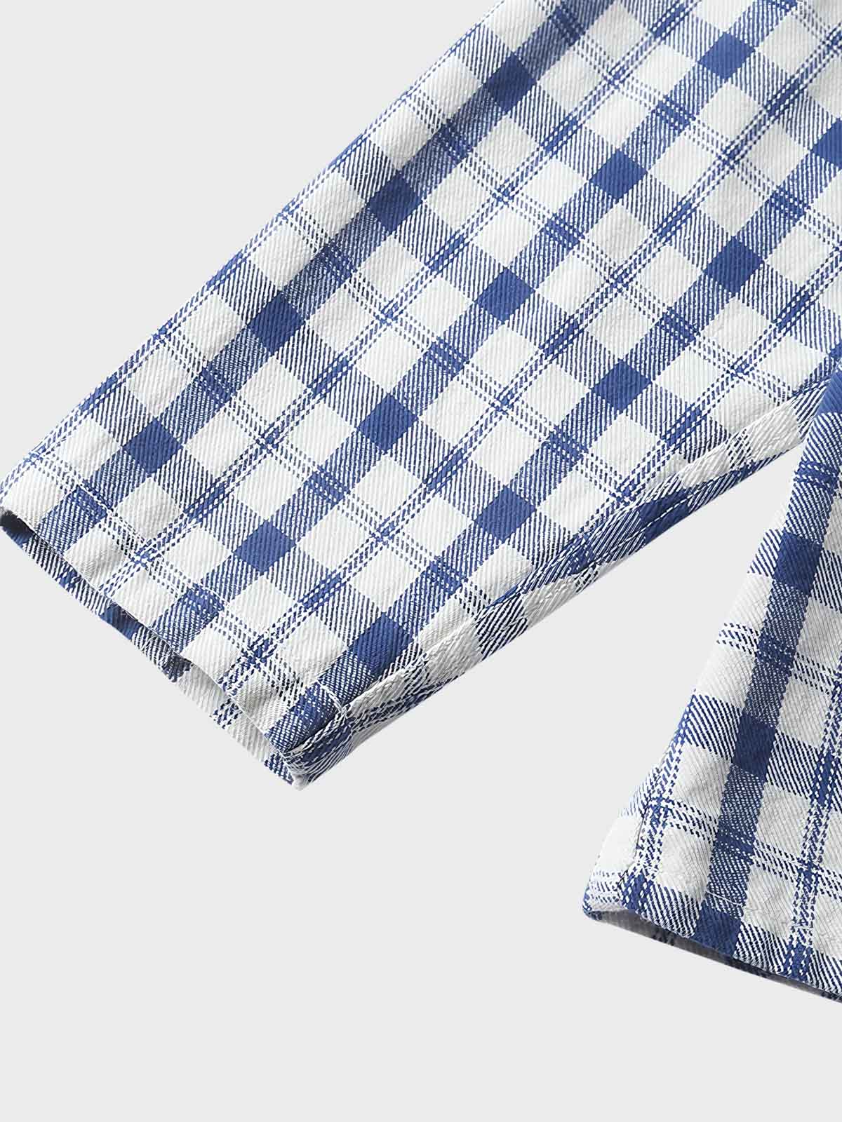 このシャツは、アメリカンクラシックワークウェアにルーツを持ち、機能性とファッション性を兼ね備えています。先染めのブルーチェックは、耐久性が高く色褪せにくい特徴を持ち、職人の技が光る伝統的なスタイルを継承しています。