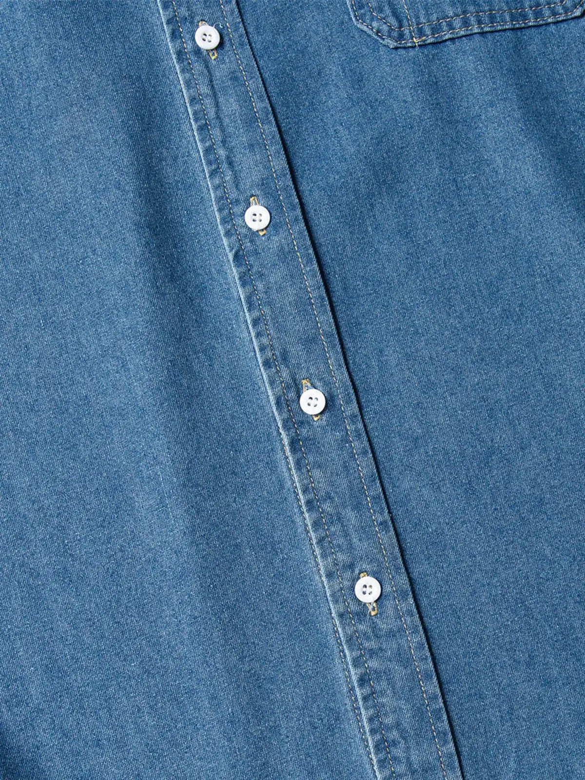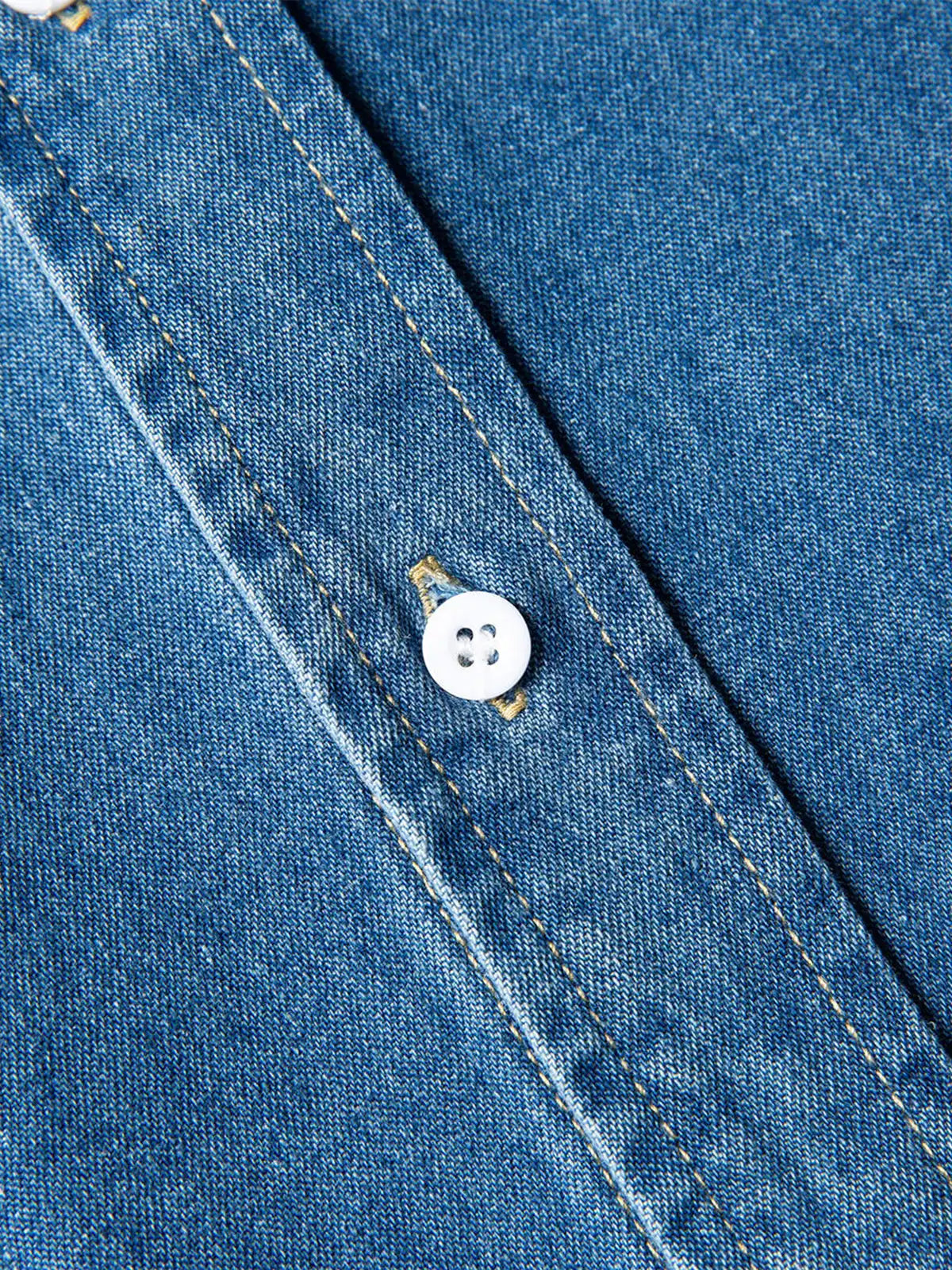 アメリカのワークシャツに端を発するデニムシャツを、日本のミニマル美学で再解釈。適度に洗いのかかったインディゴデニムは、着込むほどに表情が深まり、一枚でドラマチックな存在感を放ちます。胸ポケットやラウンドヘム、やや落としたショルダーラインがリラックスしたムードを演出し、タックインしてもアウトしてもバランスよく決まるため、デイリーから週末のお出かけまで幅広く活躍。シンプルなアイテムだからこそ、白Tシャツやベージュチノと合わせると、着こなしに抜け感と凛としたニュアンスをプラスします。