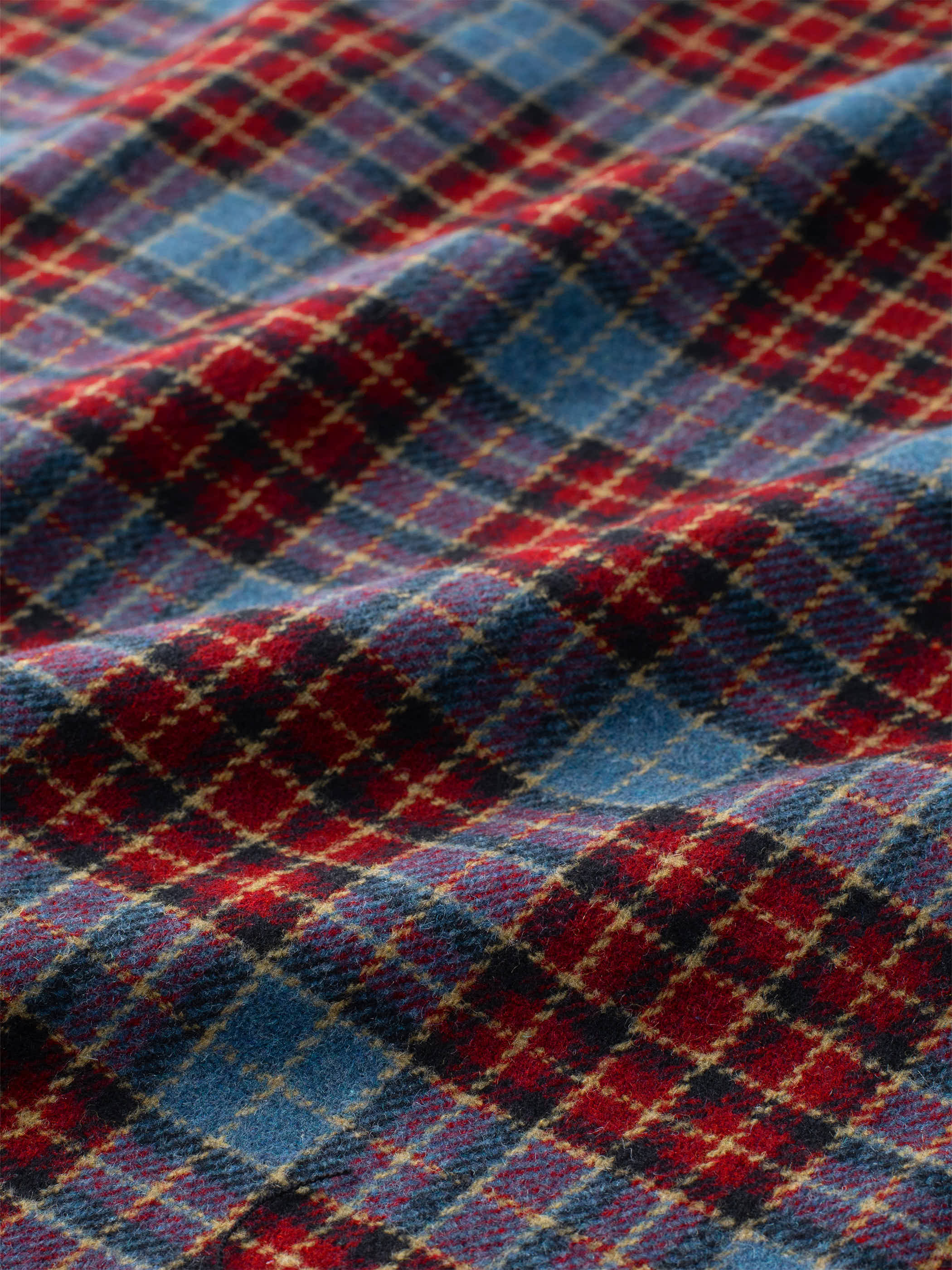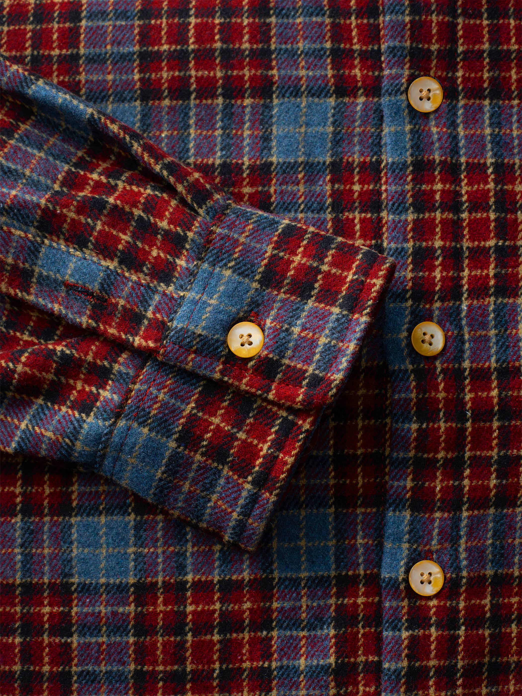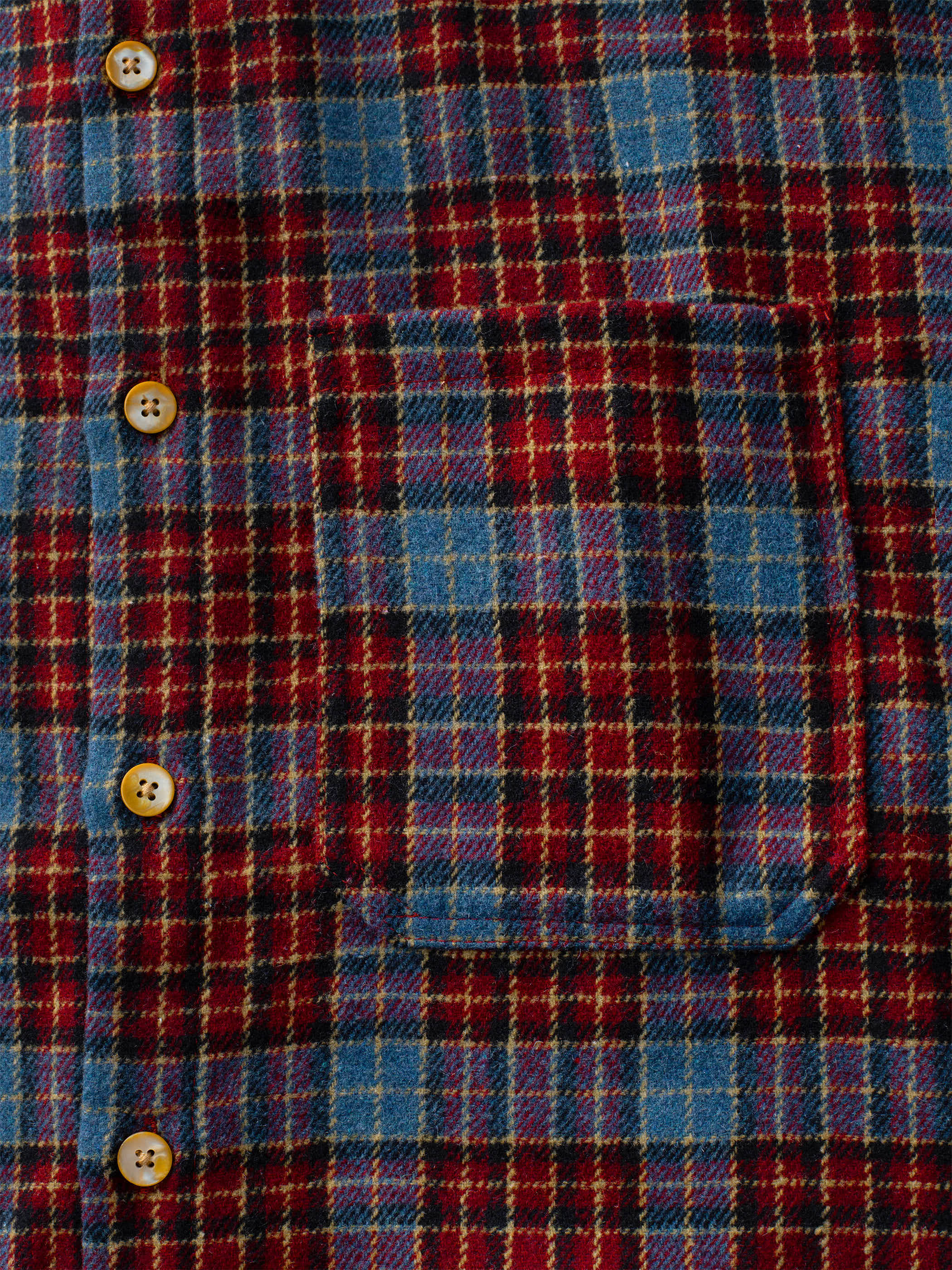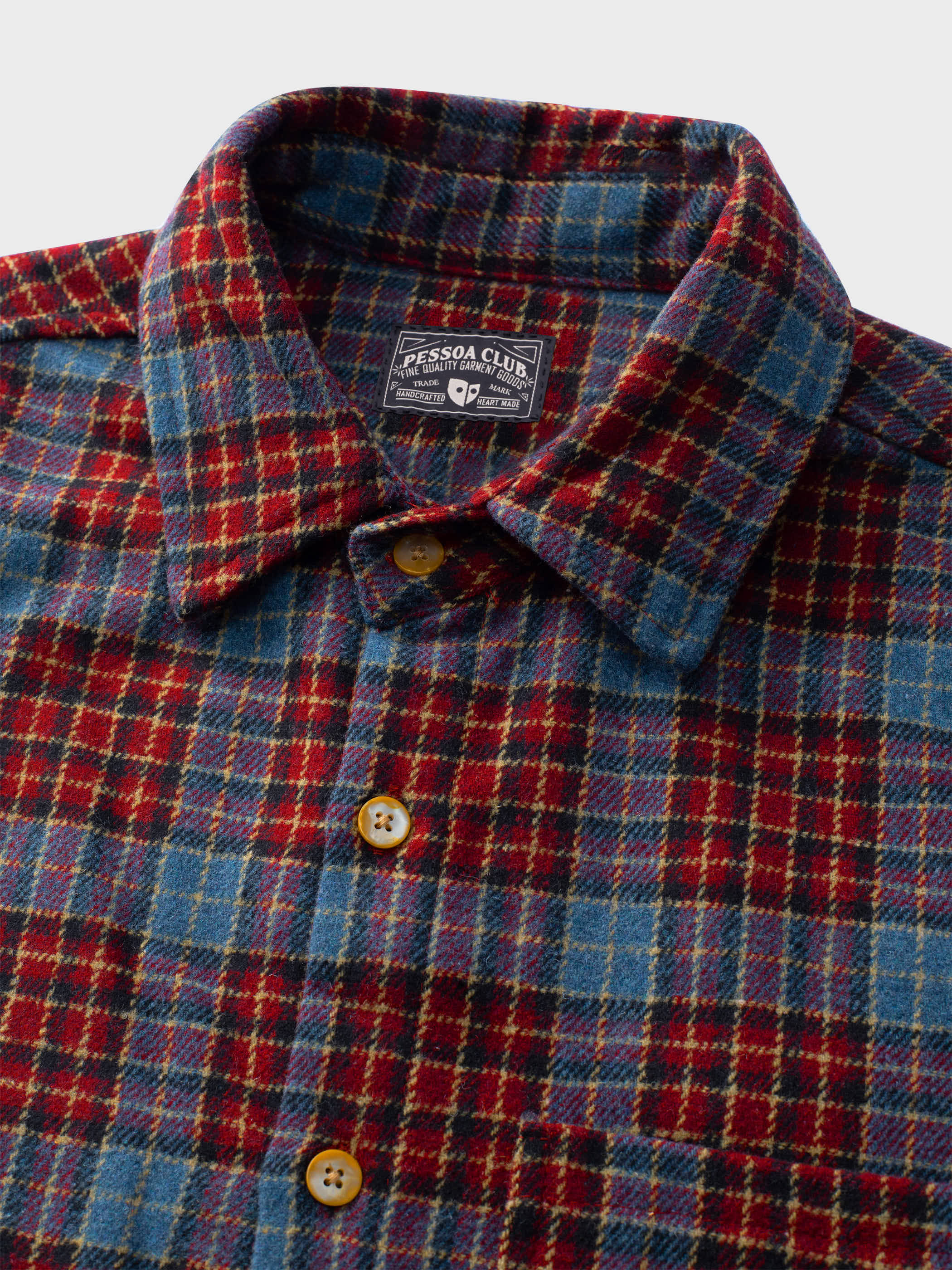 このチェック柄ワークウェアウールシャツは、赤と青のチェック柄が主役で、クラシックでおしゃれです。シンプルなシングルポケットデザインで、実用性がありながらも単調さを避けています。ウォッシュ加工によるヴィンテージ風の雰囲気がシャツに与えられ、シャープな襟デザインは基本的な魅力を向上させています。