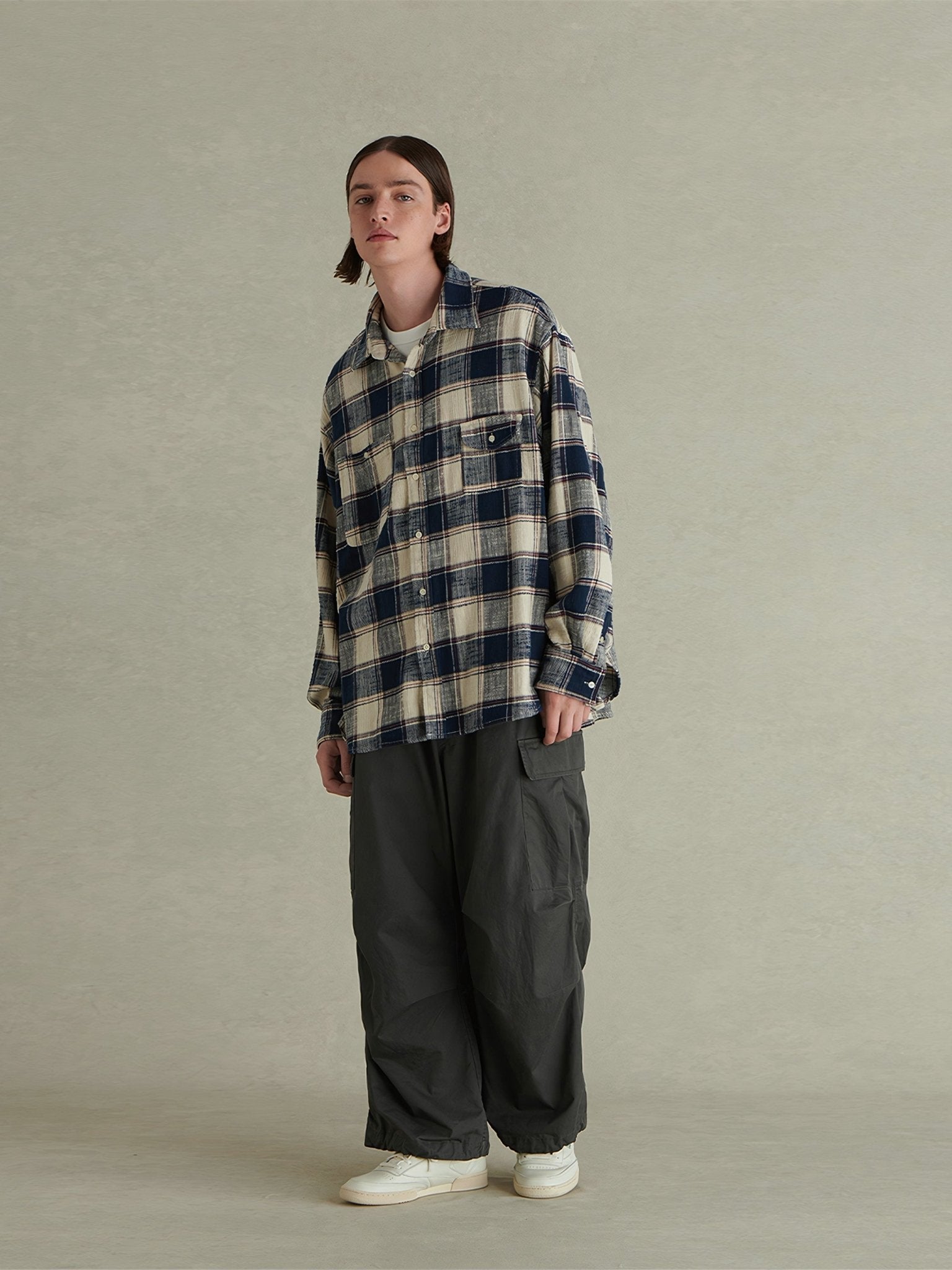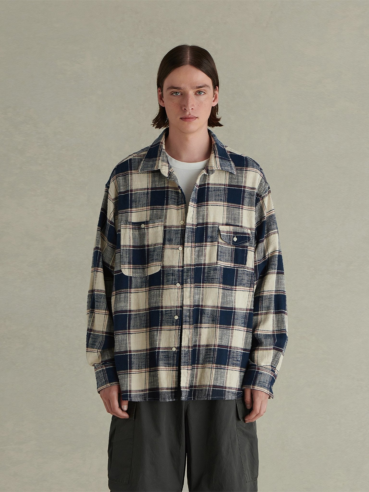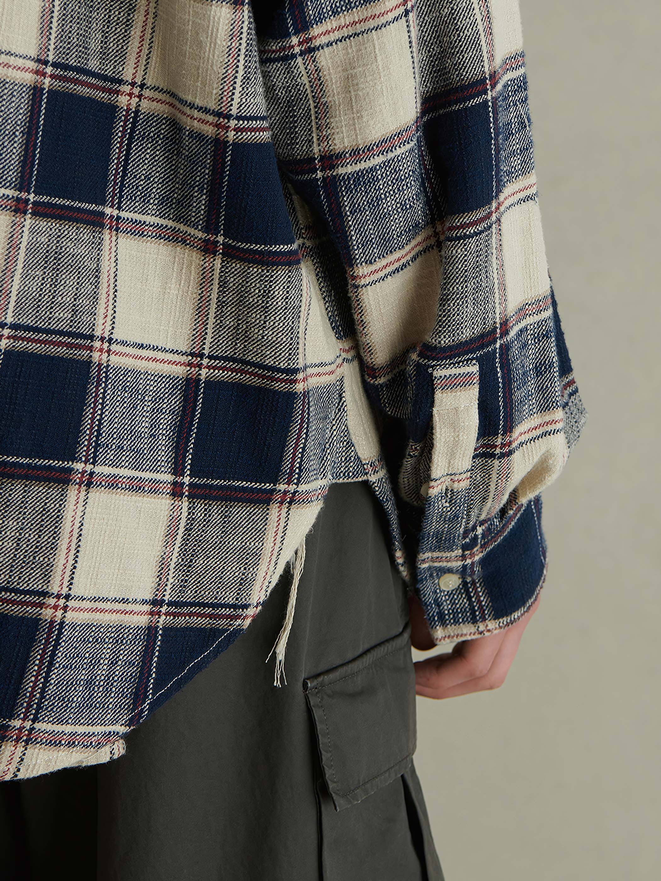 シャツはルーズなカットにデザインされ、着る際には豊富なスペースと自由度を提供し、同時にファッショナブルなルーズスタイルを演出します。ユニークな青と白の格子柄が視覚的な魅力を加え、独自の個性を引き立てます。