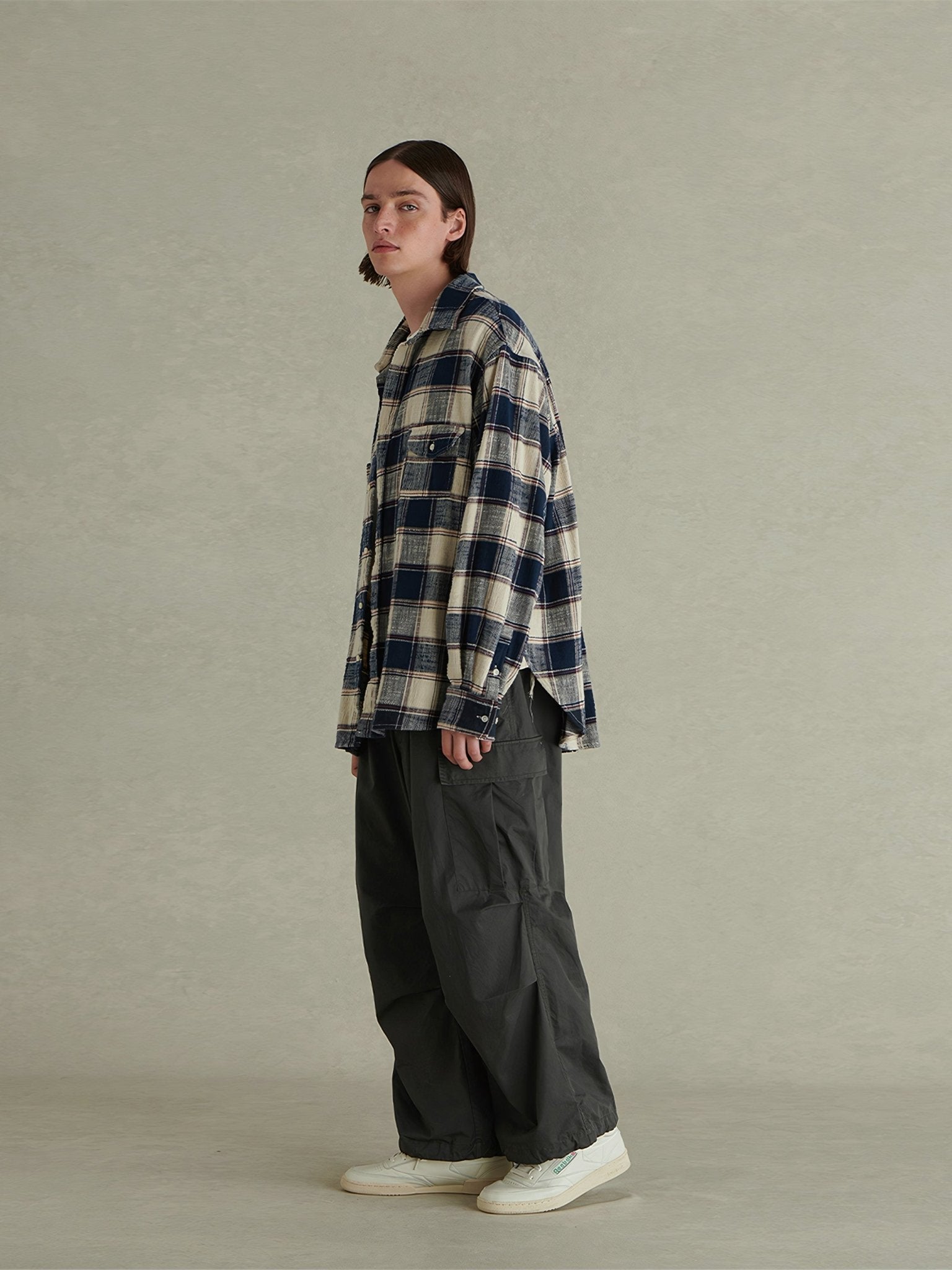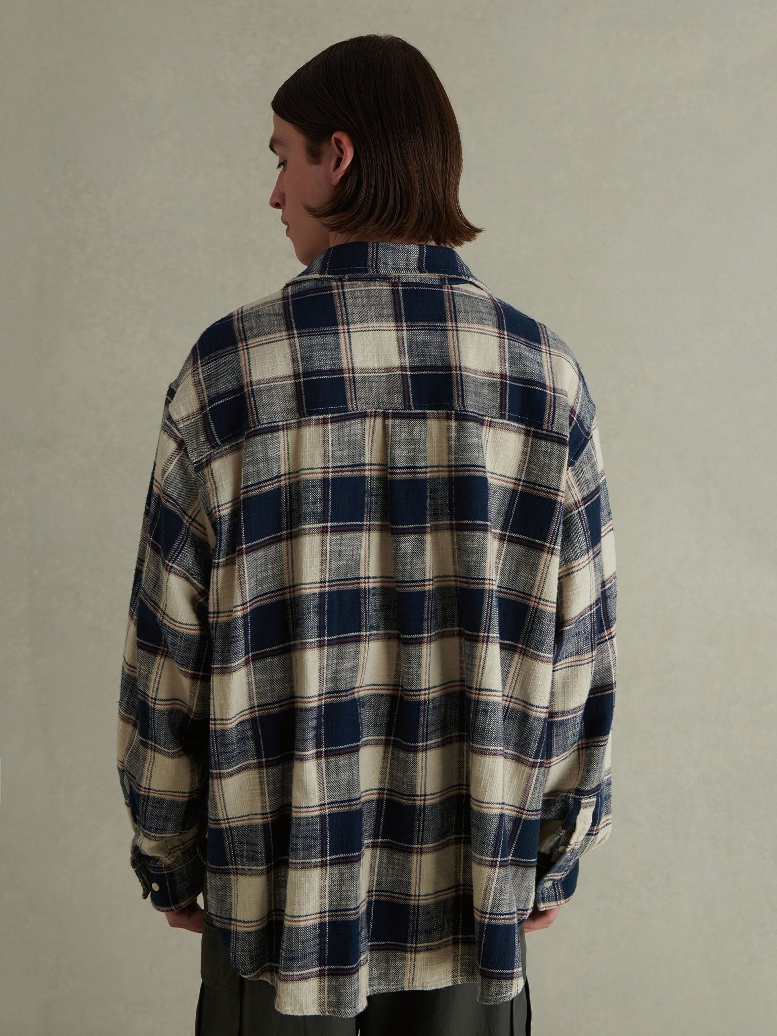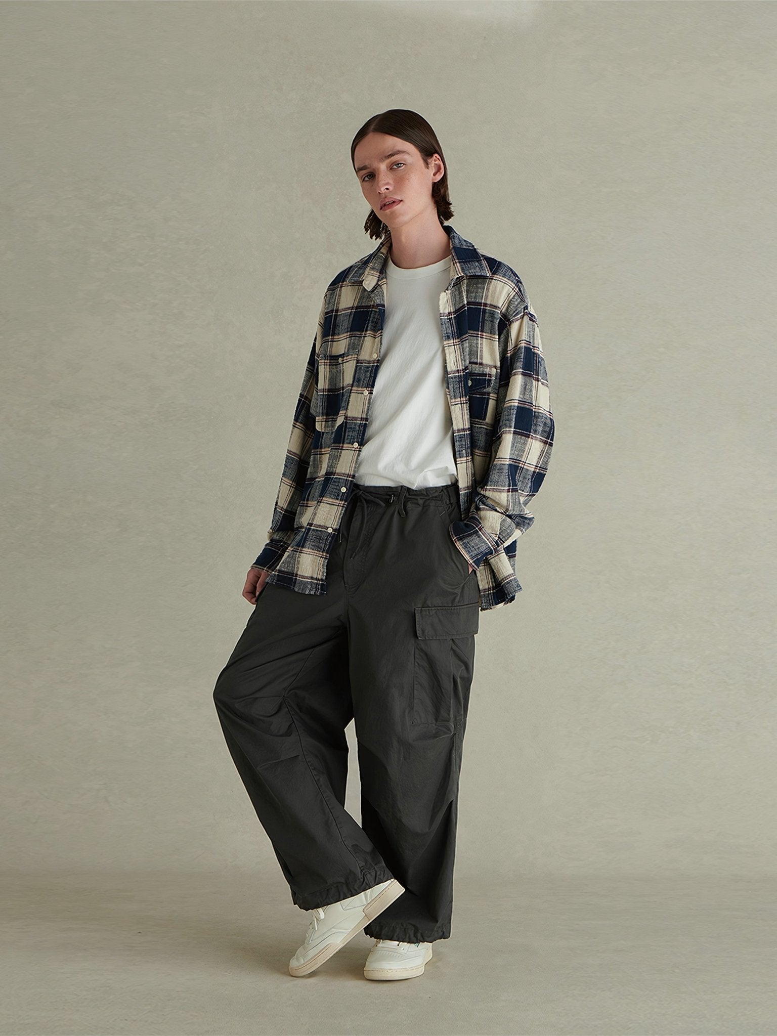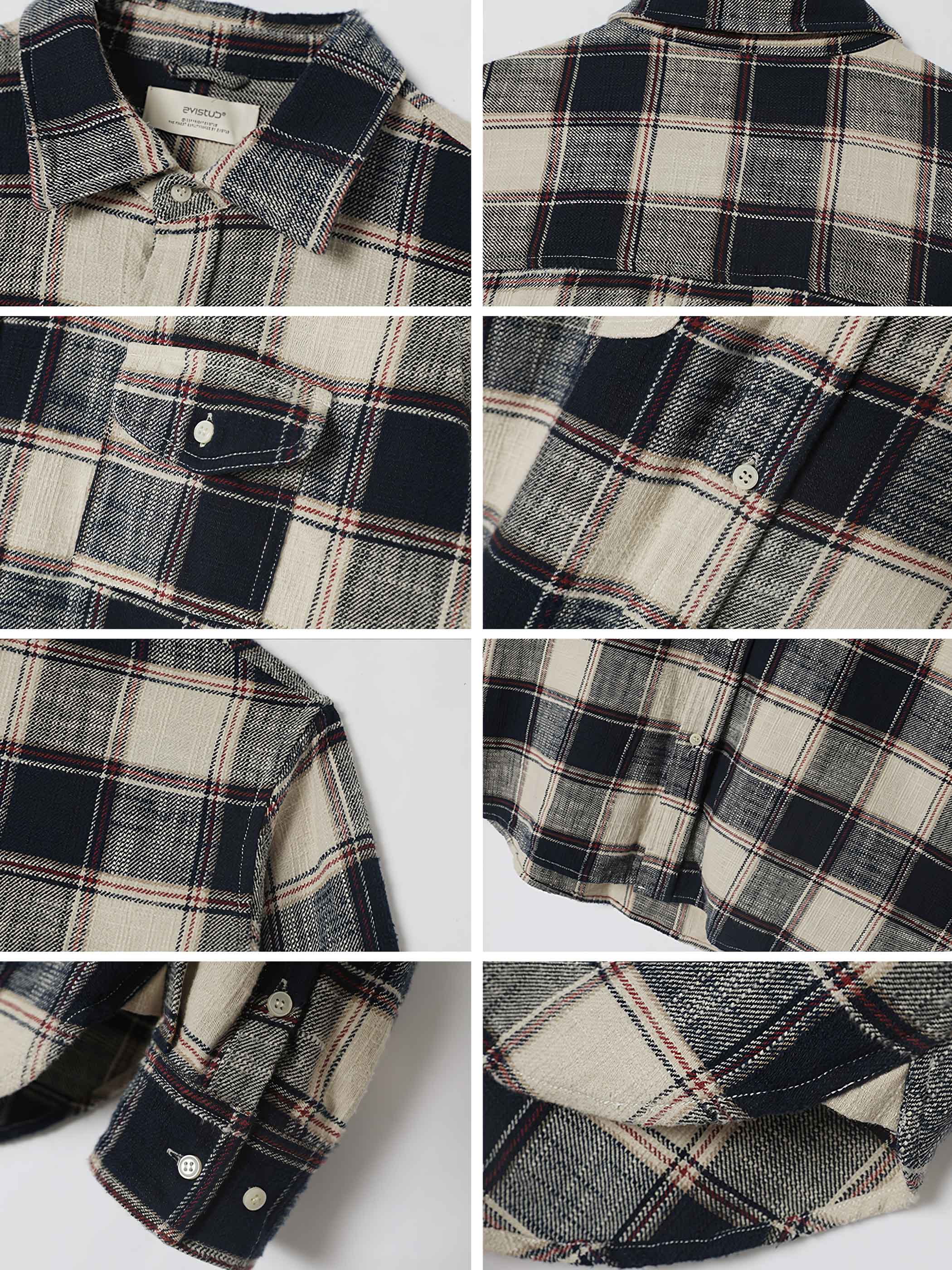 シャツはルーズなカットにデザインされ、着る際には豊富なスペースと自由度を提供し、同時にファッショナブルなルーズスタイルを演出します。ユニークな青と白の格子柄が視覚的な魅力を加え、独自の個性を引き立てます。