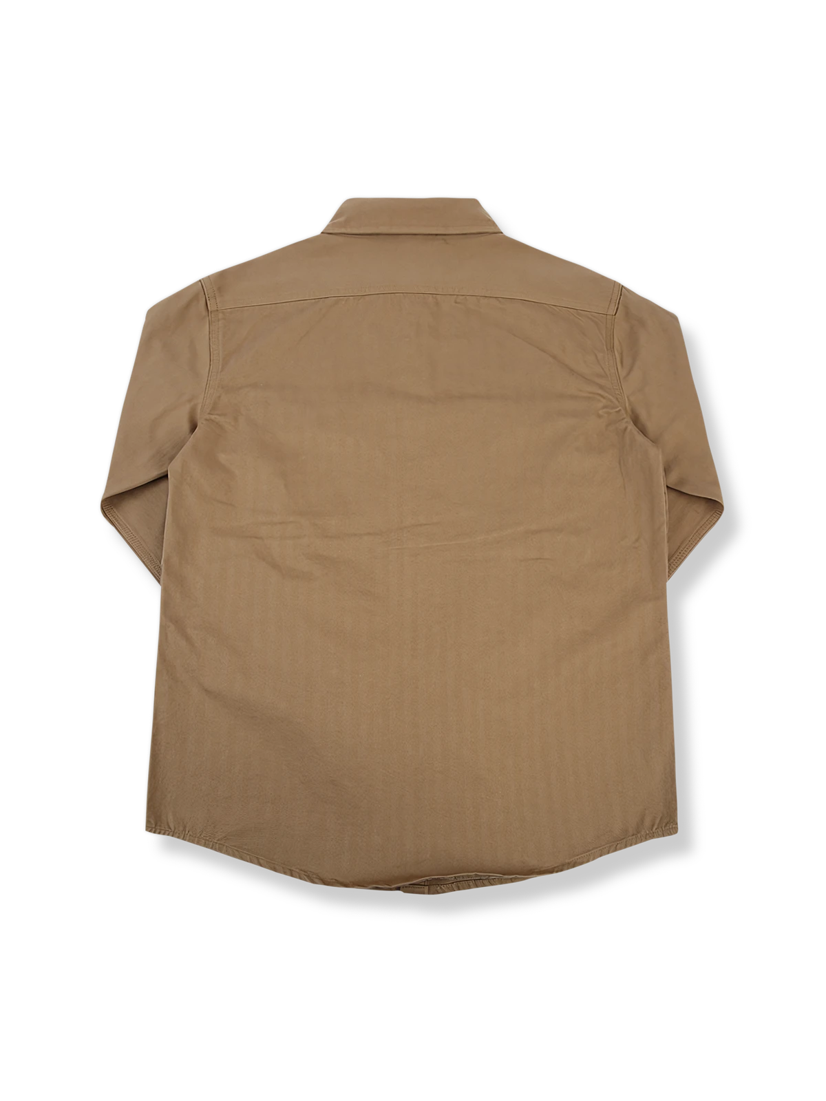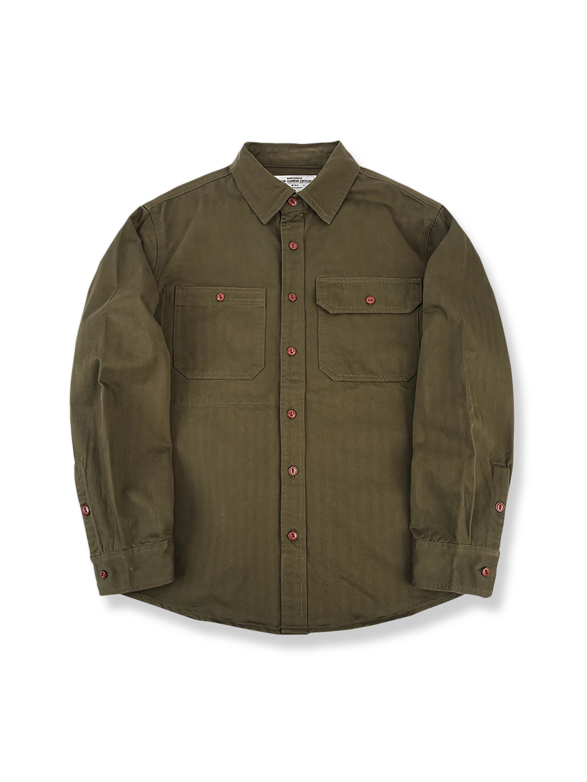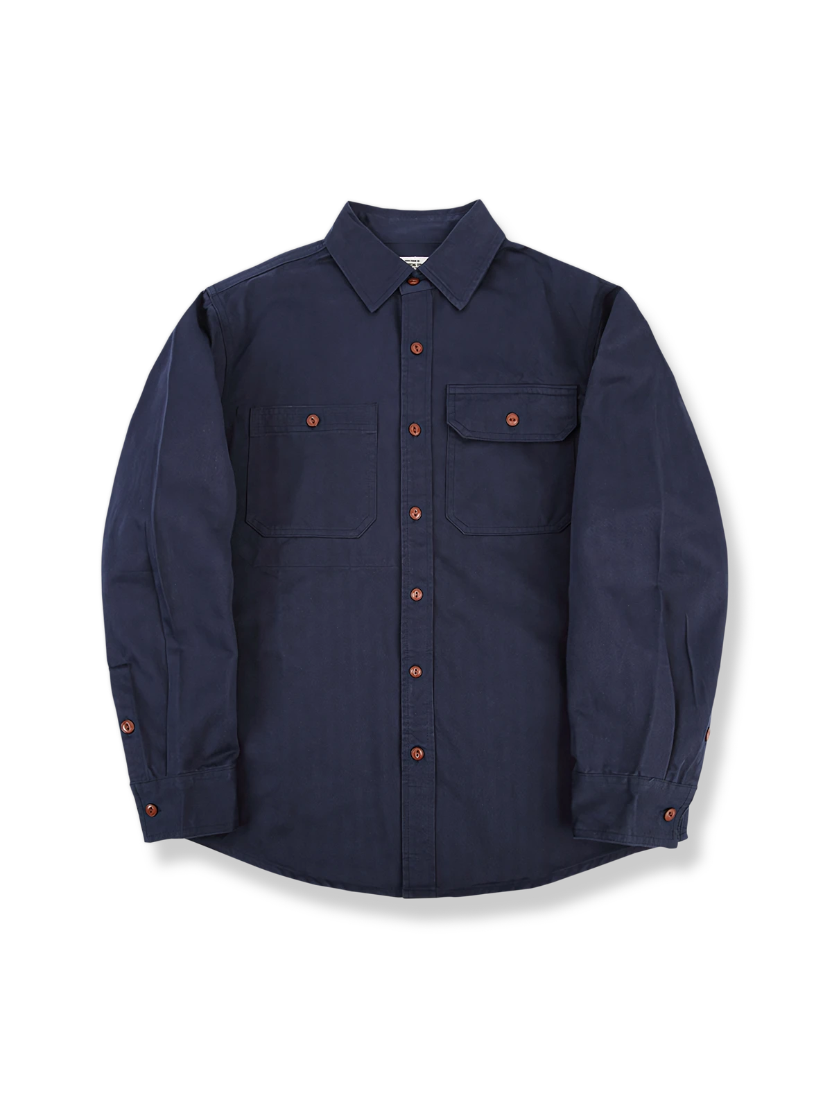 このワークシャツは、シンプルで実用的なデザインで、ワークウェアのクラシックな要素を示しています。ワークウェアは元々労働者の実際の作業ニーズに由来しており、耐久性と機能性を重視しています。このシャツのデザイン、例えば二重のポケットや強化された縫い目は、その理念を体現しています。