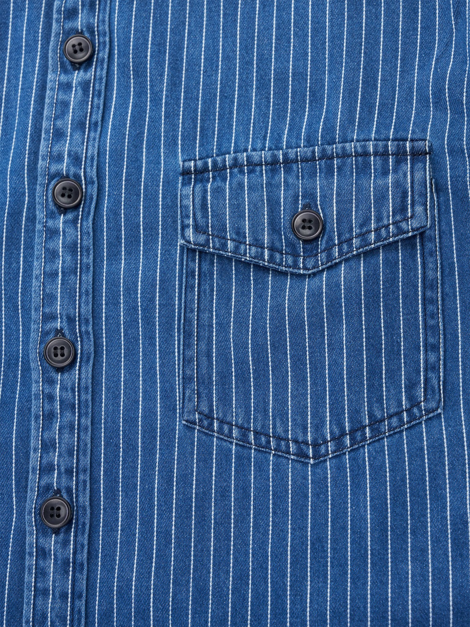 ストライプ柄があり、大人っぽく洗練された印象を与えます。フィット感があり、都会的でスッキリとしたシルエットです。フラップポケットもついています。