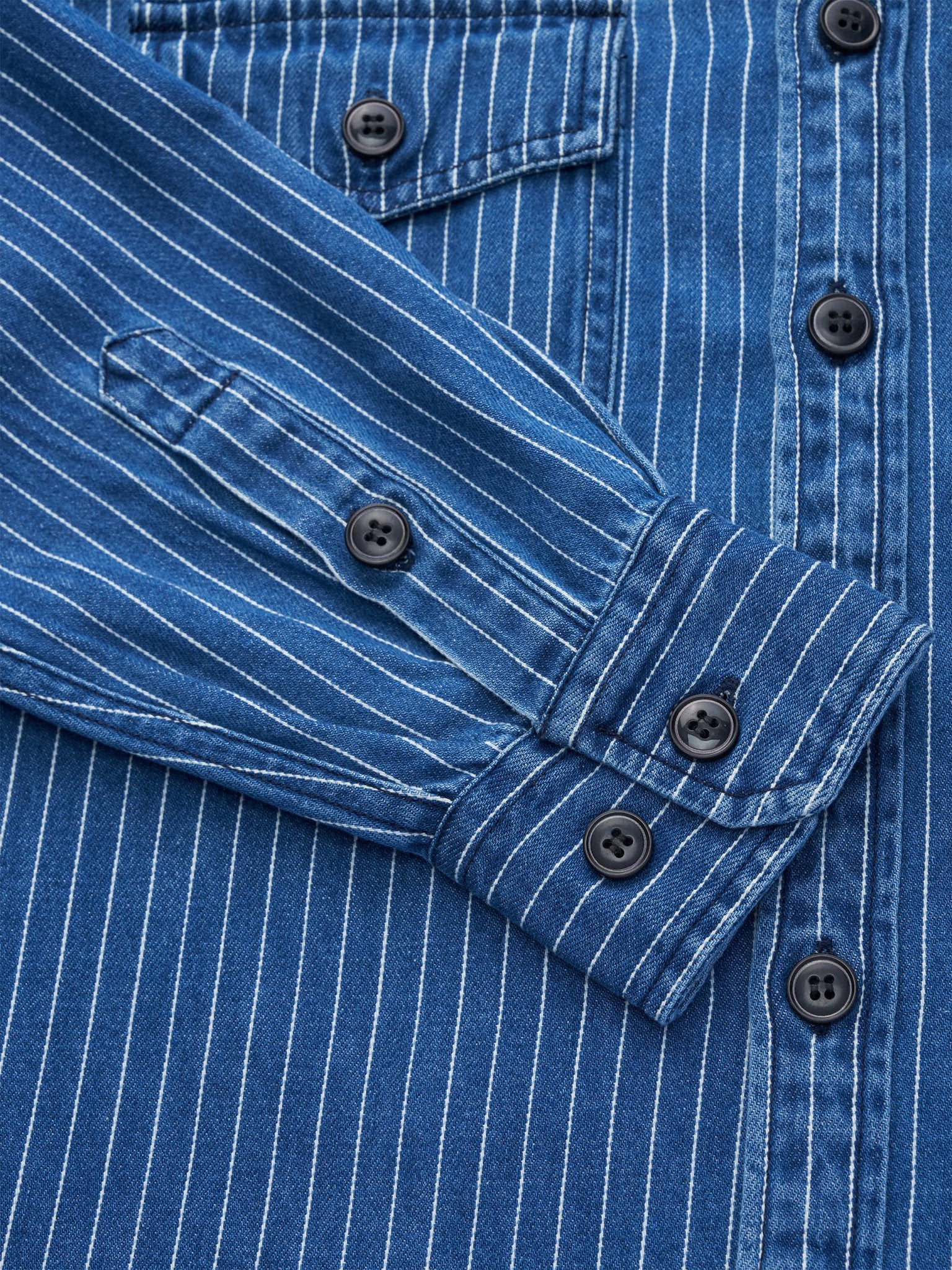 コットン95%+その他の素材を使用して、デニム生地を使用しています。耐久性が高く、無骨な風合いがあります。