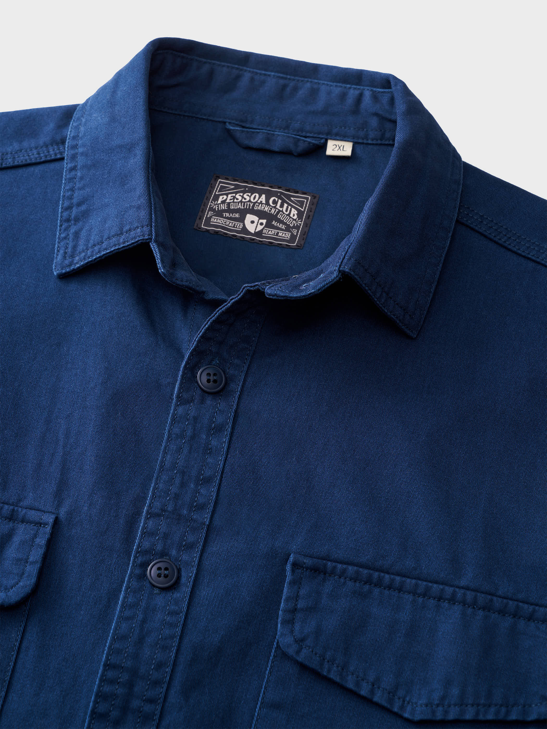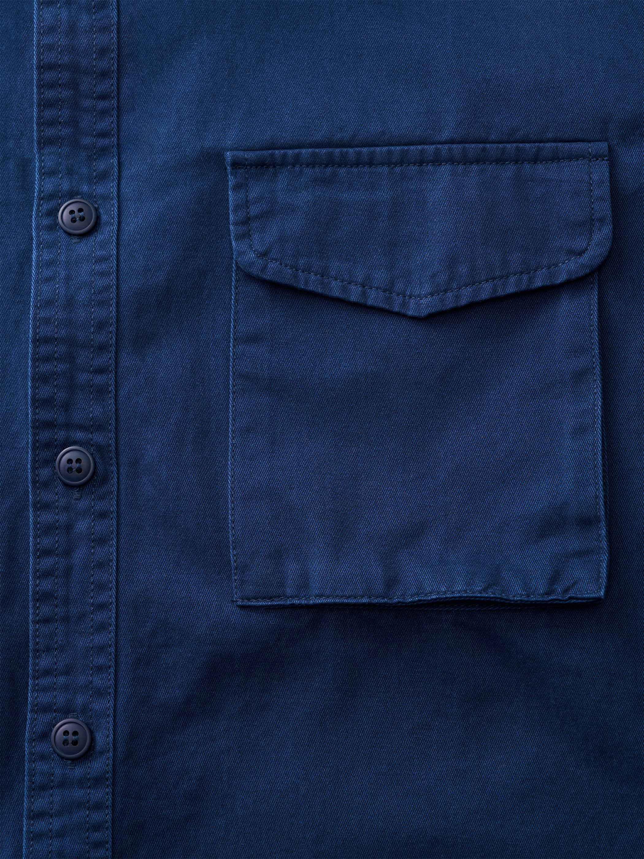 ポケットが胸元に2つ配置され、小物の収納や落下を防止することができ、実用性にも優れています。さらに、ノーカラー仕様で、首元が締め付けられることなく、快適に着用できます。