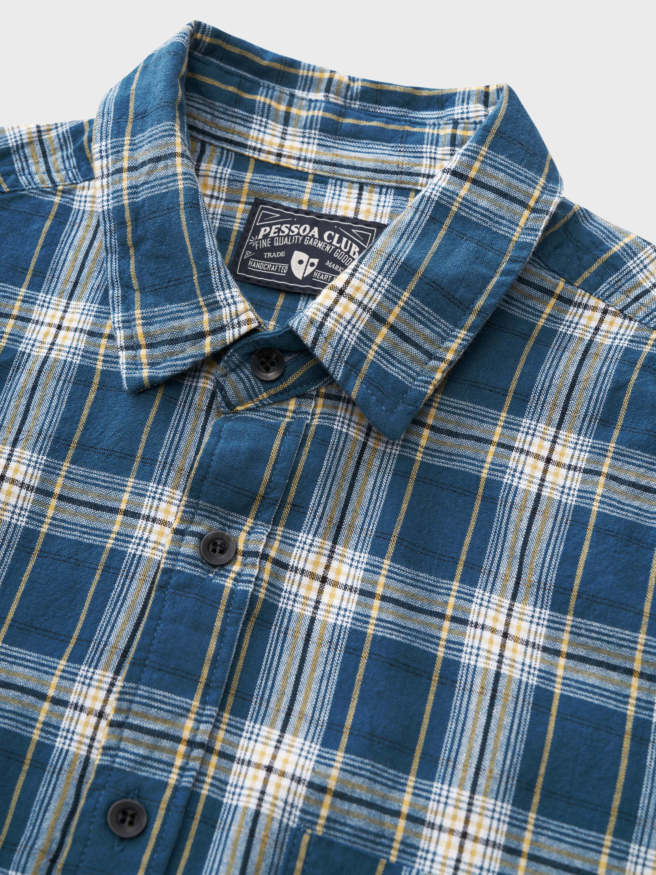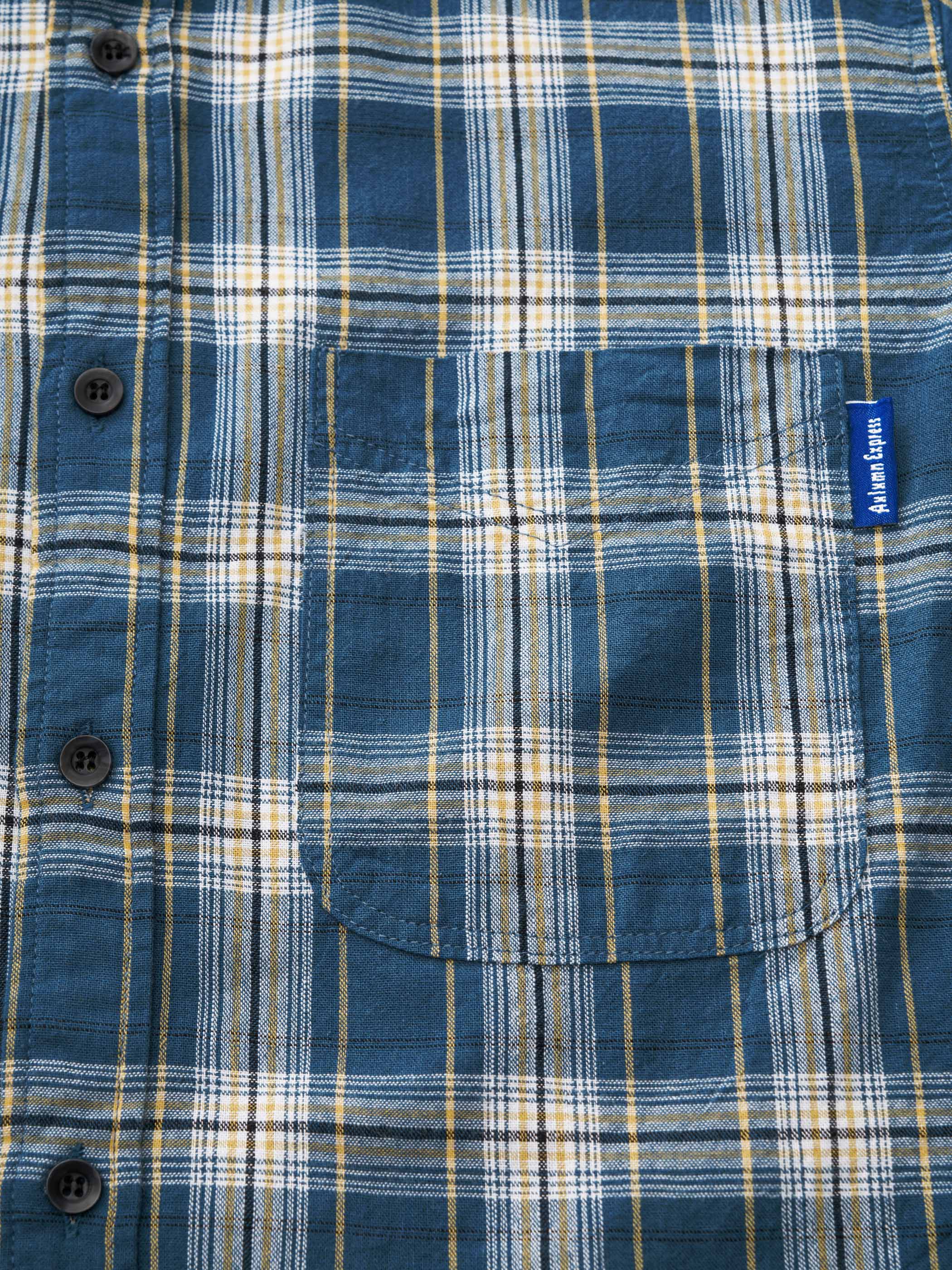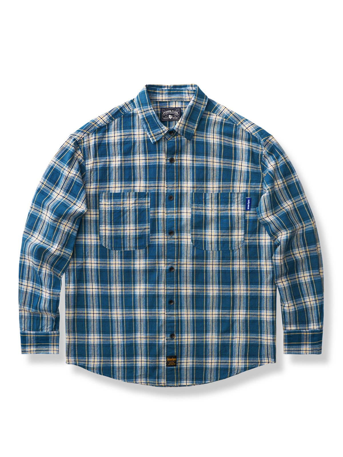 この長袖シャツは、チェック柄のデザインを採用しており、青と黄色の組み合わせが爽やかな白と相性が良く、自然で清新な感覚を醸し出しています。