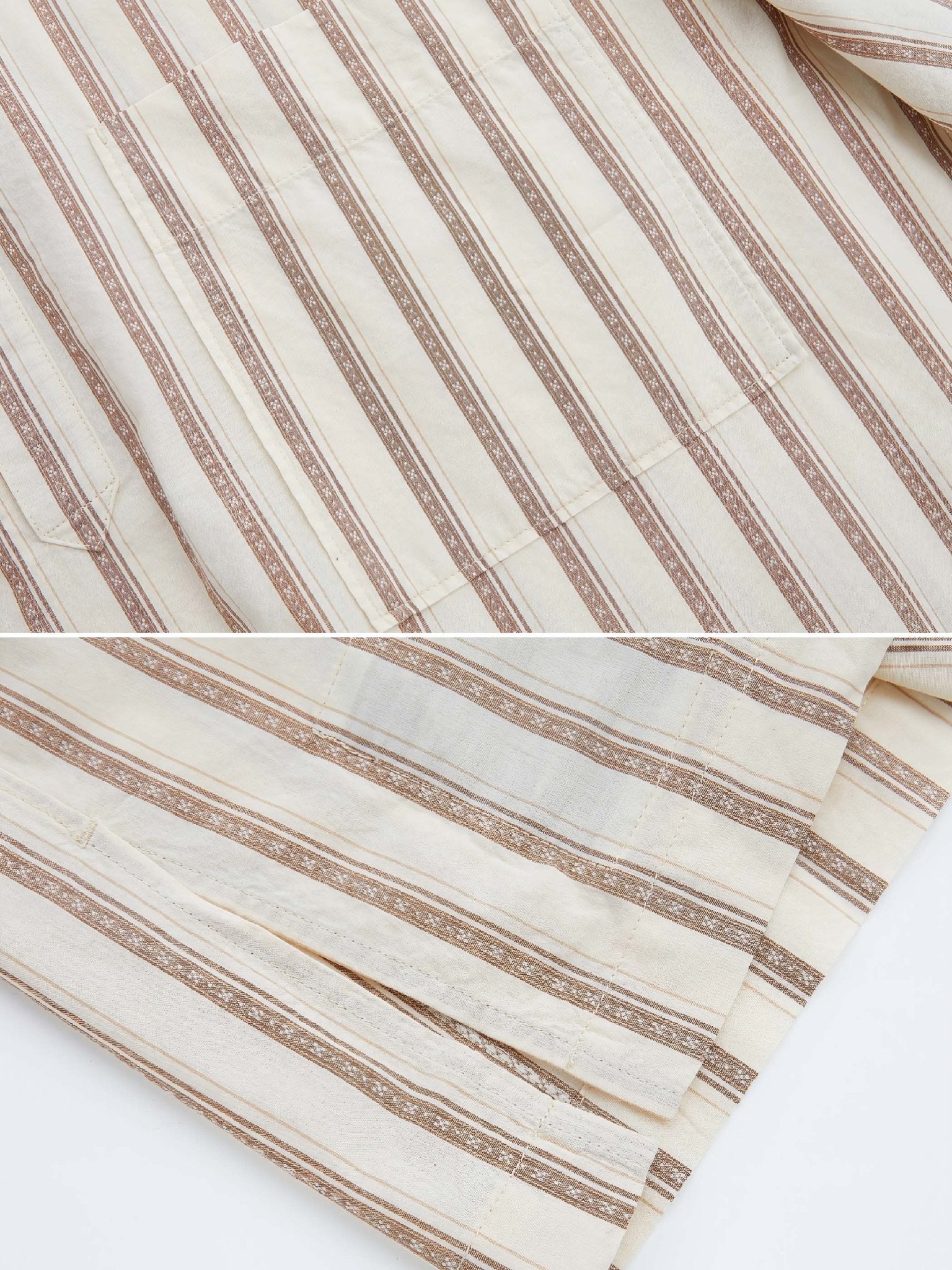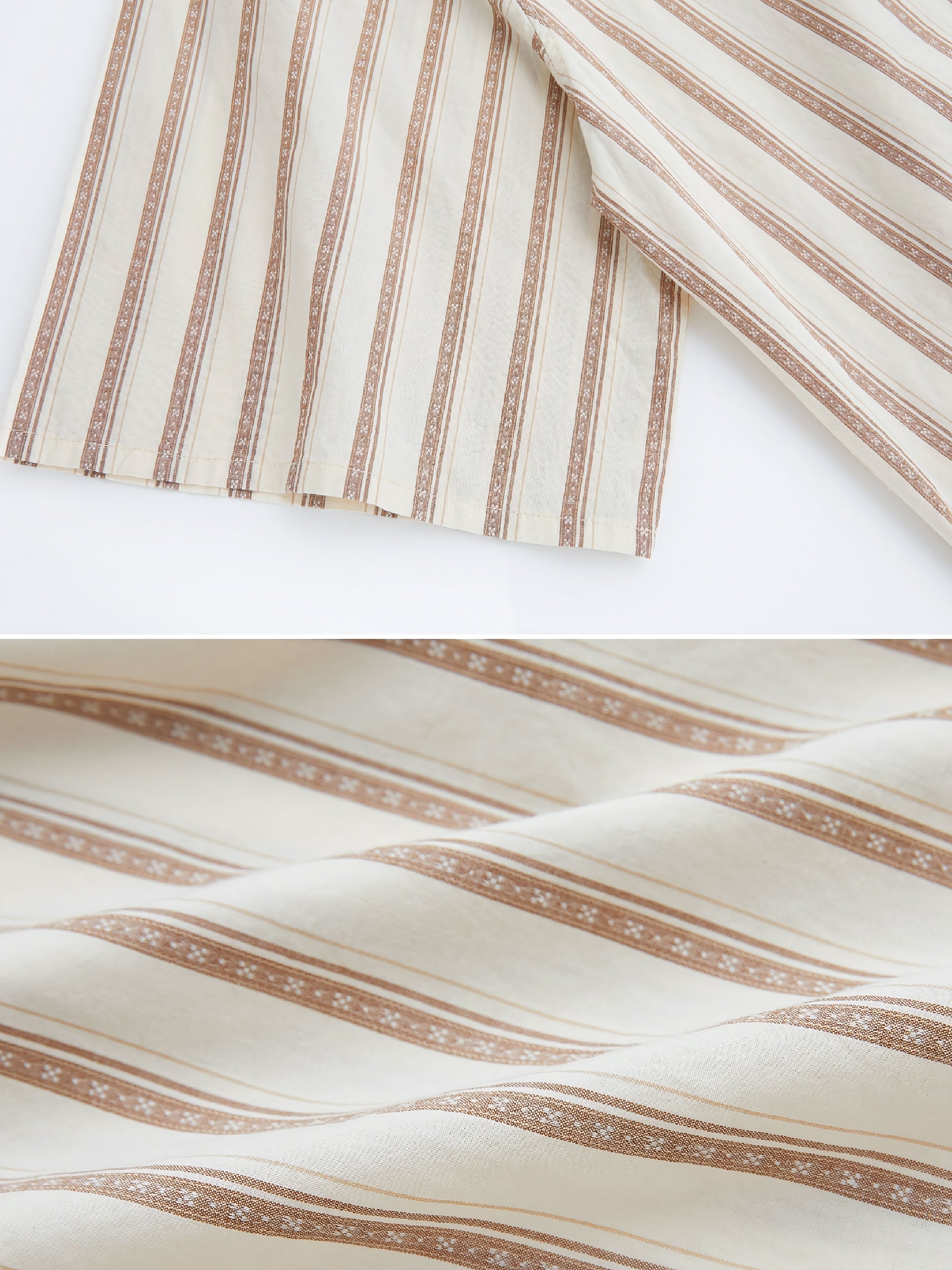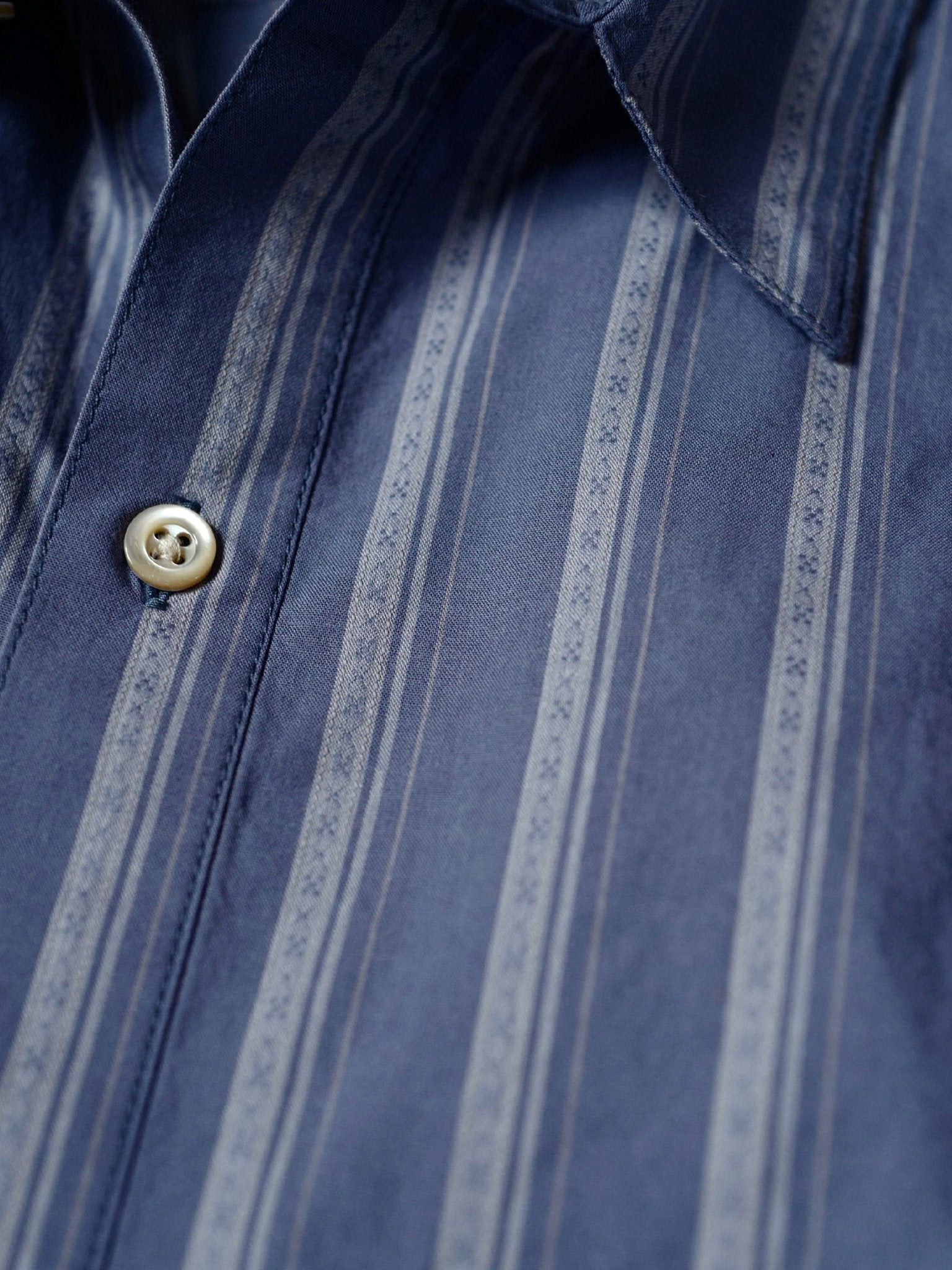 高級な素材が選ばれており、光沢感のある後整工程により、布地に立体的なエンボス効果が与えられています。また、素材は純粋な綿であり、夏の季節に快適な着心地を提供します。