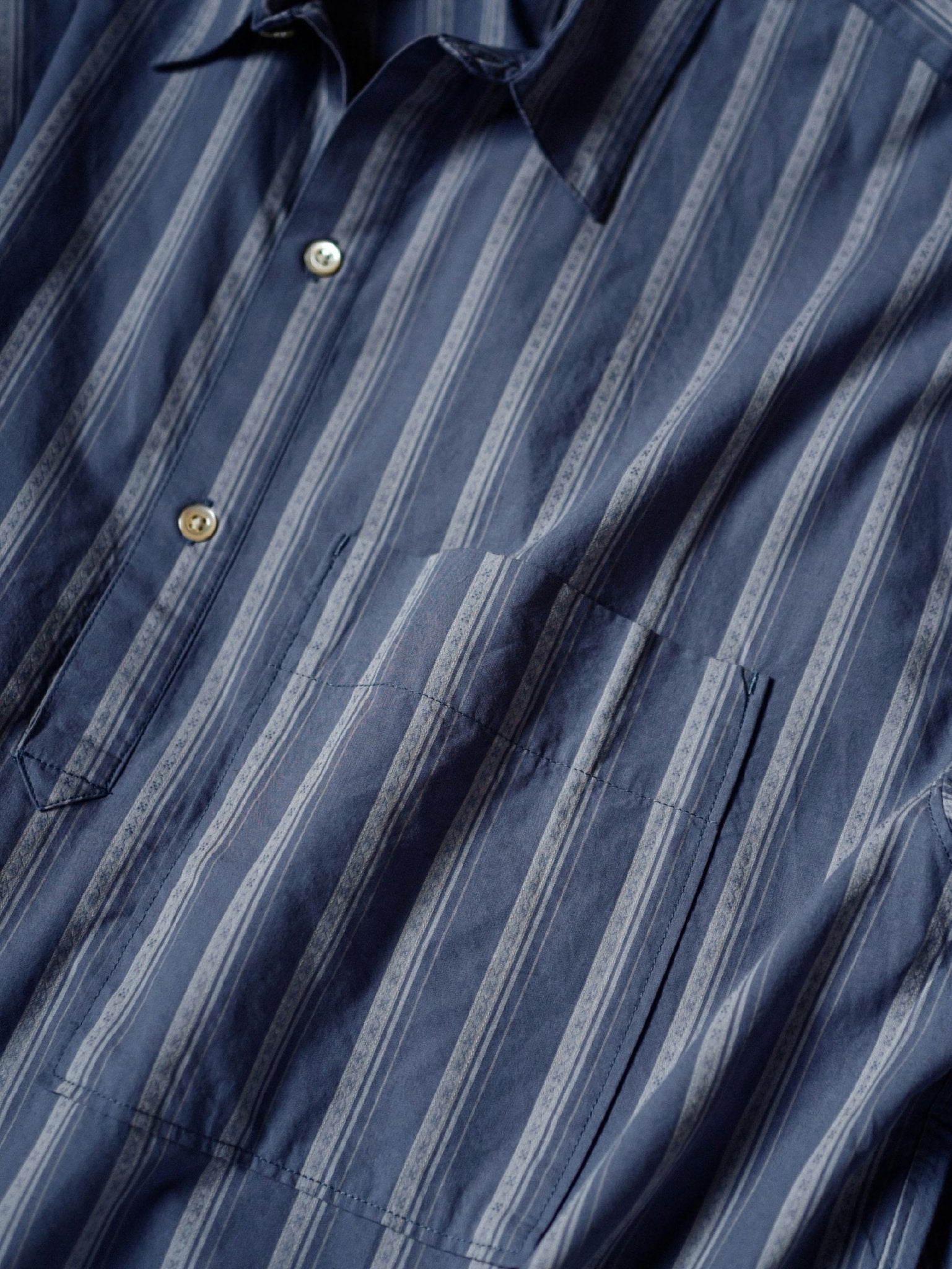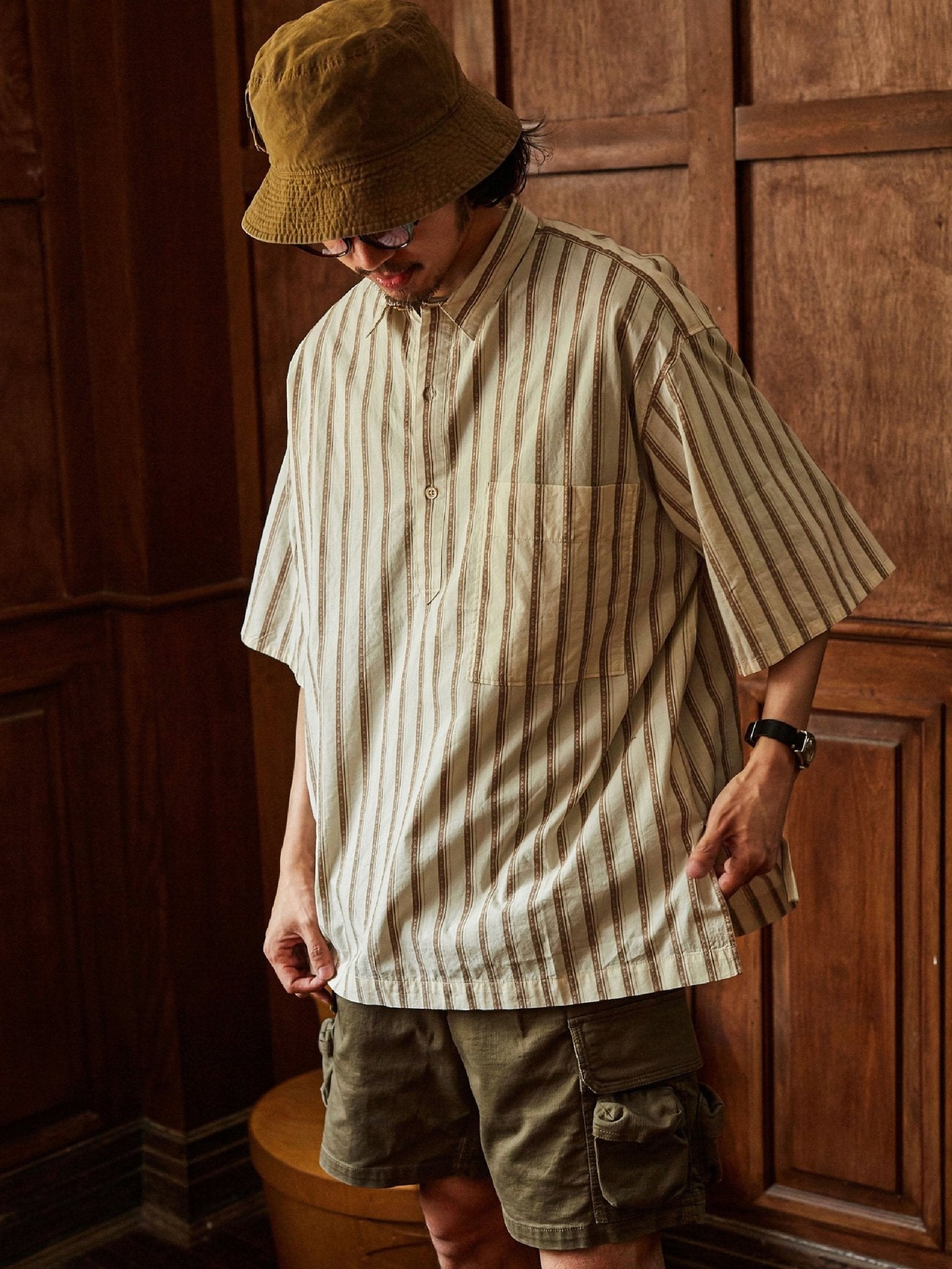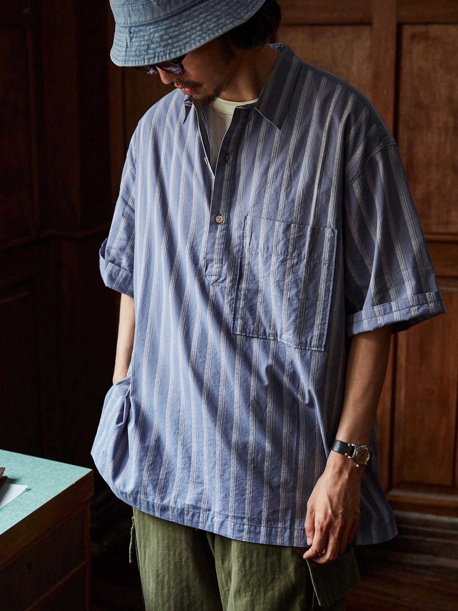 このシャツはプルオーバースタイルのデザインで、着脱が簡単で非常に快適です。シャツのデザインは、高級な素材とシルキーな後整工程が組み合わさり、立体感があり、光沢感が強く、伝統的な衬シャツのテクスチャが表現されています。