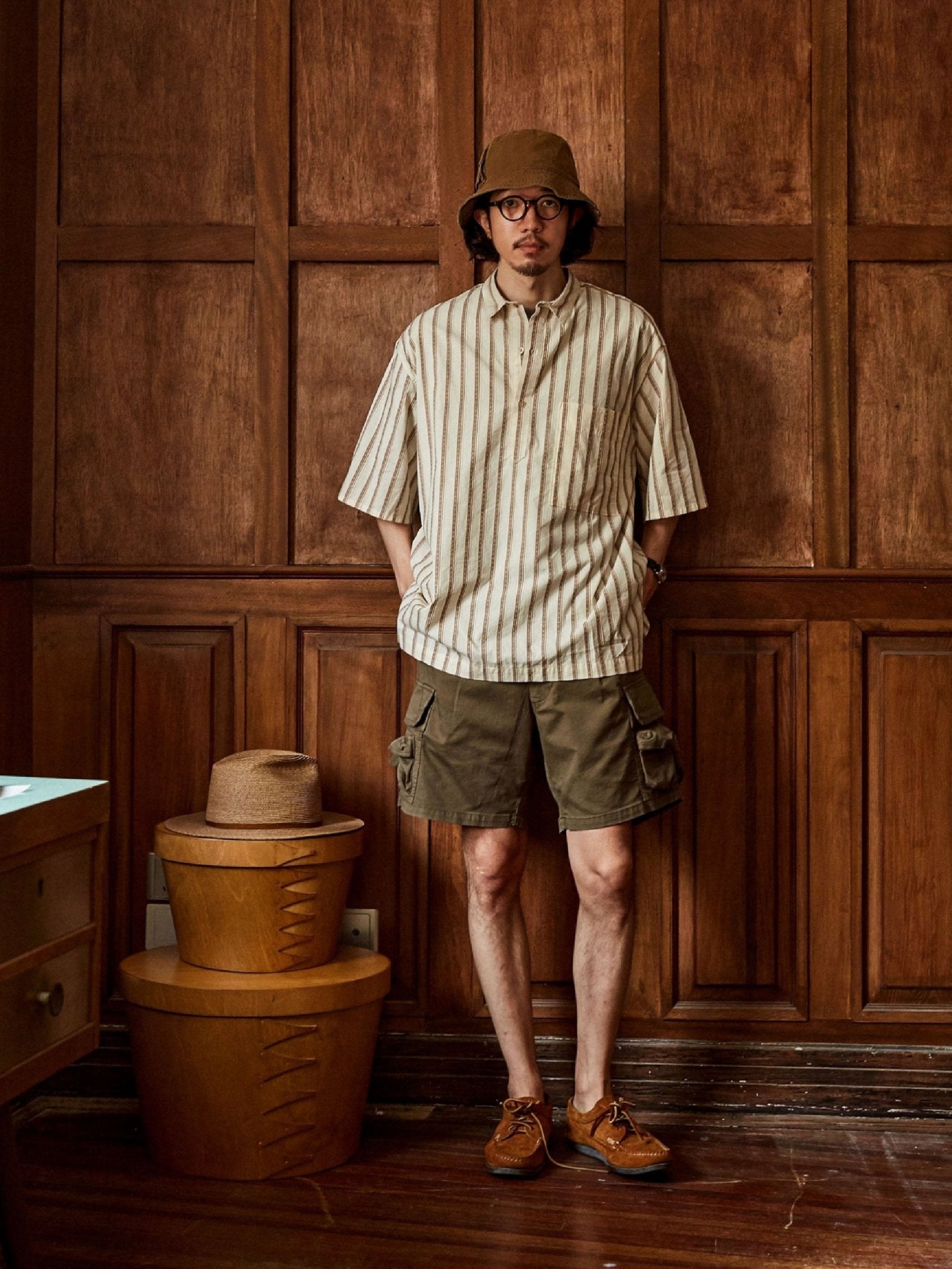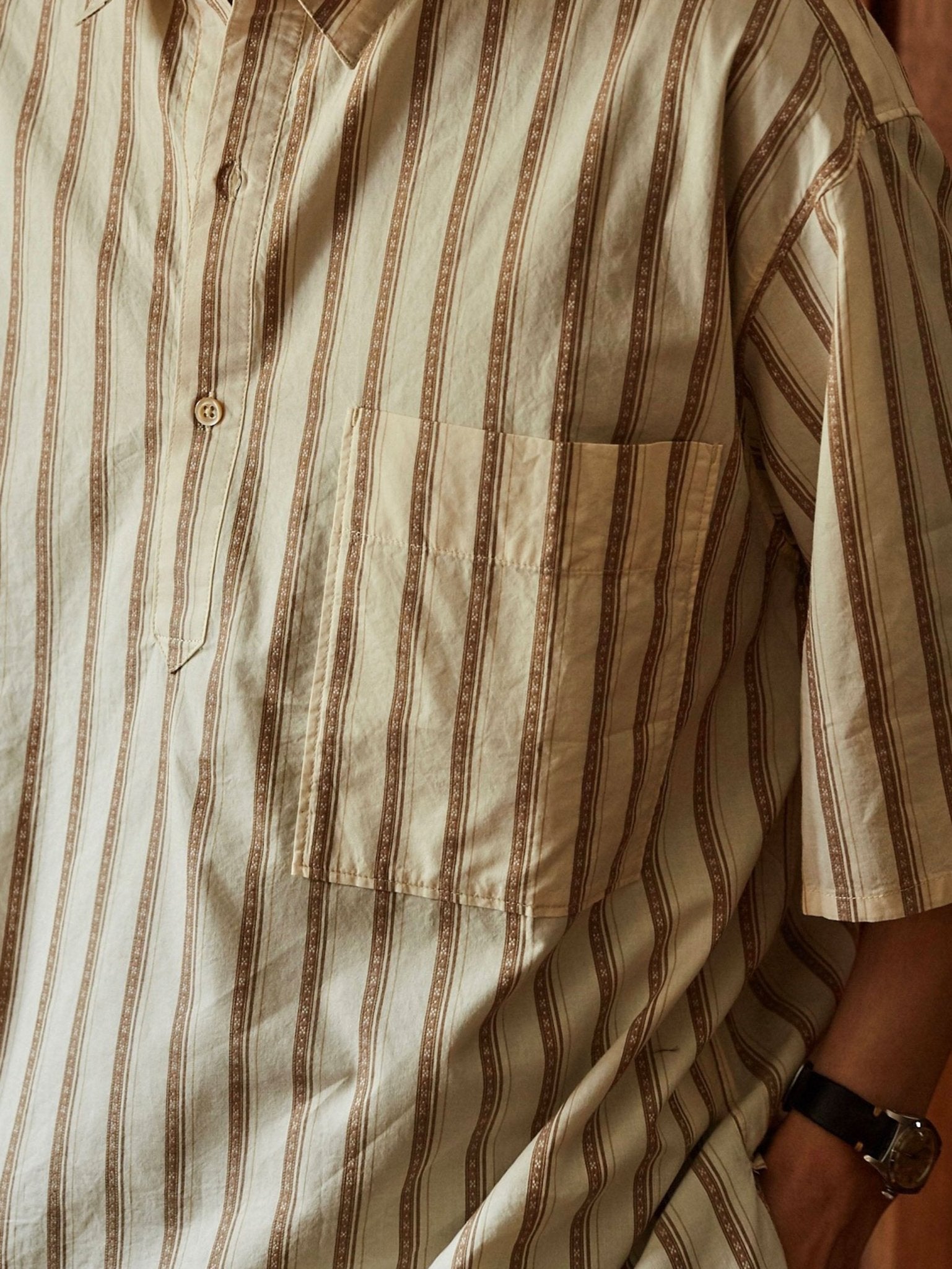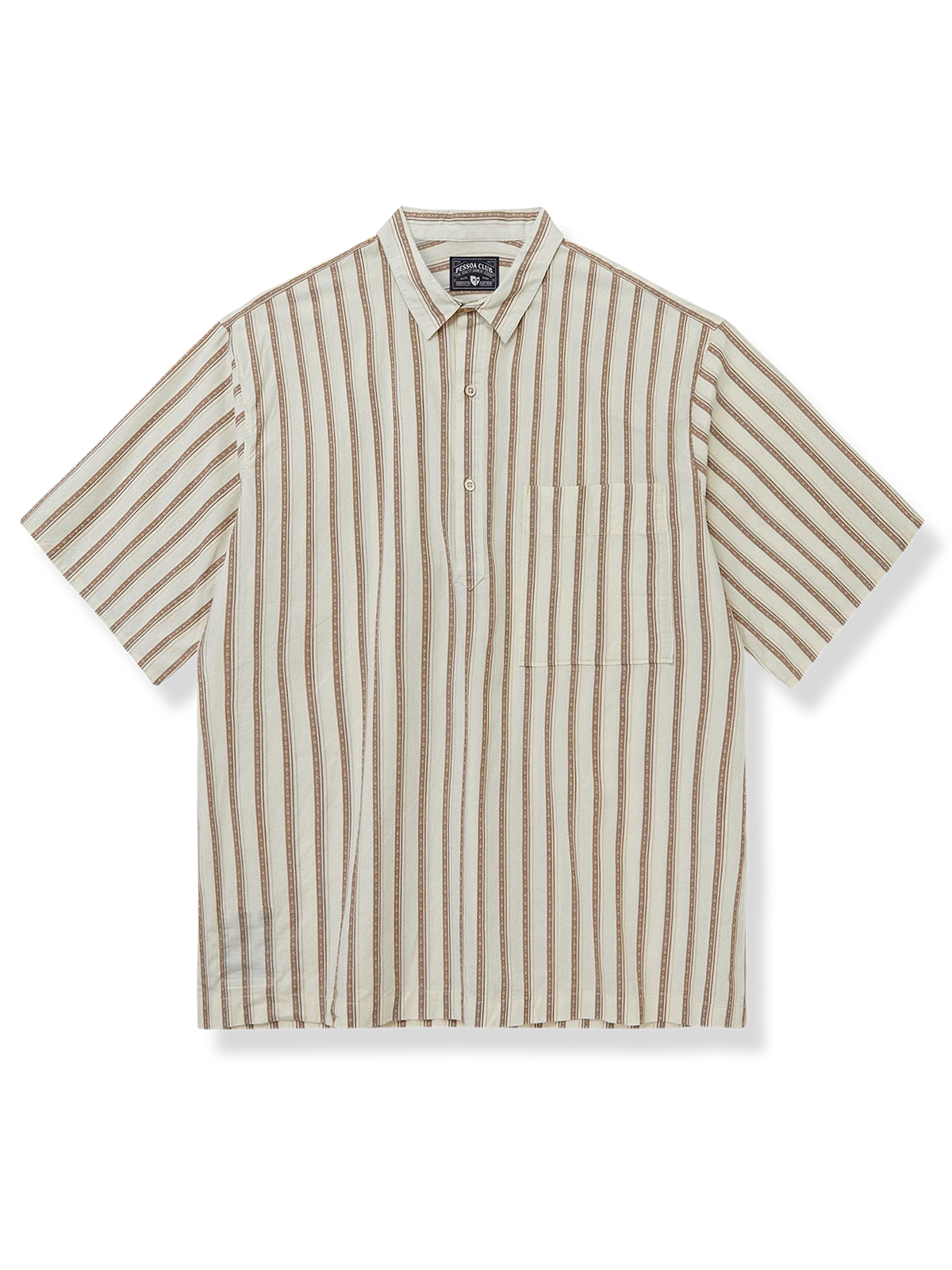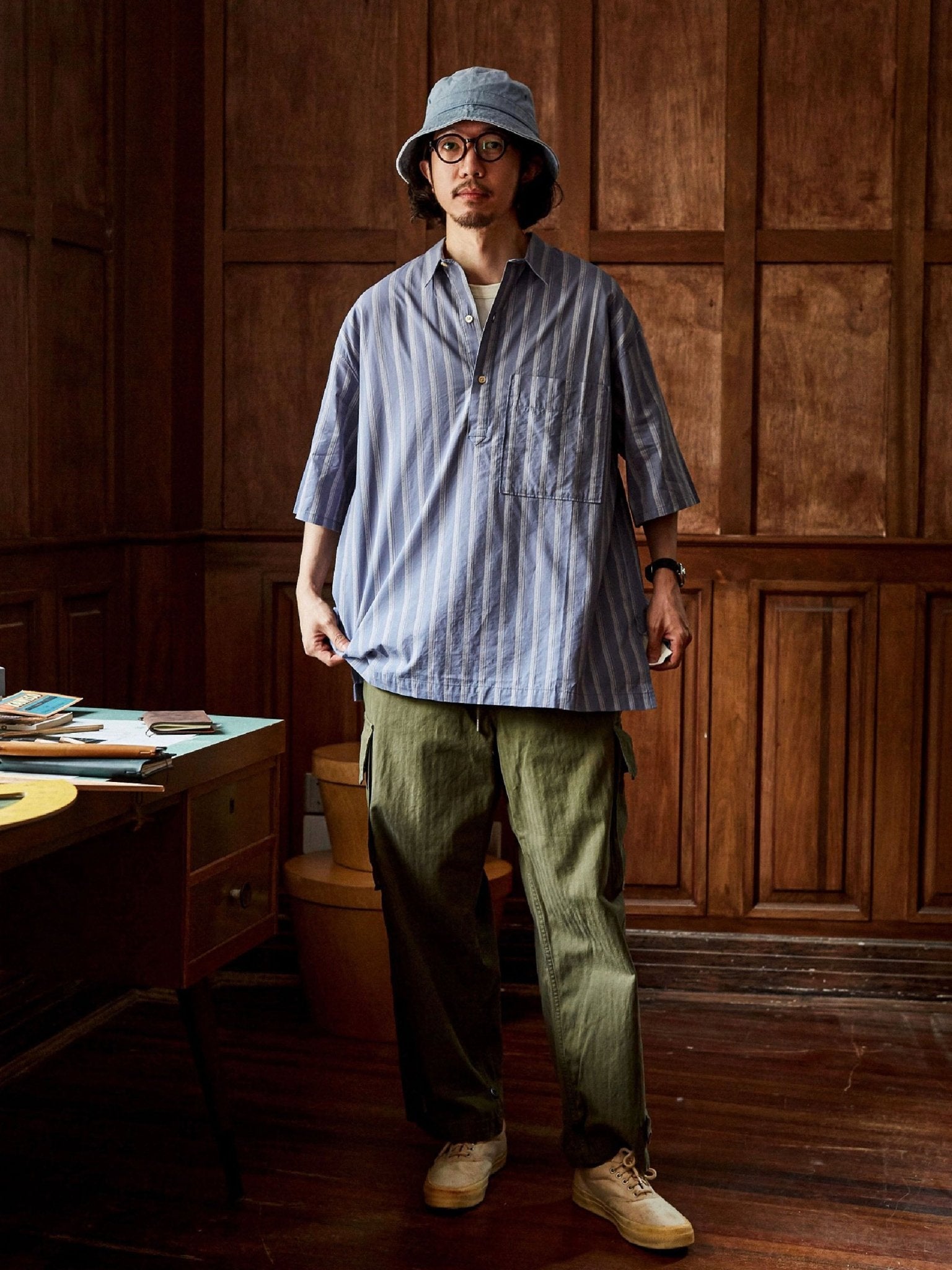 このシャツはプルオーバースタイルのデザインで、着脱が簡単で非常に快適です。シャツのデザインは、高級な素材とシルキーな後整工程が組み合わさり、立体感があり、光沢感が強く、伝統的な衬シャツのテクスチャが表現されています。
