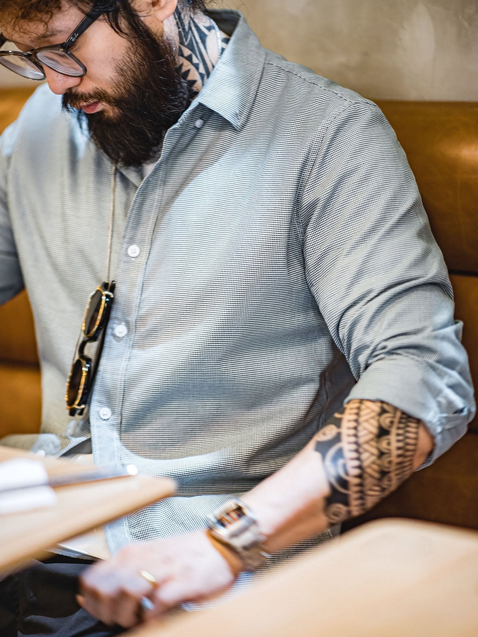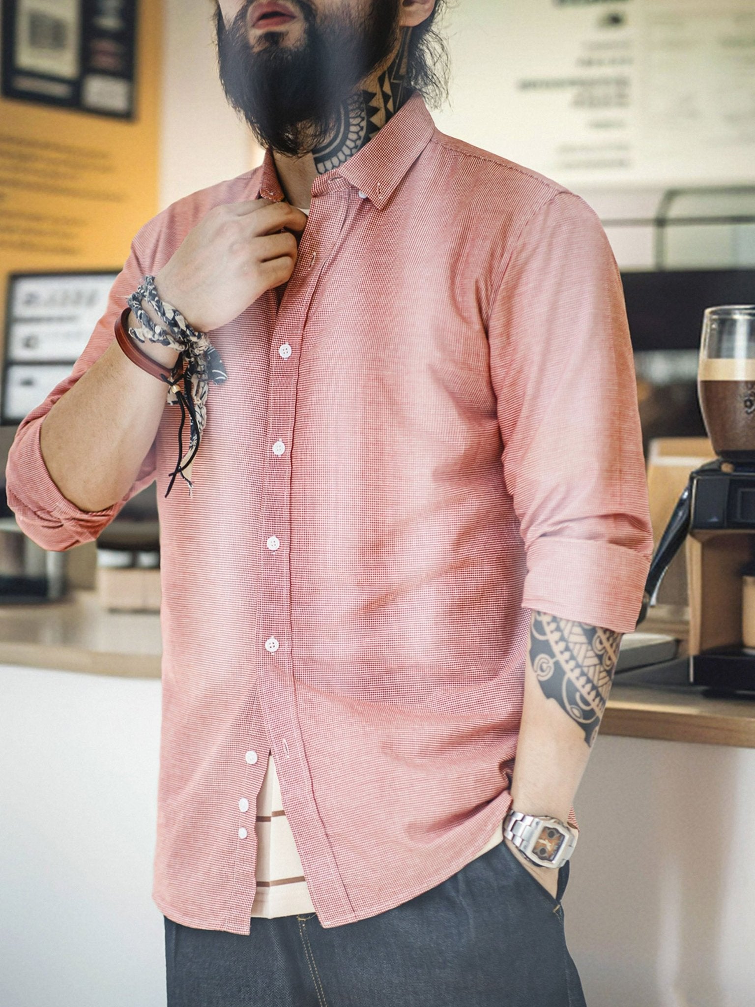 先染めとは、糸を先に染めることで、深みのある色合いを実現する魅力があります。このシャツは、ベーシックなデザインに千鳥格子を施したシャツであり、シンプルながらも存在感のある1枚です。先染めチェックを使用することで、洗練されたおしゃれさを手軽に楽しむことができます。