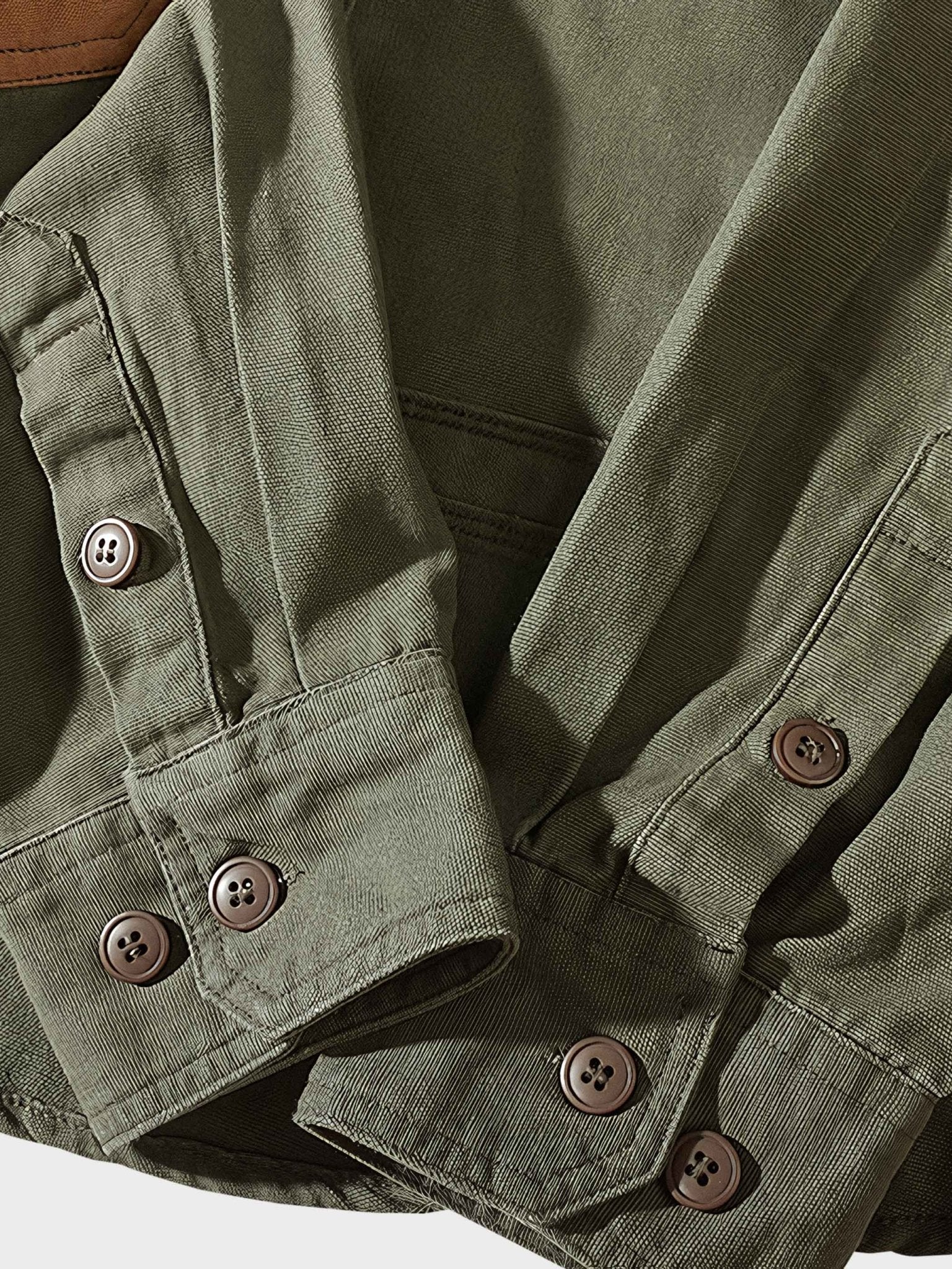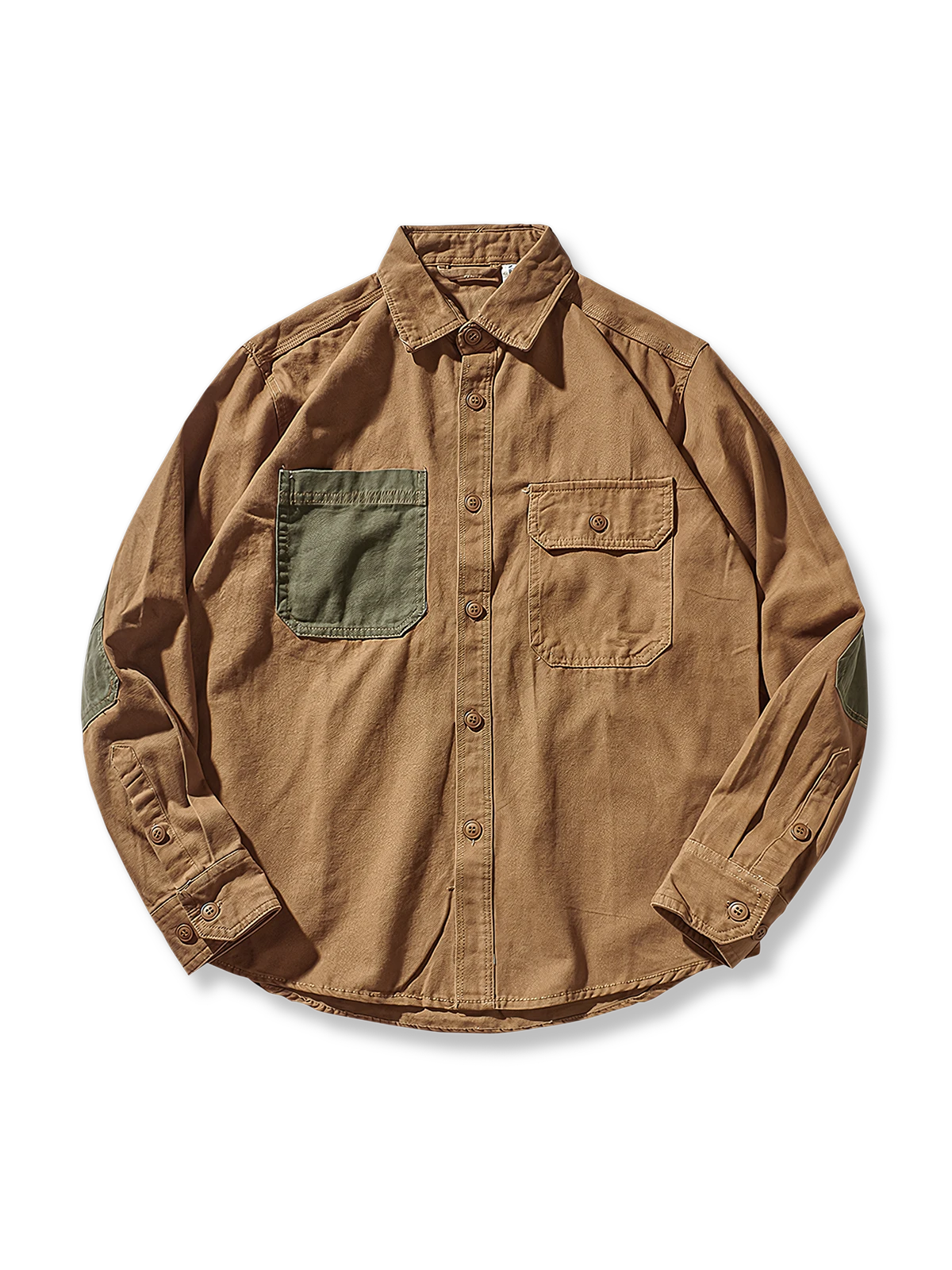 シャツの特徴的なディテールには、カラーブロックとパッチディテールが含まれています。これらのディテールはシャツの耐久性を高めるだけでなく、独自の外観を提供します。パッチディテールは通常、ワークウェアで使用され、耐摩耗性と構造を強化します。これらのディテールはシャツをより耐久性のあるものにし、同時にファッション性も高めています。