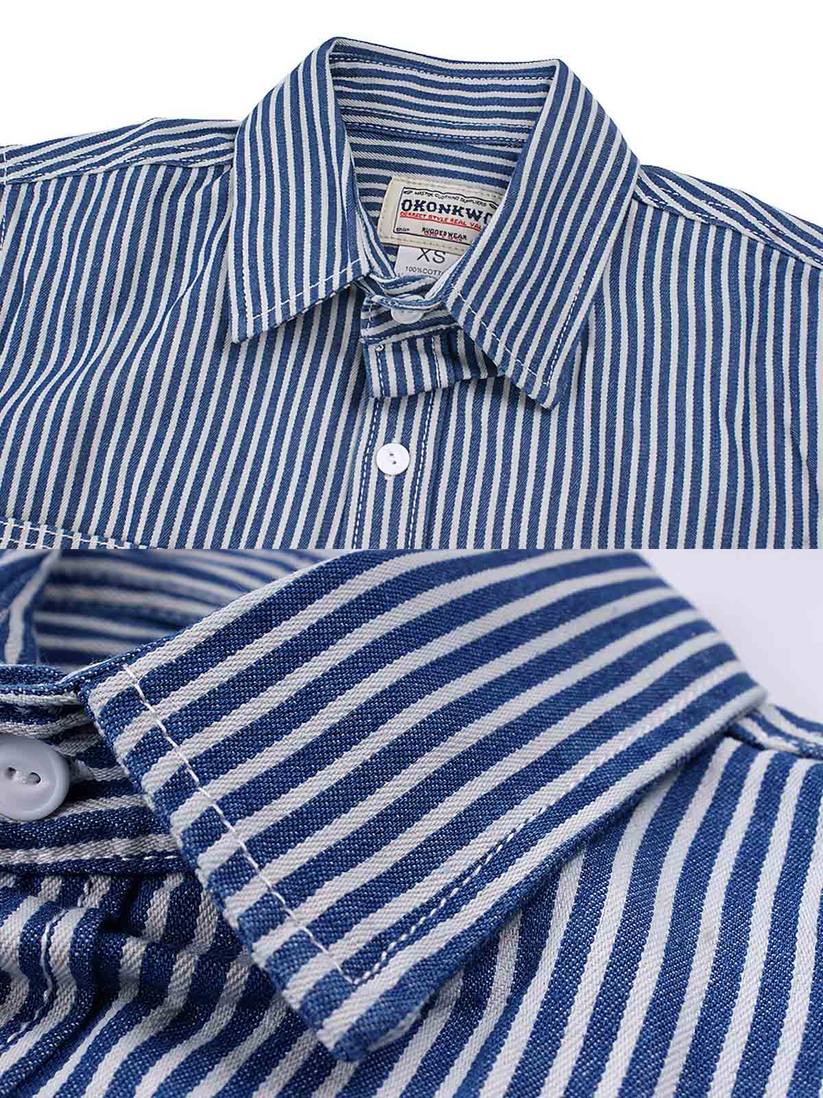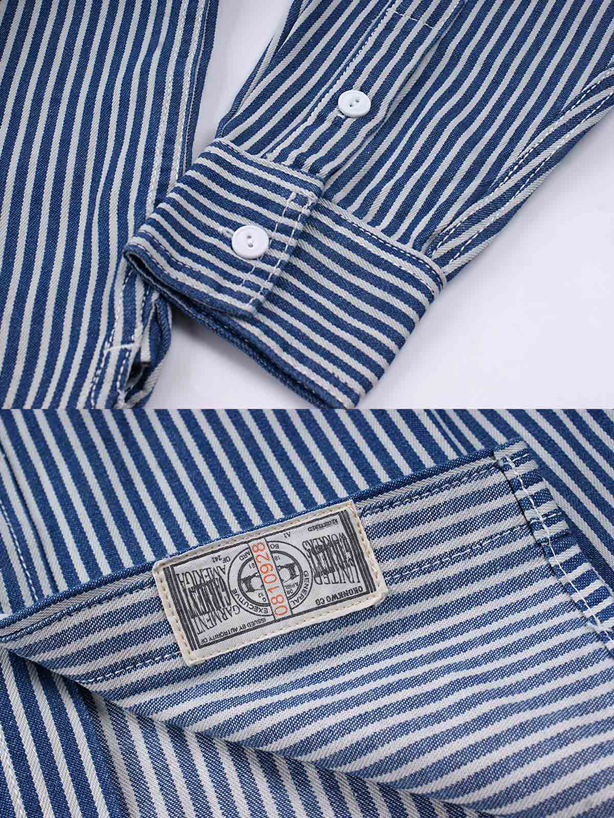 このシャツ特徴的なストライプデザインは、初期の労働者の制服からインスピレーションを得ています。太いストライプの布地はレトロで実用的であり、当時の服の耐久性に対する高い基準と労働者階級文化への敬意を反映しています。