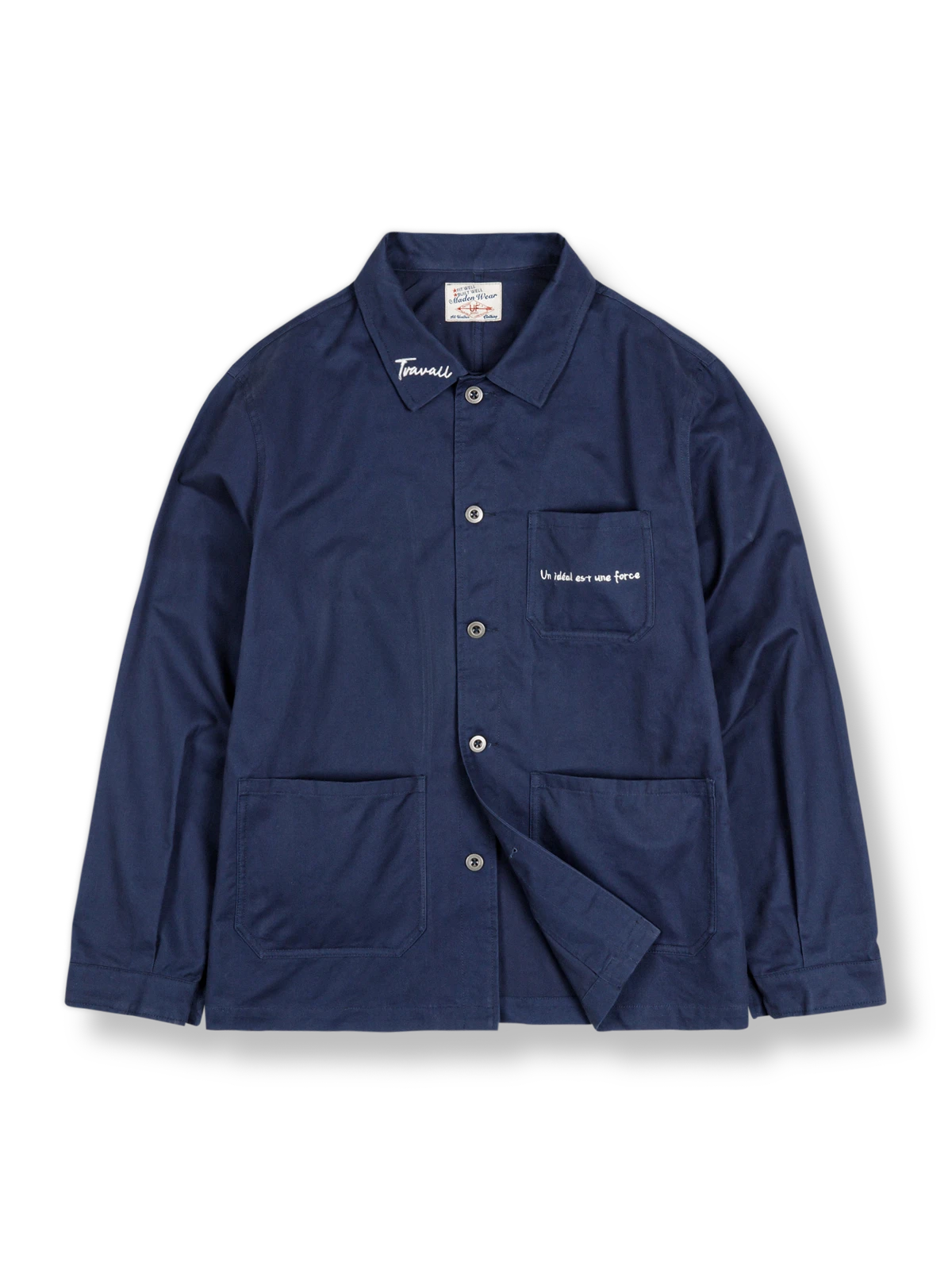 袖口はボタン付きで調整可能。フロントの五つボタンと三つポケット式は一番原始的なフレンチワークティストを感じる。