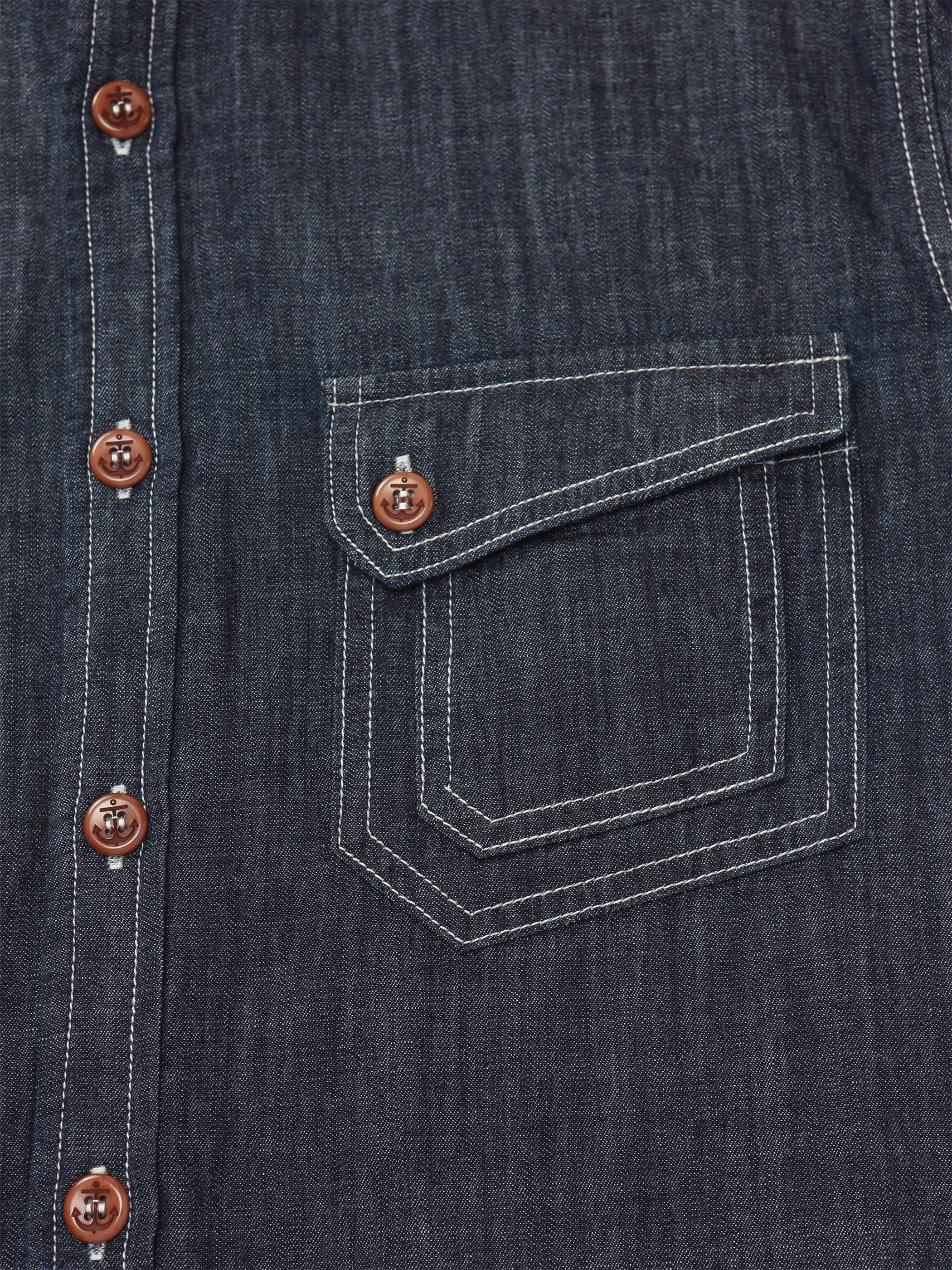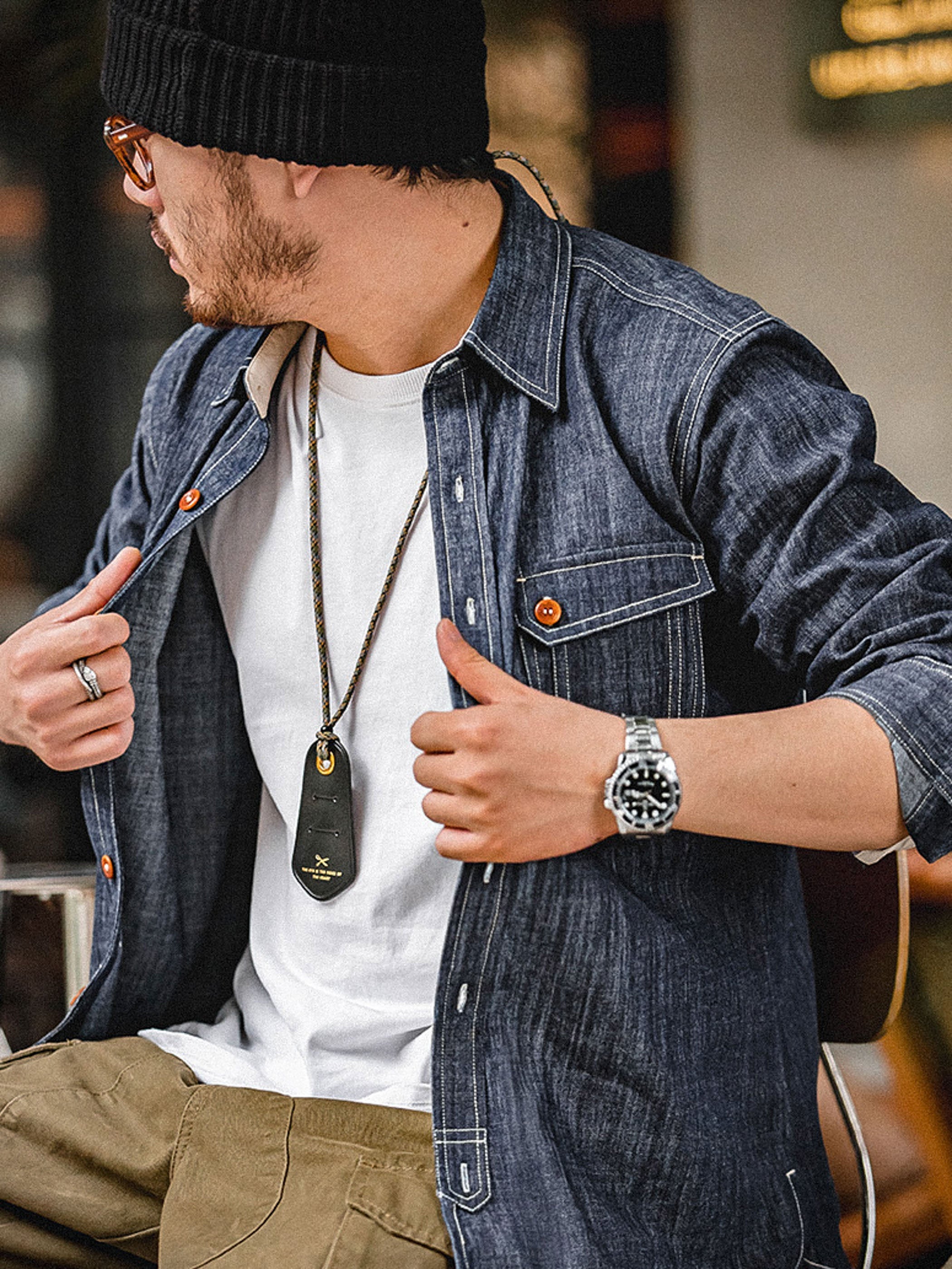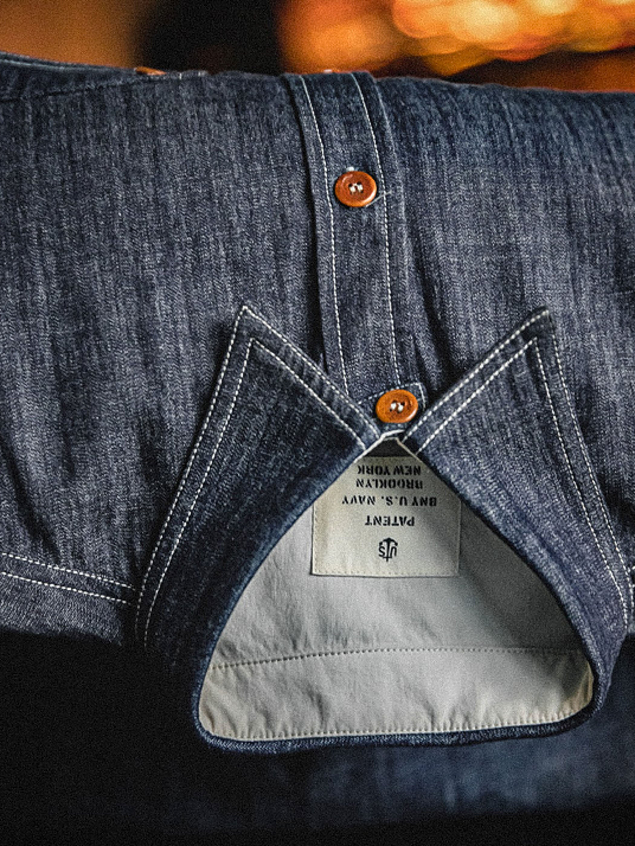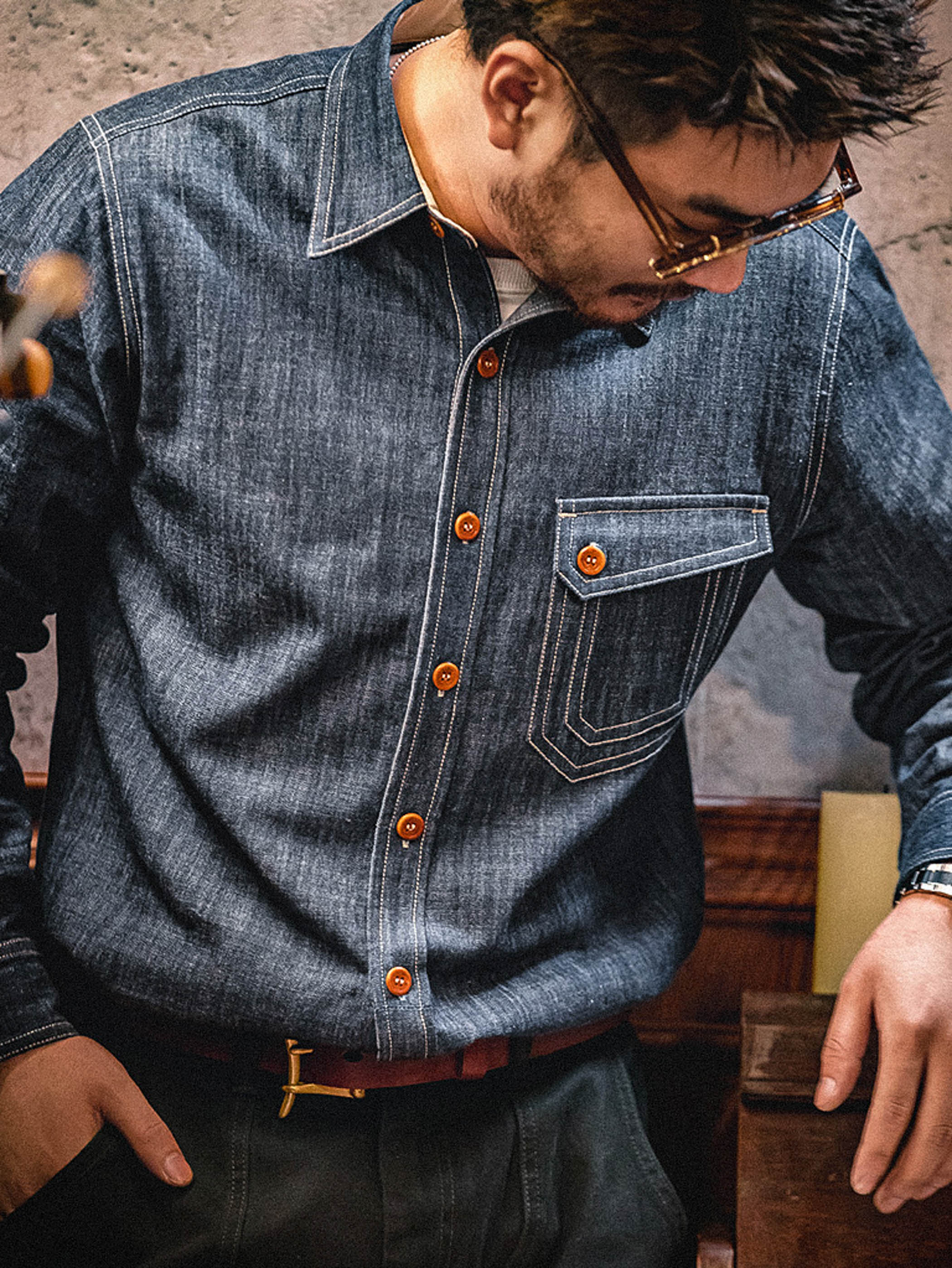 CPOシャツはアメリカ海軍に採用されていたウェアがオリジナルで、本アイテムは定番のCPOシャツをイメージして改良を加えたデニムシャツです。船や航海を連想させるものとして、シンボル的に用いられることも多く、海軍由来のアイテムとしてならではの特徴も保留、しっかりとディテールを踏襲しています。