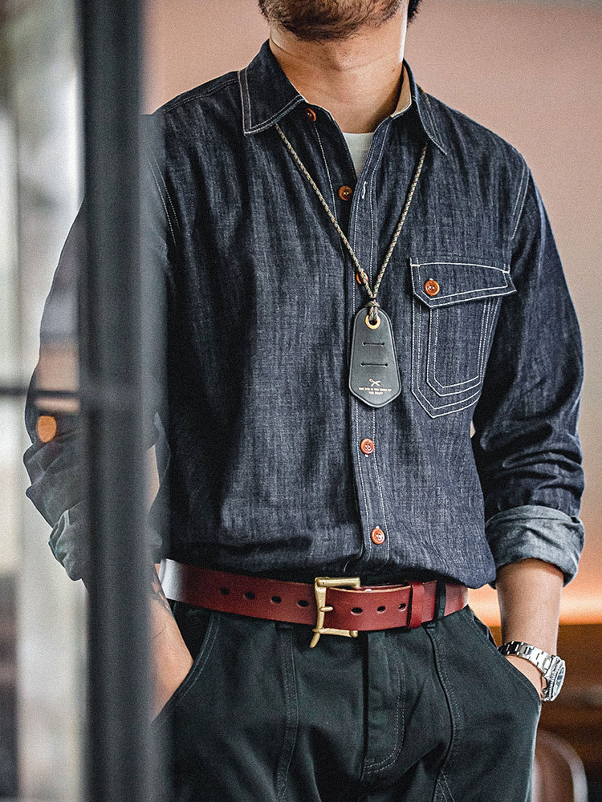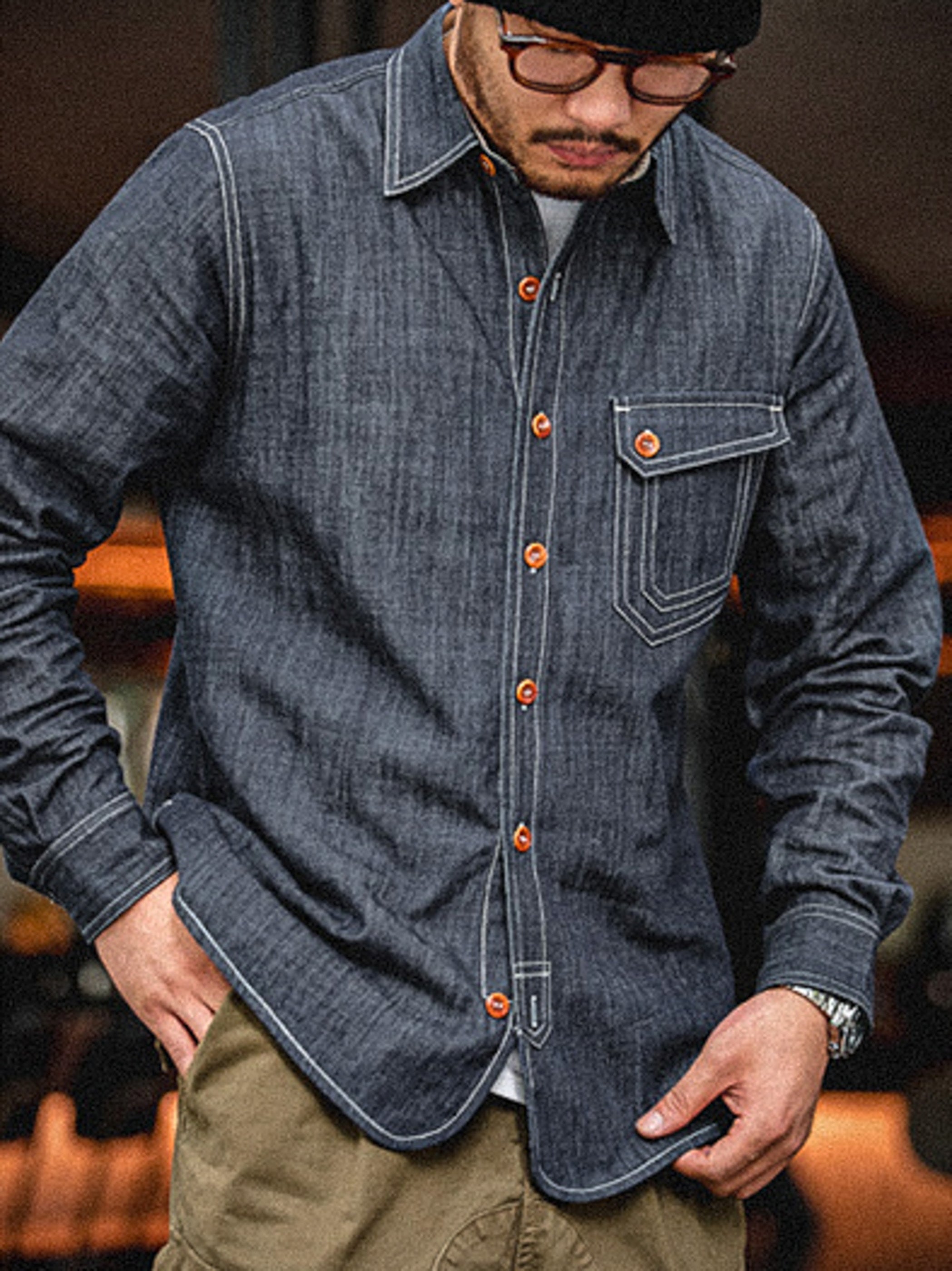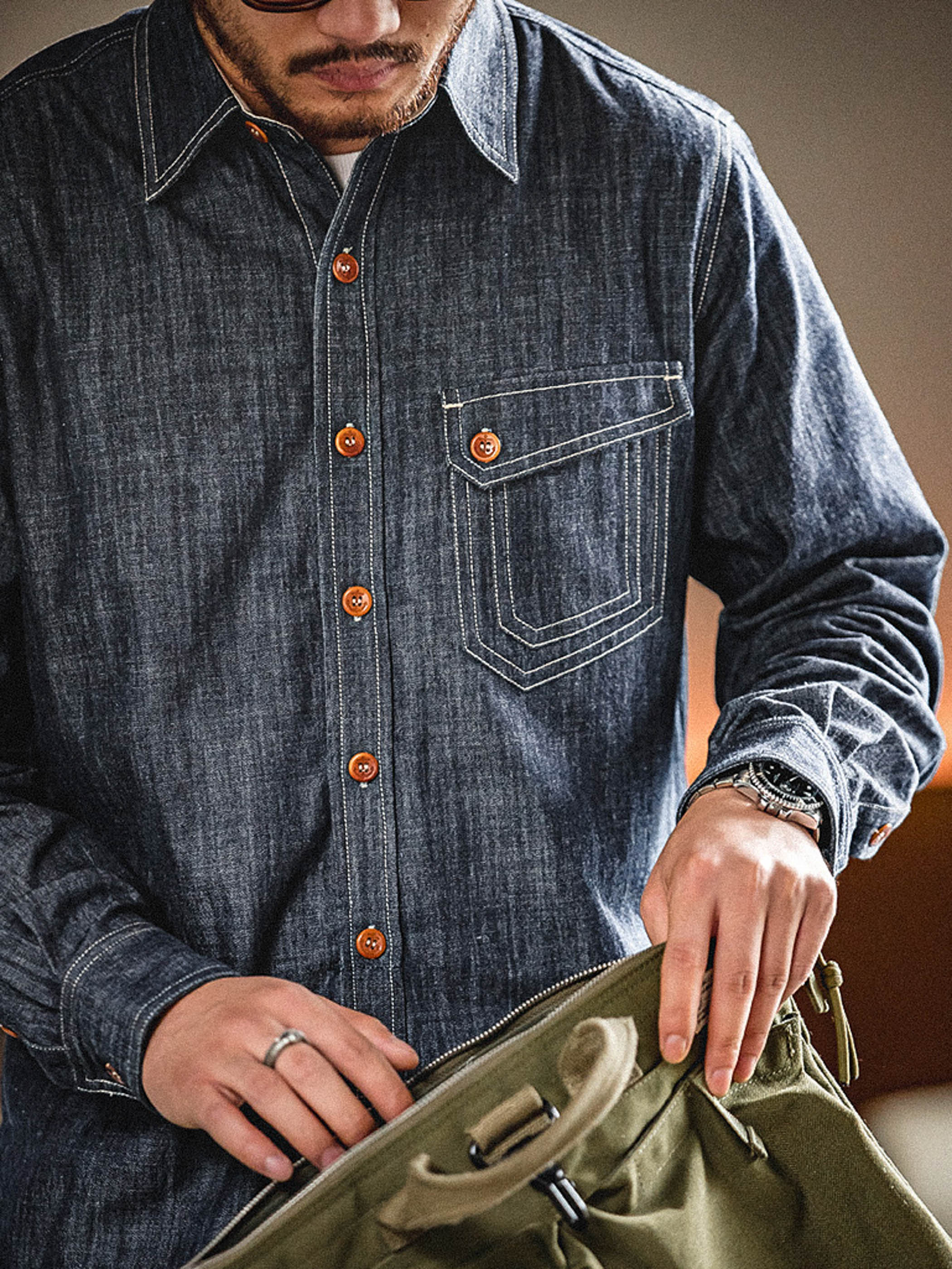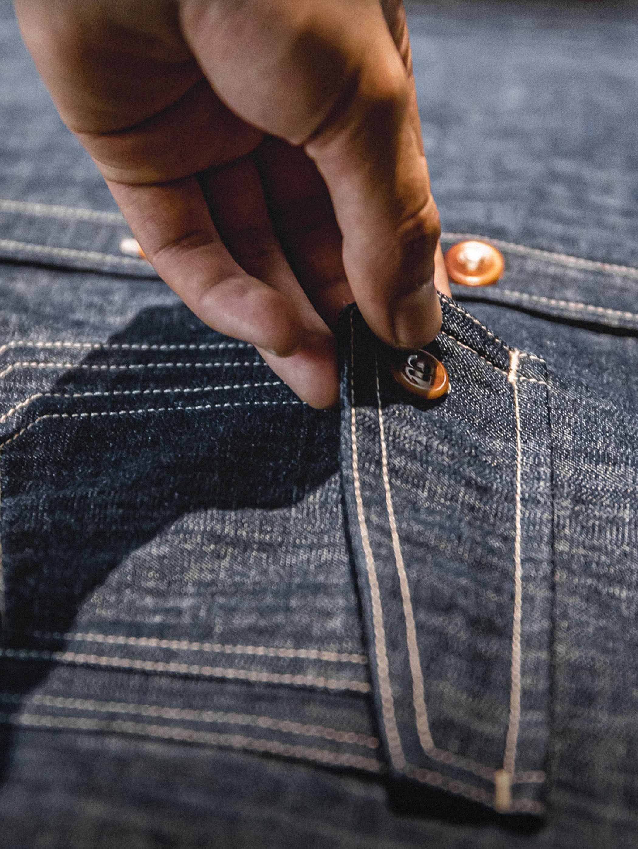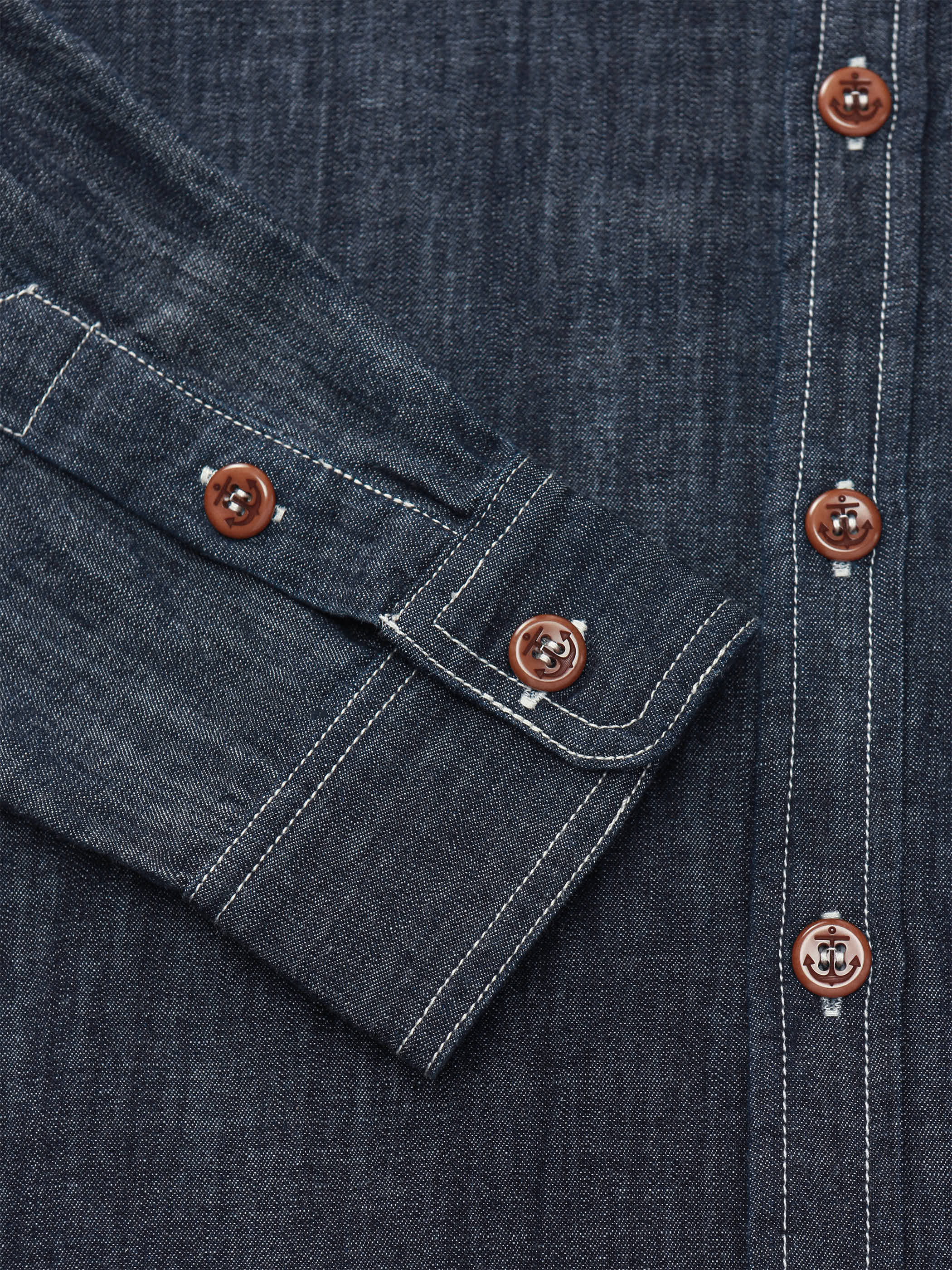 CPOシャツはアメリカ海軍に採用されていたウェアがオリジナルで、本アイテムは定番のCPOシャツをイメージして改良を加えたデニムシャツです。船や航海を連想させるものとして、シンボル的に用いられることも多く、海軍由来のアイテムとしてならではの特徴も保留、しっかりとディテールを踏襲しています。
