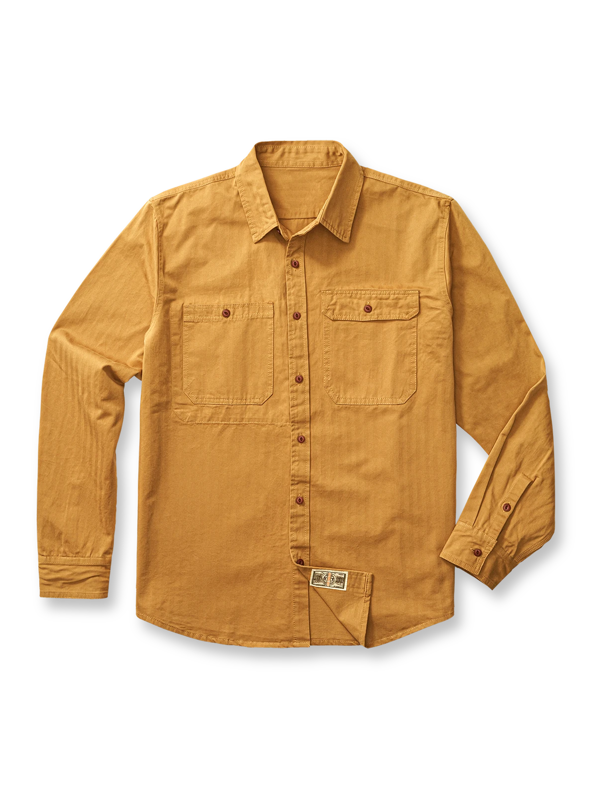 重厚なヒラメ柄ワークシャツは、1930年代のアメリカのシャツからインスピレーションを得て、古典的な軍事スタイルのワークウェアデザインを融合し、独特な響きを演出しています。尖った襟デザインを採用することで、ユニークな雰囲気が加わり、あなたをより魅力的にします。