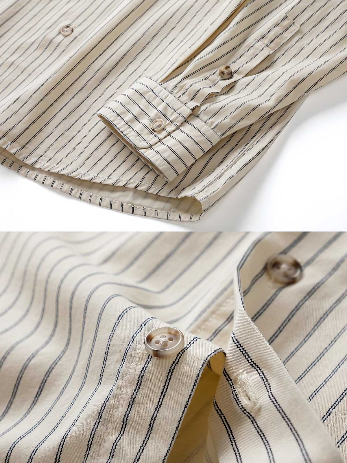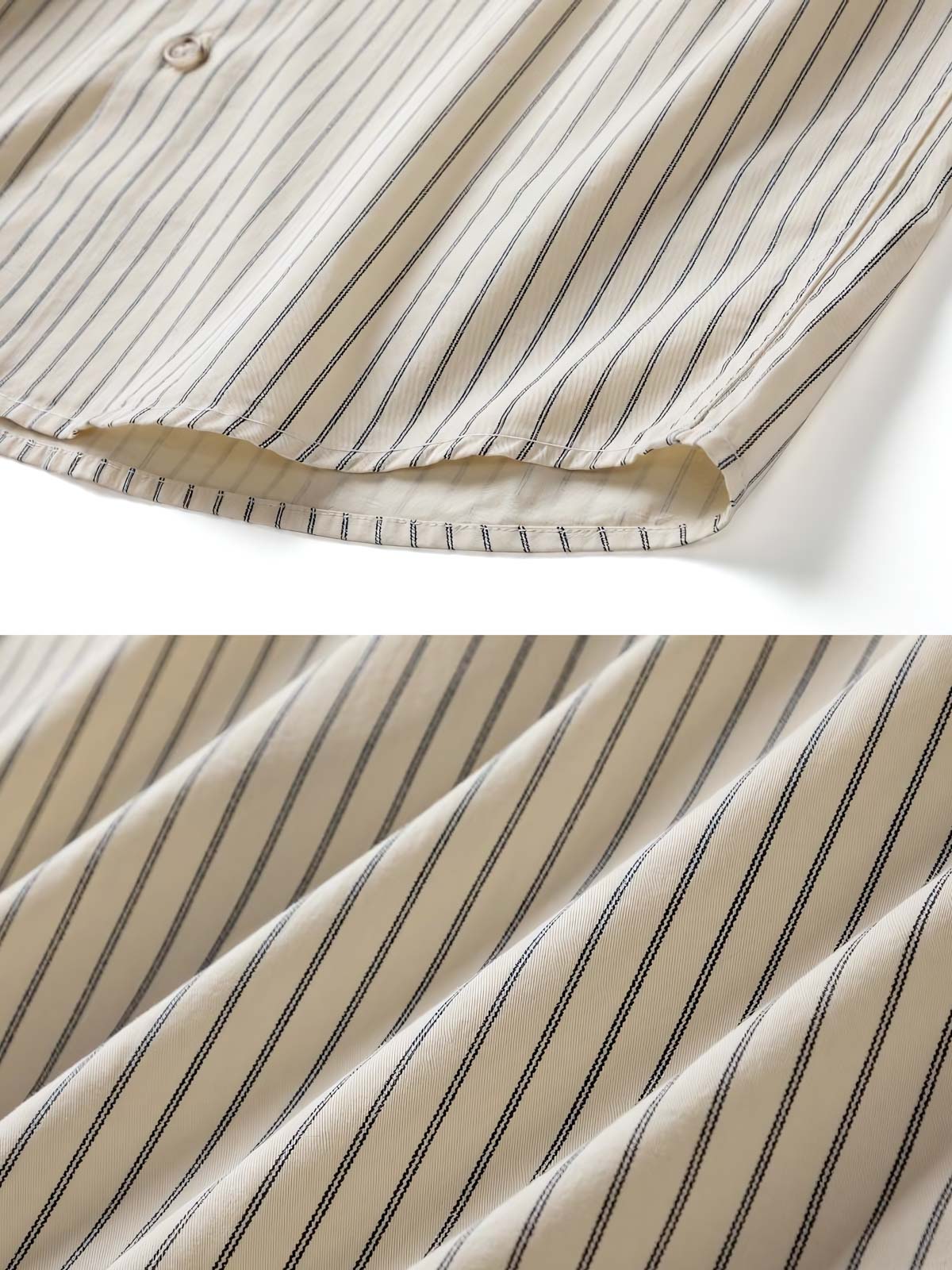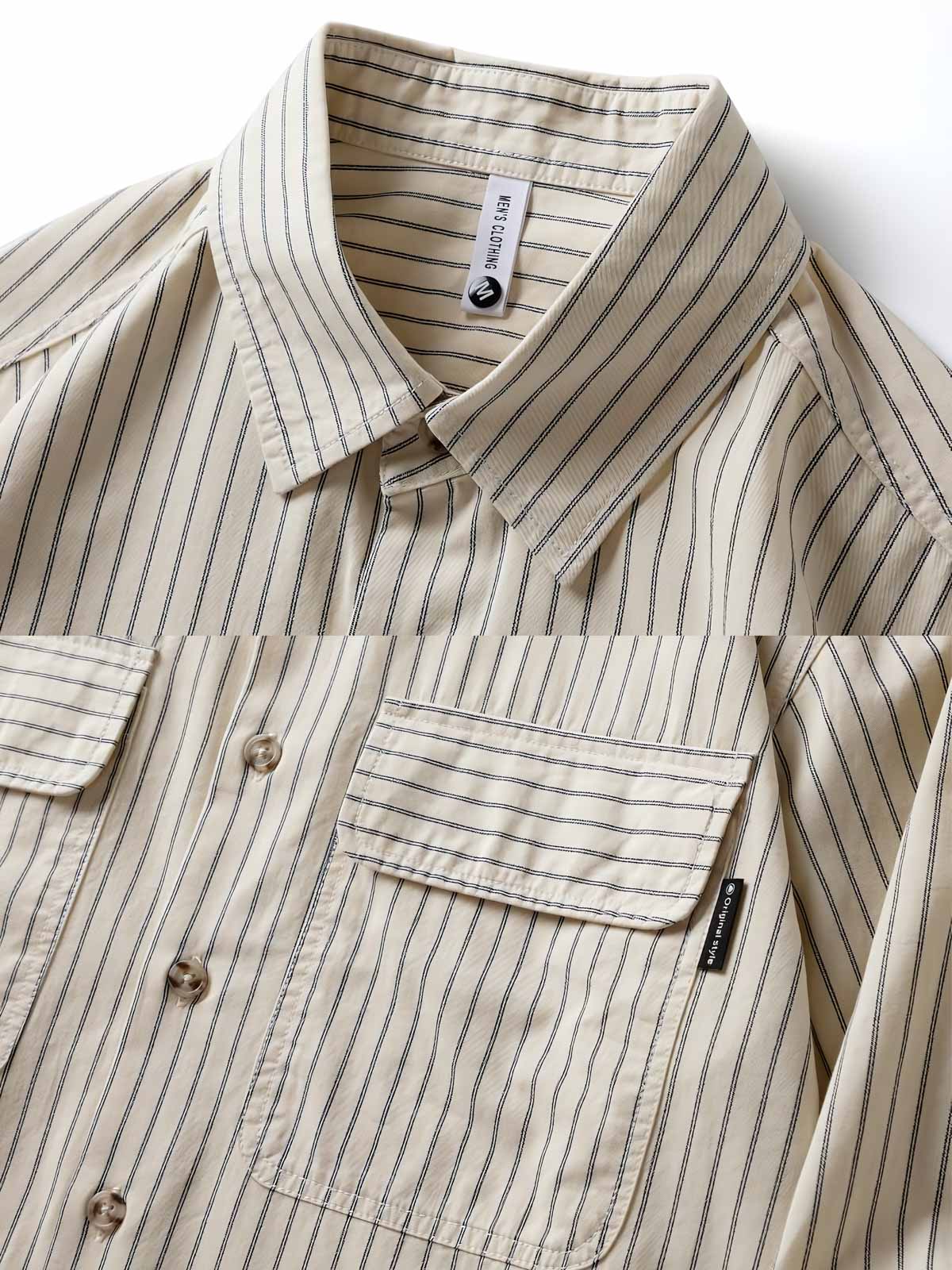 高品質のピュアコットン素材を採用し、通気性と吸湿性に優れ、洗濯を重ねるごとに柔らかく快適な肌触りになります。精密な織り方で表現されたストライプパターンは耐久性があり、服の美観を長持ちさせます。実用的なフラップポケットは、シャツに洗練された雰囲気を加えています。