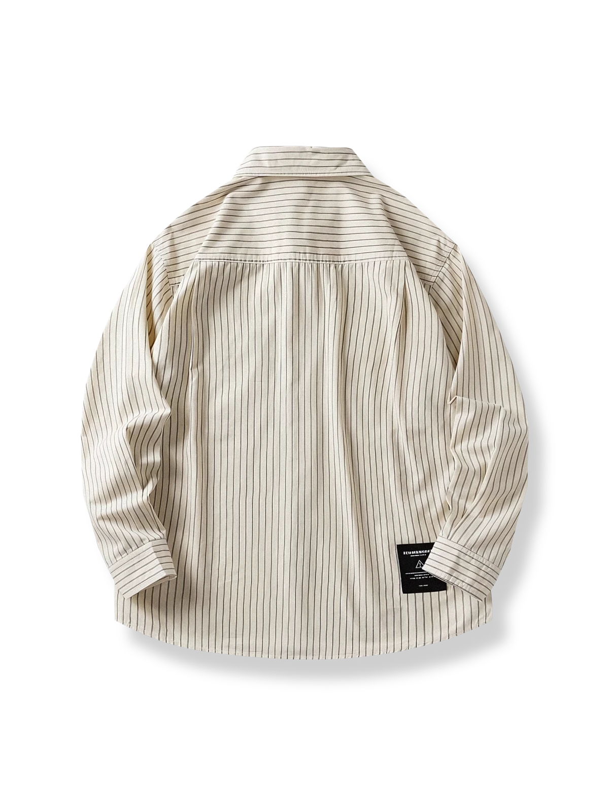 英国紳士服の伝統に根ざし、洗練されたストライプパターンを特徴とするこのシャツは、品位と身分の象徴としての長い歴史を持つストライプ要素を現代的に再解釈しました。日常からビジネスシーンまで、紳士の装いとして広く採用されています。