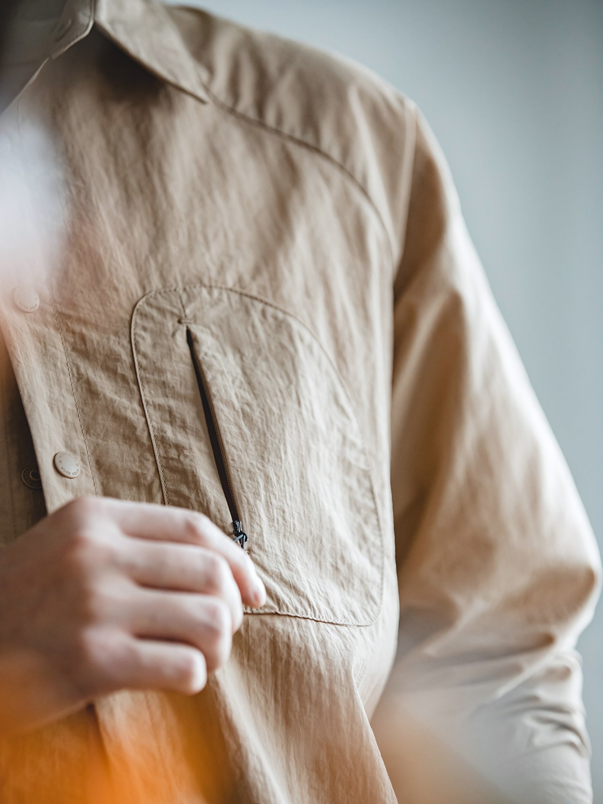 シャツの細部のデザインには独自の匠心が感じられます。弧形のパッチポケットのデザインは衬衫にユニークなスタイルをもたらしました。また、スキルフルな技術を持つループデザインも衬衫に独特の機能的な要素を加え、実用性を高めました。