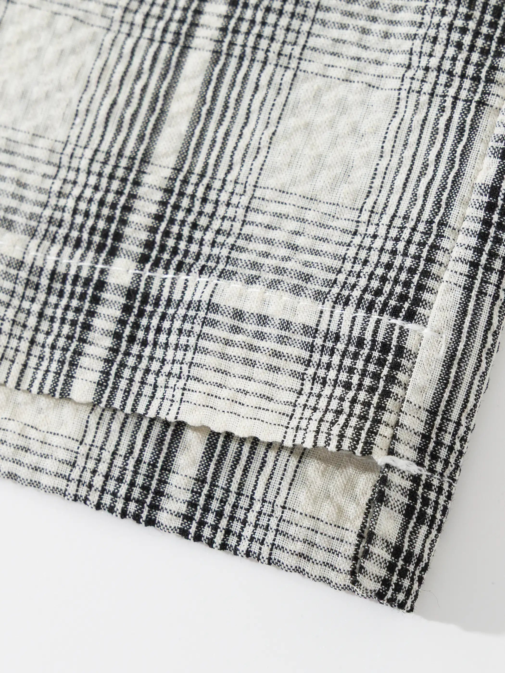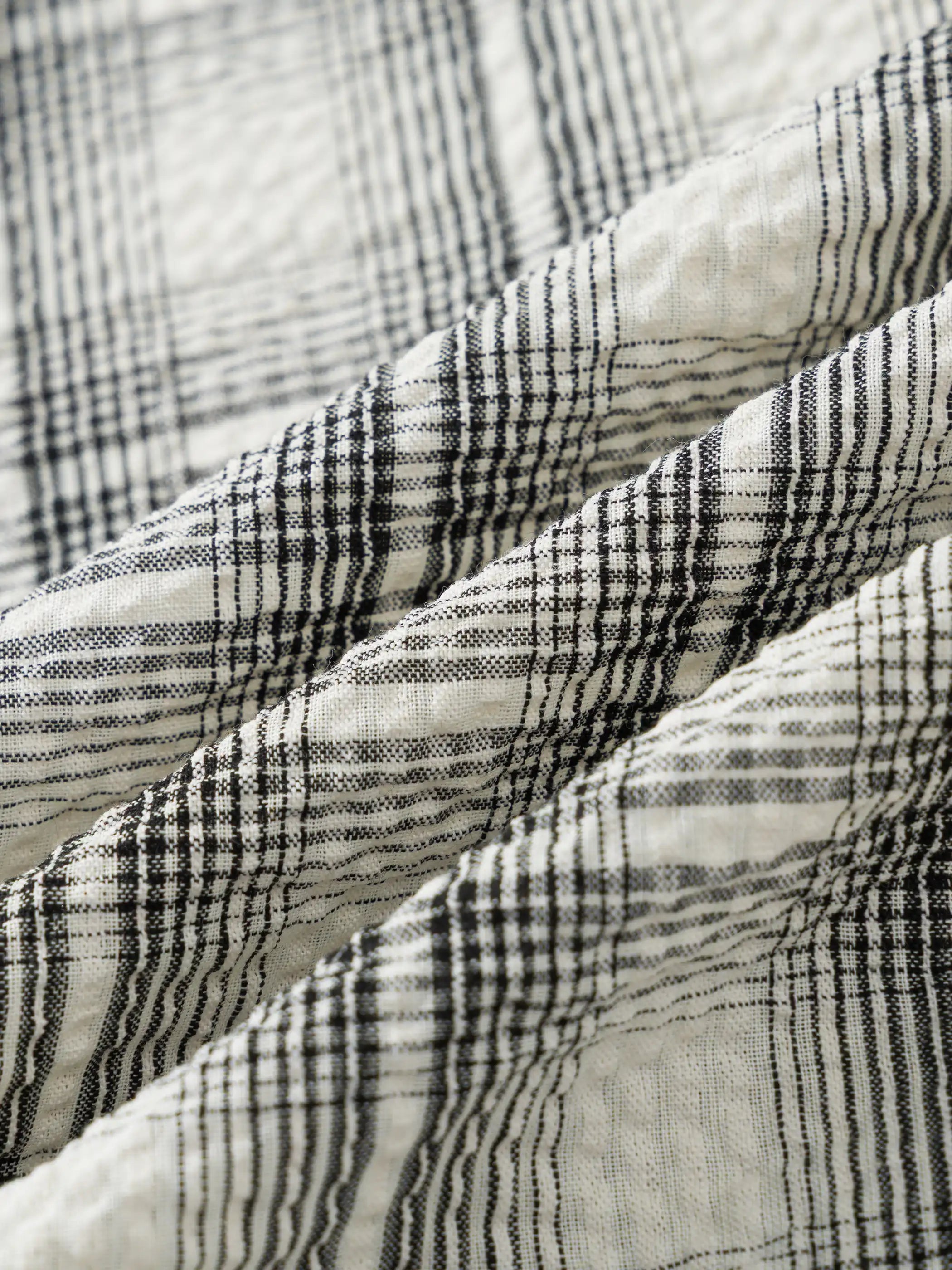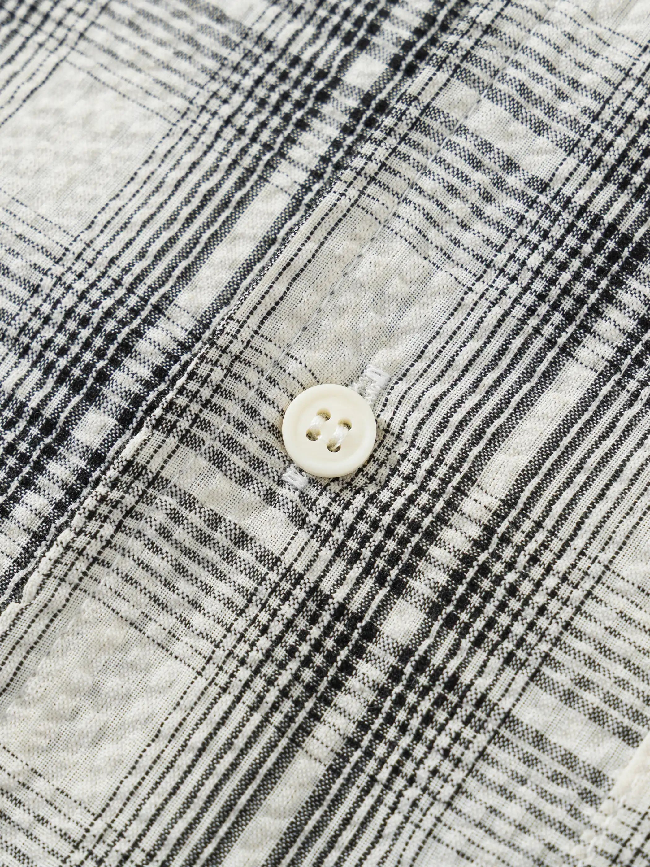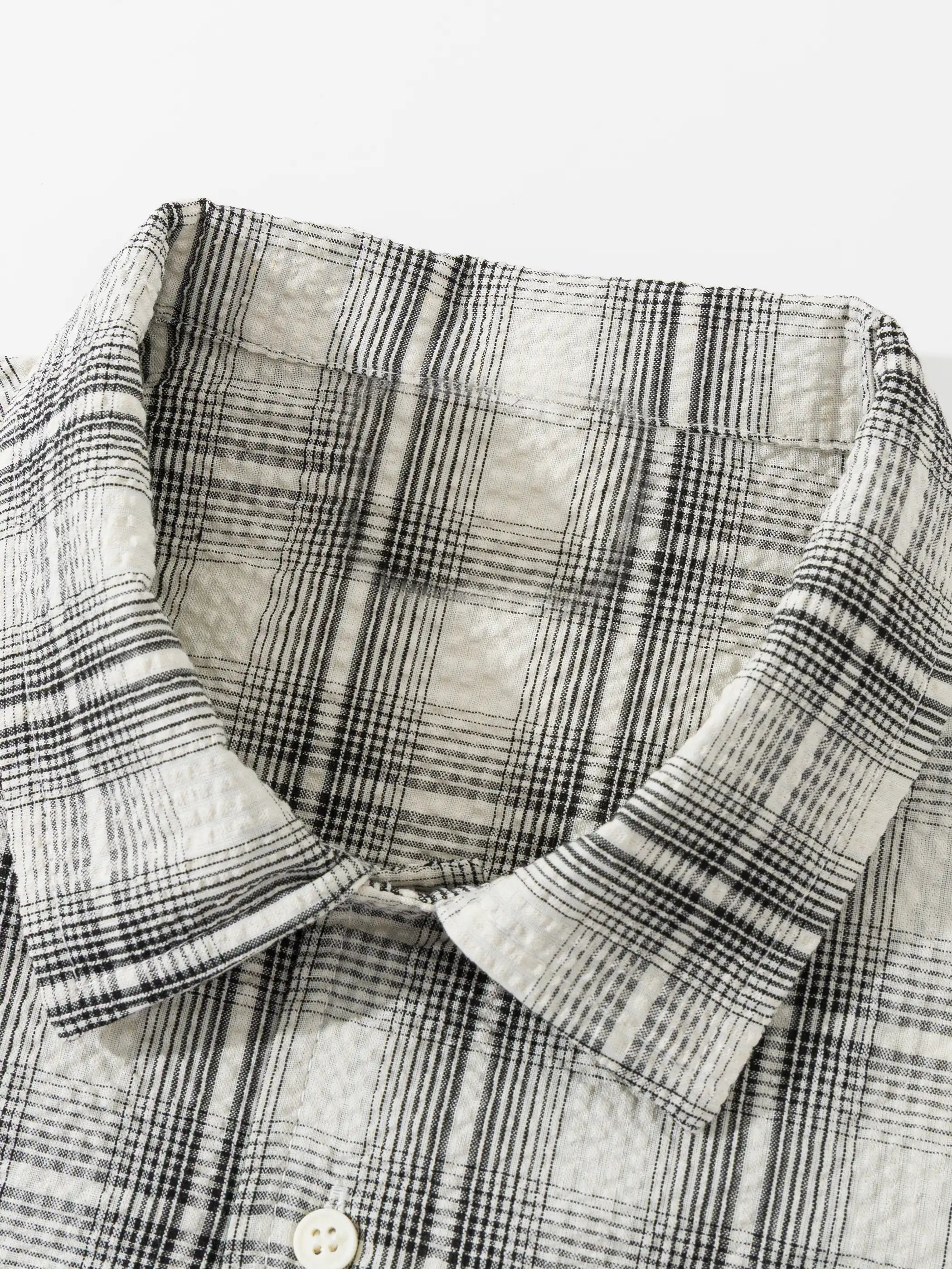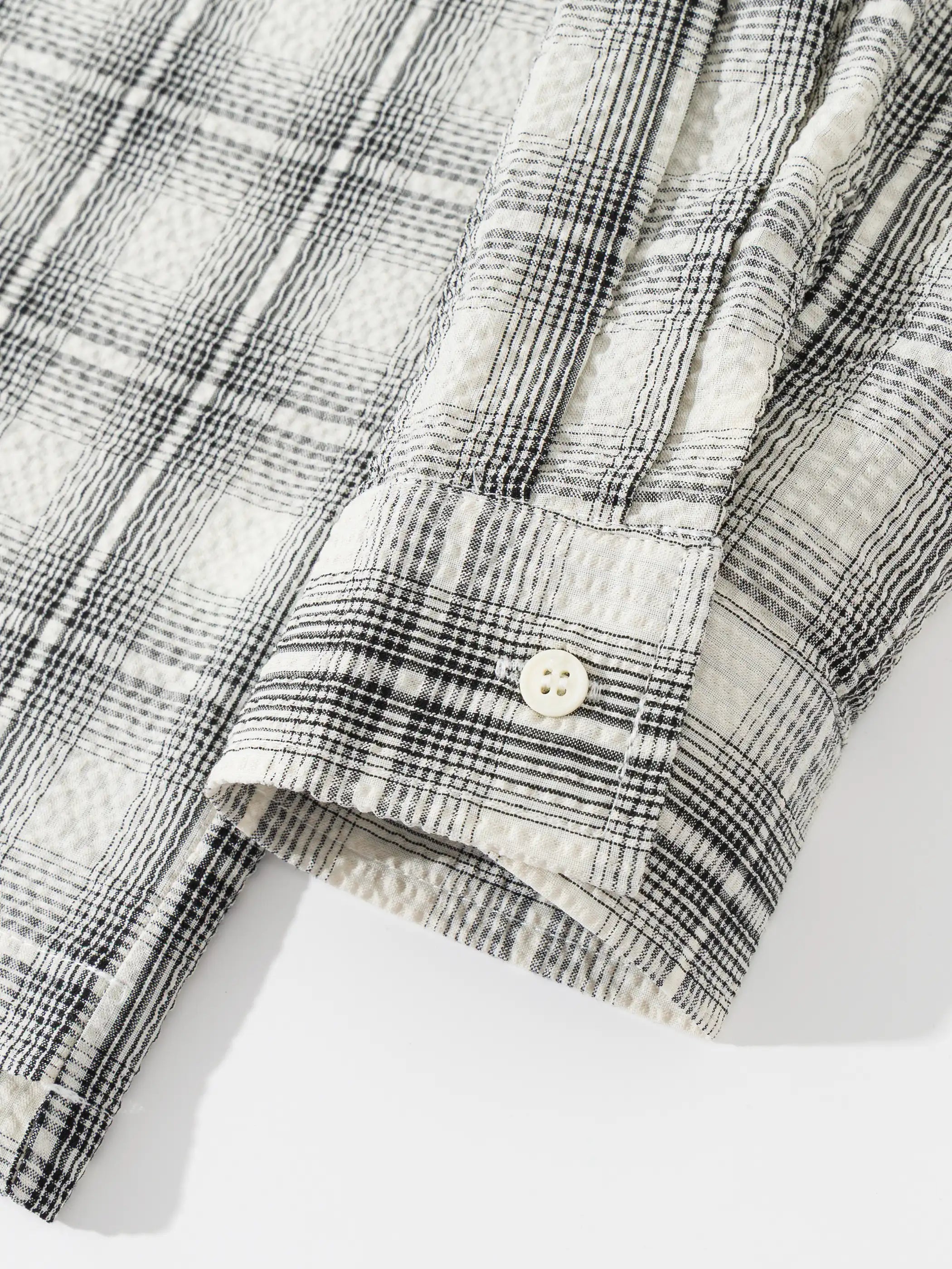通気性抜群のサッカー生地で仕立てた、クラシックなチェック柄キューバカラーシャツ。