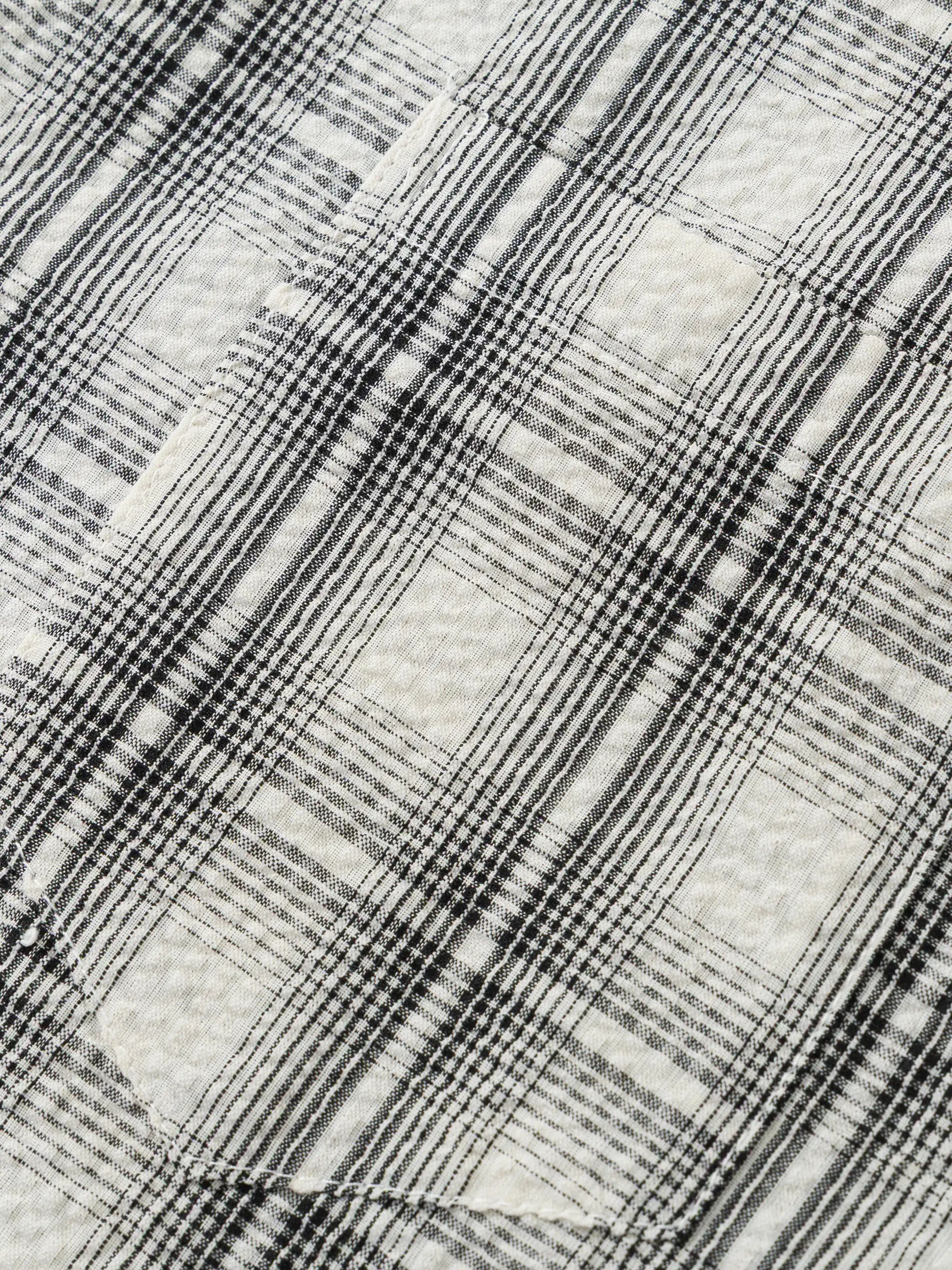 キューバカラーシャツのルーツである1930年代のリゾートウェアを踏襲しつつ、伸縮性に優れたサッカー生地を採用することで、真夏でも肌離れよく涼感をキープ。前胸のパッチポケットが全体をすっきりと引き締め、ヴィンテージなチェックパターンが懐かしさと愛着を呼び起こします。リネンショーツやワイドパンツと合わせれば、程よい抜け感と上品さが両立するコーディネートが完成します。