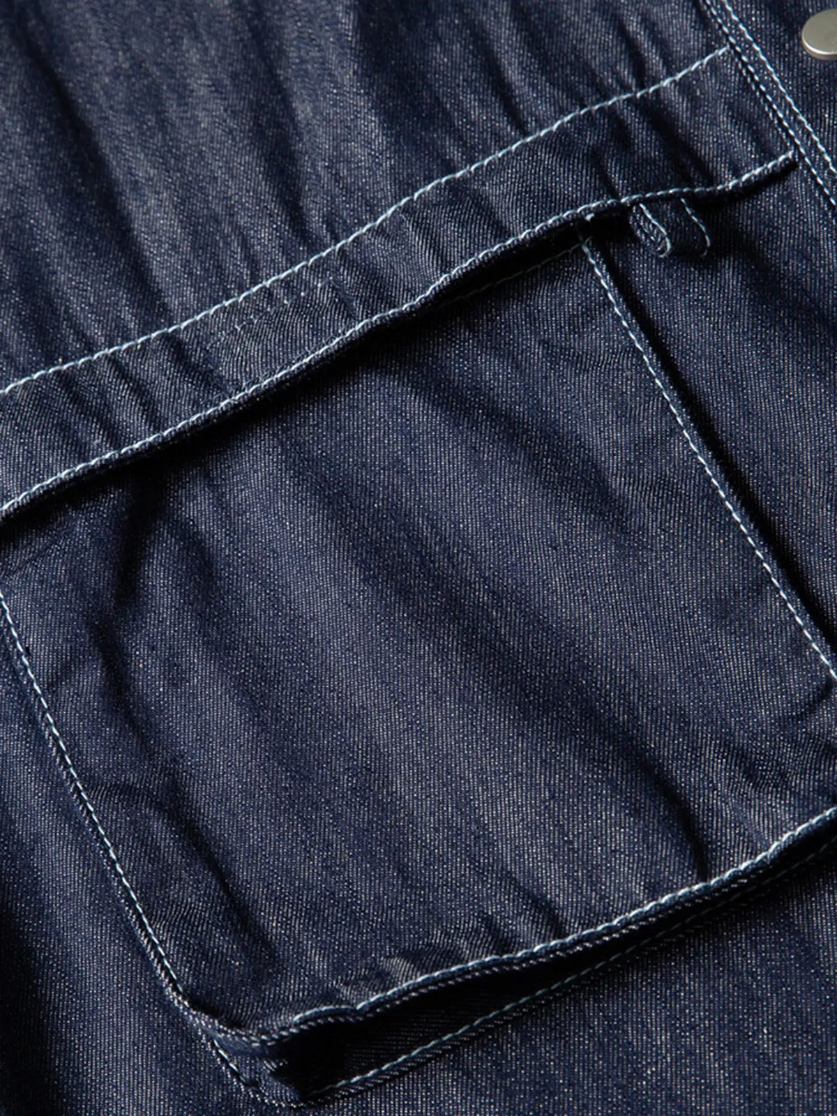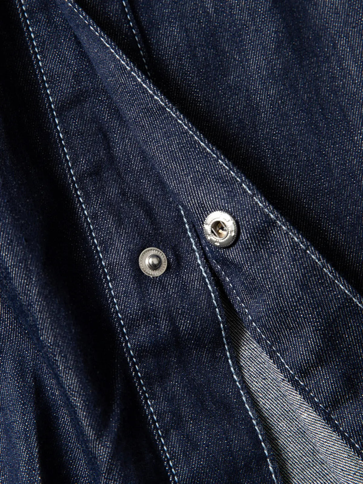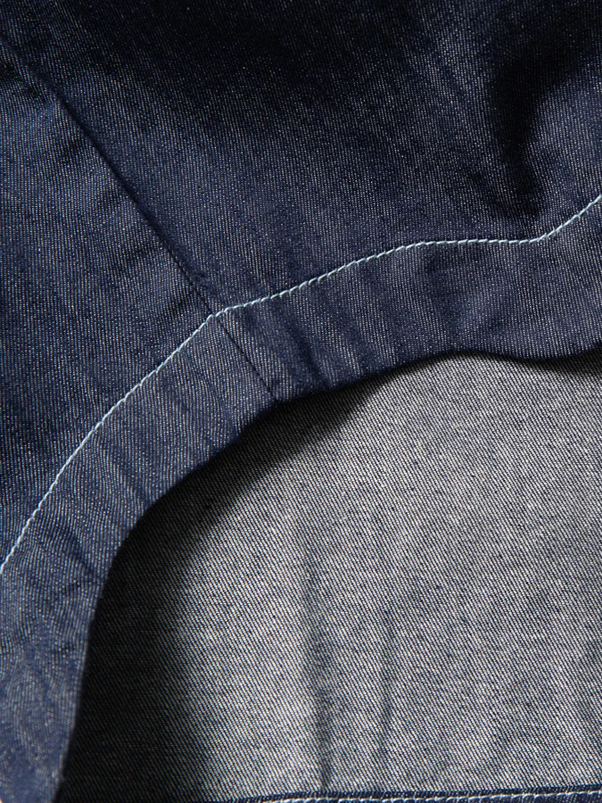 20世紀初頭のアメリカ工場労働者が着用したチョアコートやワークシャツをルーツに、丁寧に洗い込まれた中厚デニムが放つヴィンテージライクな色落ち感を表現。胸ポケットとヨークに施されたステッチワークが実用性とアクセントを両立し、5分袖にアレンジすることで通気性と着回し力を強化。デニムパンツやカーゴショーツとの相性は抜群で、土臭さのあるマチュアなカジュアルスタイルを提案します。