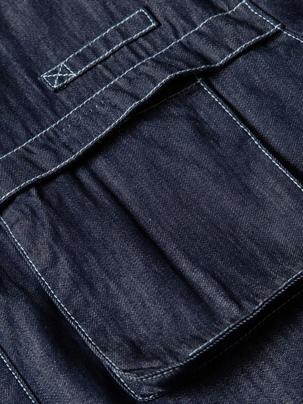 淡く色落ちしたデニムとクラシックなワークディテールが融合した、夏のアクティブシーンにも映える5分袖シャツです。