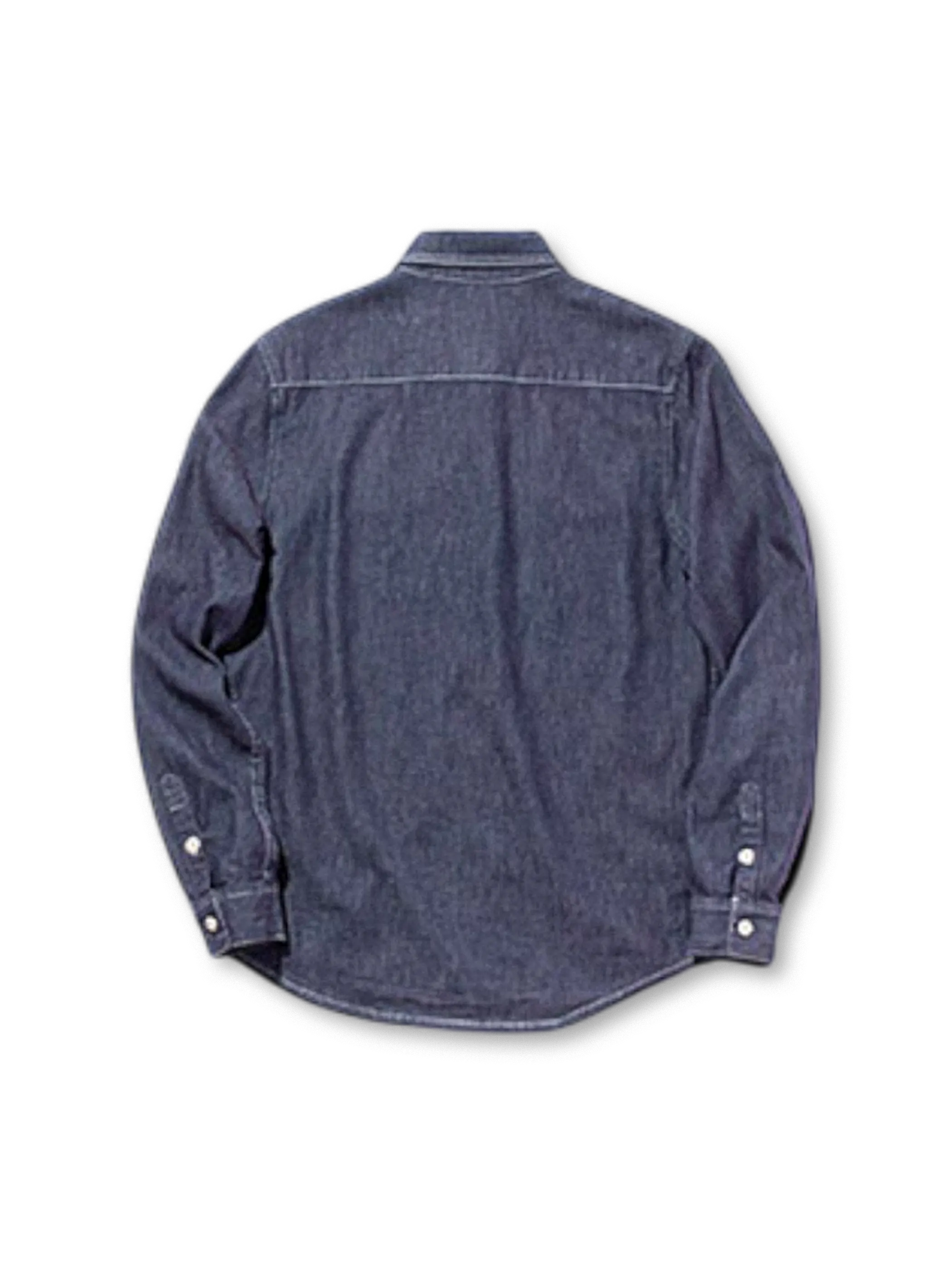 1940年代のネイビー作業着に着想を得た一着で、綿70%・麻30%の青年布は中薄で軽やかに透けず、着心地はさらりと快適。胸元のペン&工具用ポケットと脂白樹脂ボタン、ドブチ折り二重縫製が本格派のタフさを担保し、章魚と潜水艦のワッペンが海軍的な遊び心をプラス。デニムやコットンチノと合わせることで、シンプルながらもストーリー性のあるワークカジュアルが完成。