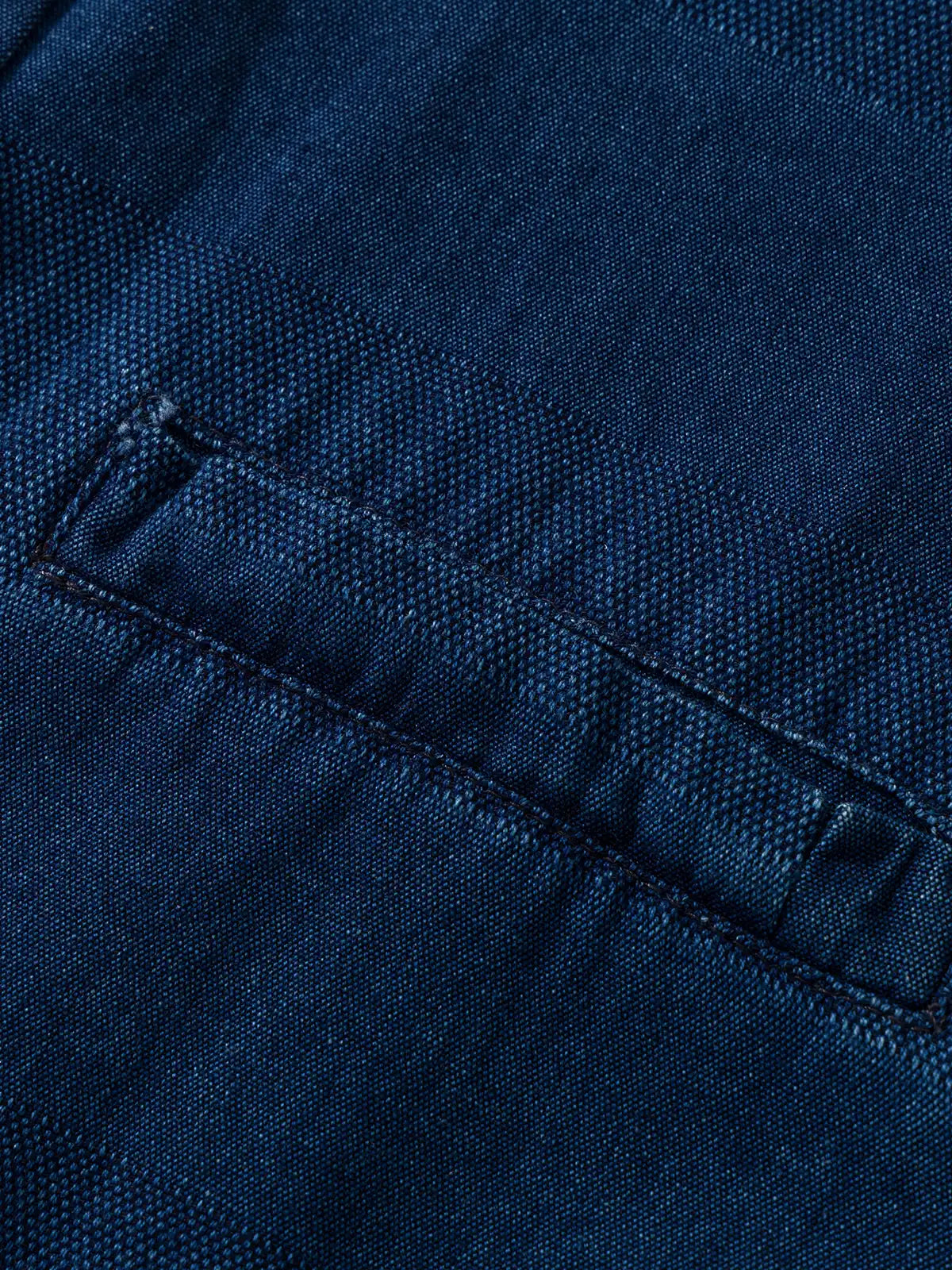 19世紀のアメリカンワークシャツに着想を得たこの一着は、肌当たりの良い珠地編みデニムを洗い込むことで、柔らかな表情と適度なハリ感を両立。胸ポケットはワークウェアの実用性を、背面のボックスプリーツは動きやすさとヴィンテージらしいAラインシルエットを実現します。フロントを開けてTシャツを覗かせるレイヤードや、ニットの上に羽織るなど、幅広いスタイリングにマッチする万能アイテムです。