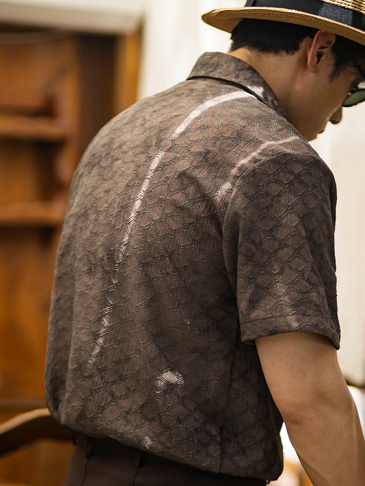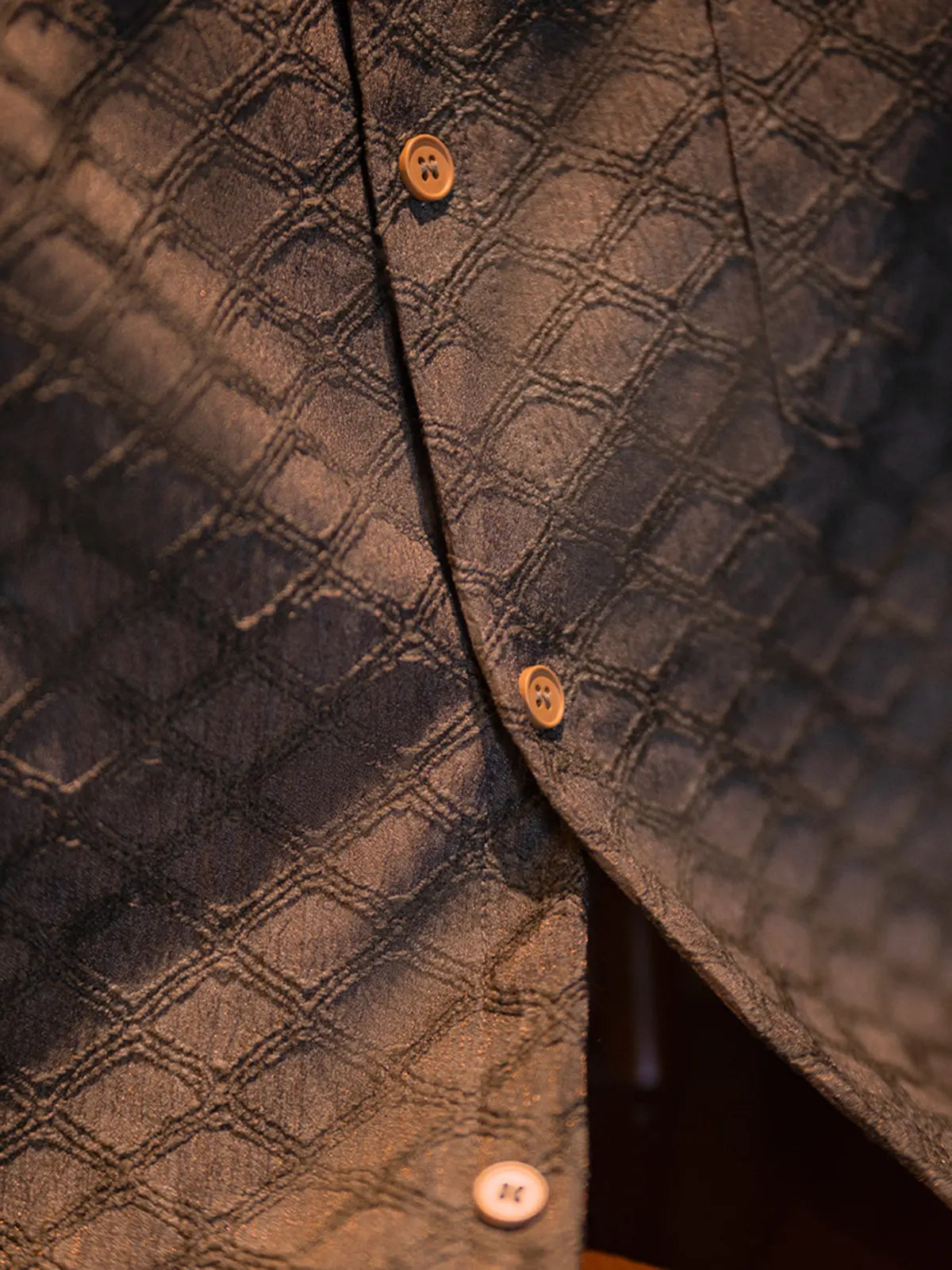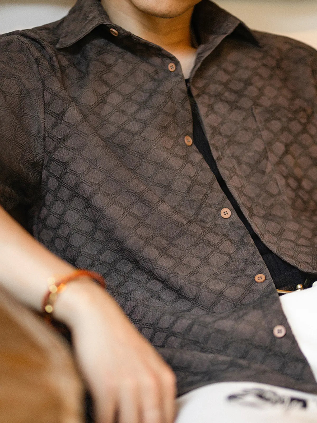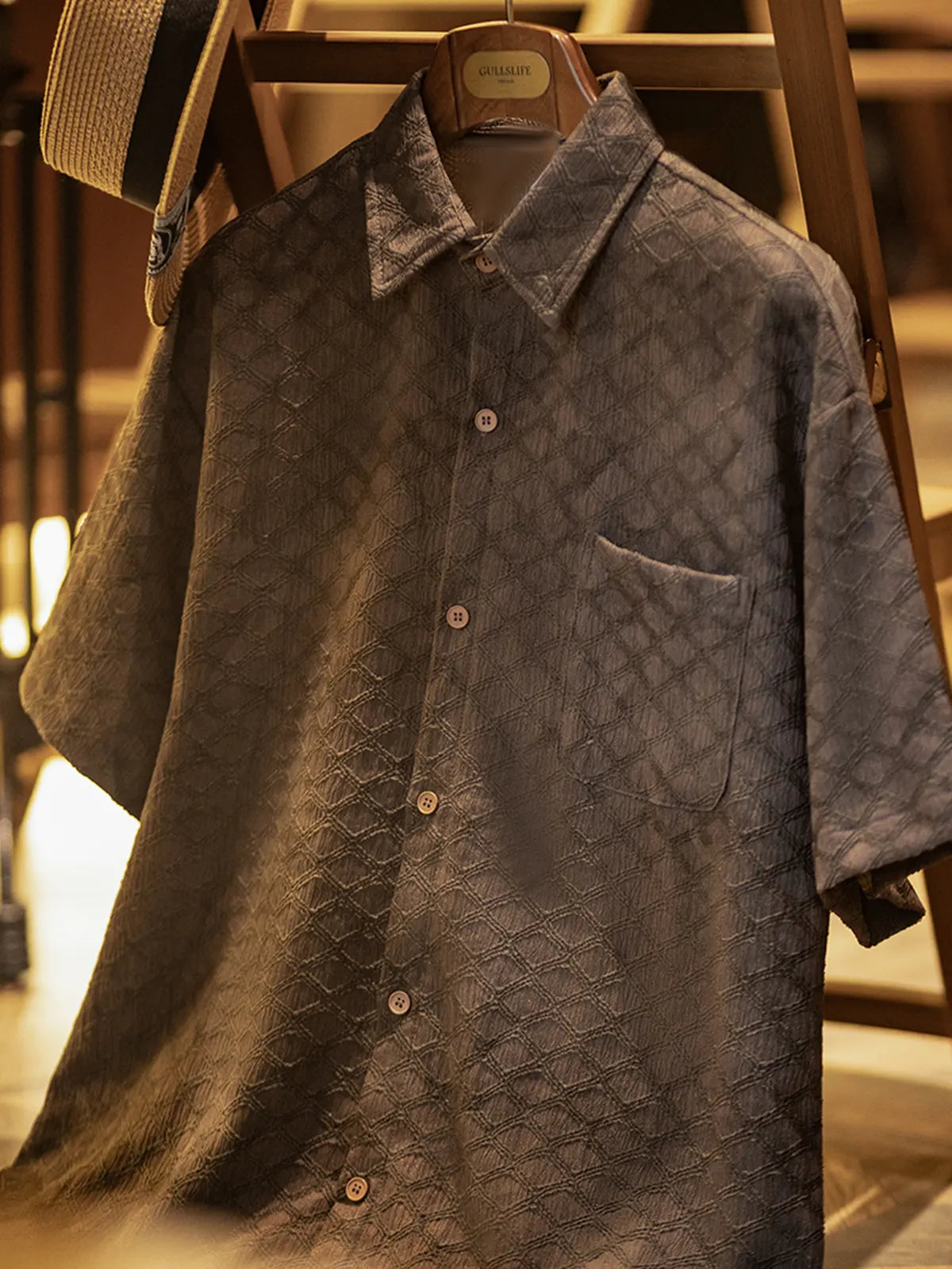 ハリと薄軽さを両立する94%ポリエステル・6%ポリウレタン混紡の抗シワストレッチ素材に、ビンテージライクな蛇皮柄をオールオーバーでプリント。ココナッツナットボタンが温かみを添え、開閉するたびにナチュラルなアクセントを演出。シンプルなレギュラーカラーとボックスシルエットにより、単体でリラックス感あふれる着こなしが楽しめるほか、インナーにTシャツを合わせたレイヤードスタイルも軽やかにキマる。ショーツやスリムデニムとの相性はもちろん、軽快なシャツジャケット風の羽織りとしても活躍。ビジネスカジュアルからリゾートまで、シワを気にせず手軽にコーデをアップデートできる一着。