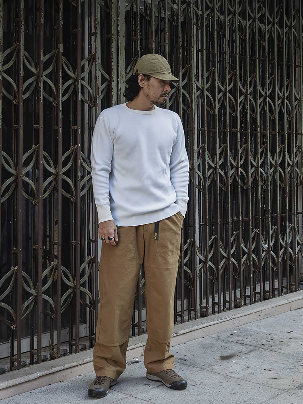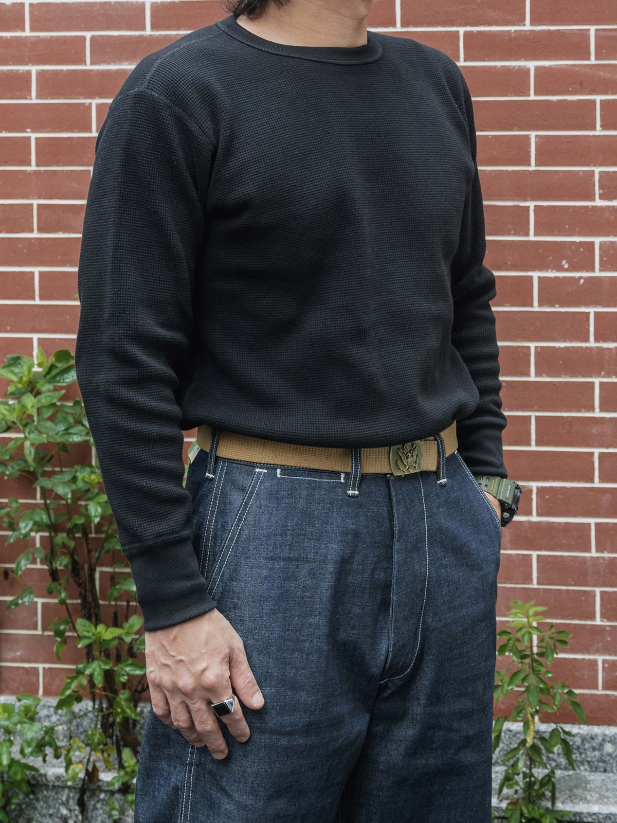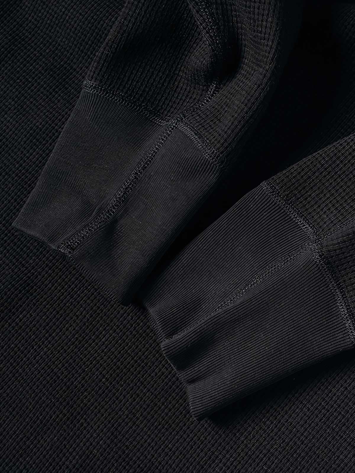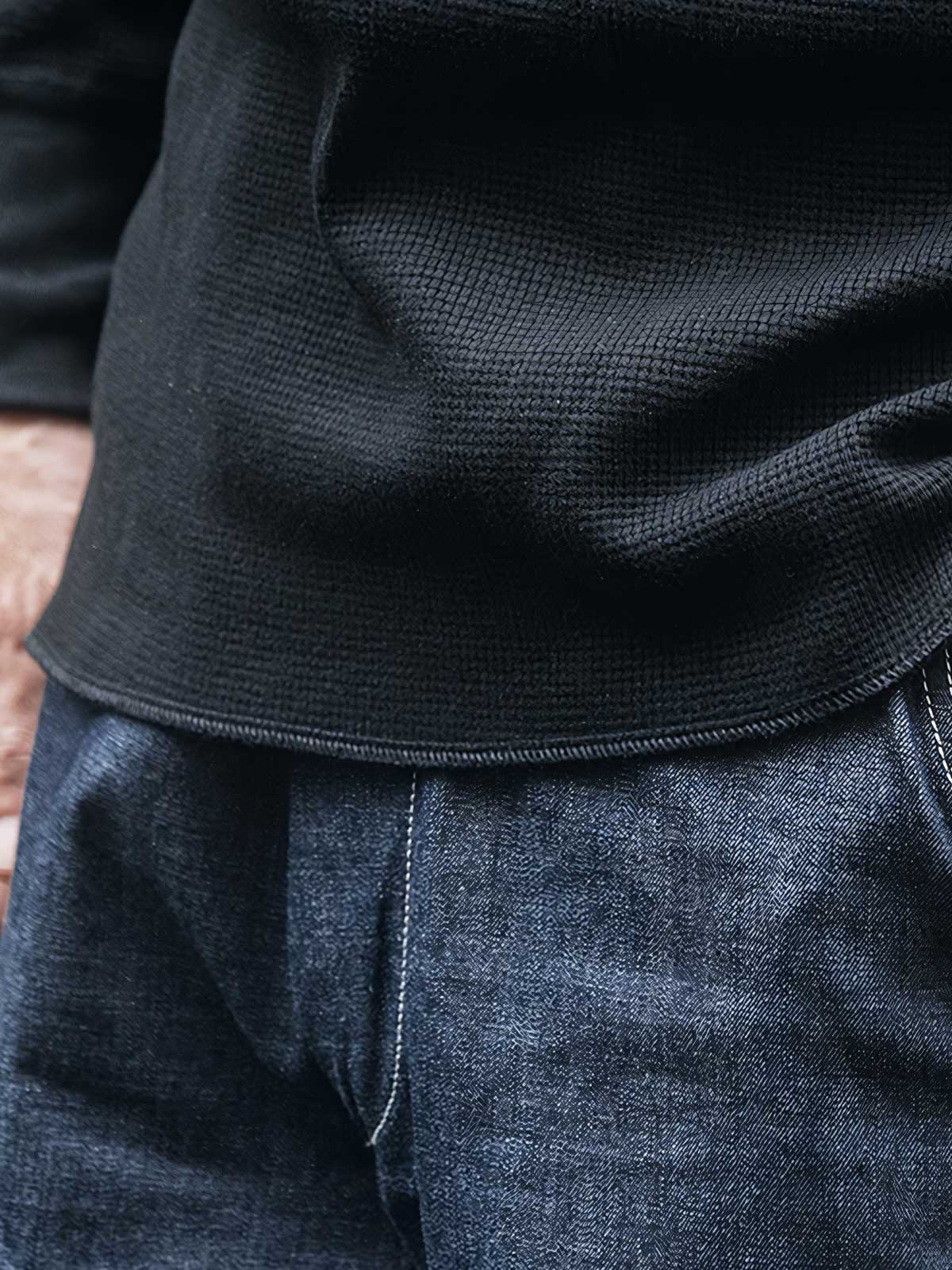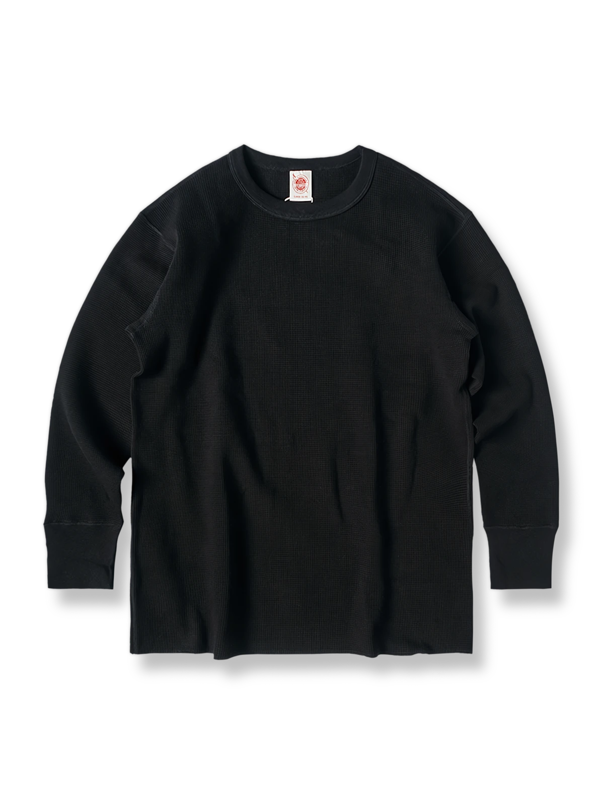 この長袖Tシャツは、クラシックなワッフル格子模様を採用しています。この模様は19世紀の寝具として始まり、そのユニークな外観と快適な質感が衣類にも採用されるようになりました。ワッフル格子は伝統的なアンダーシャツのデザインからインスピレーションを得ており、その歴史的な背景と独特な魅力を現代のファッションに融合させています