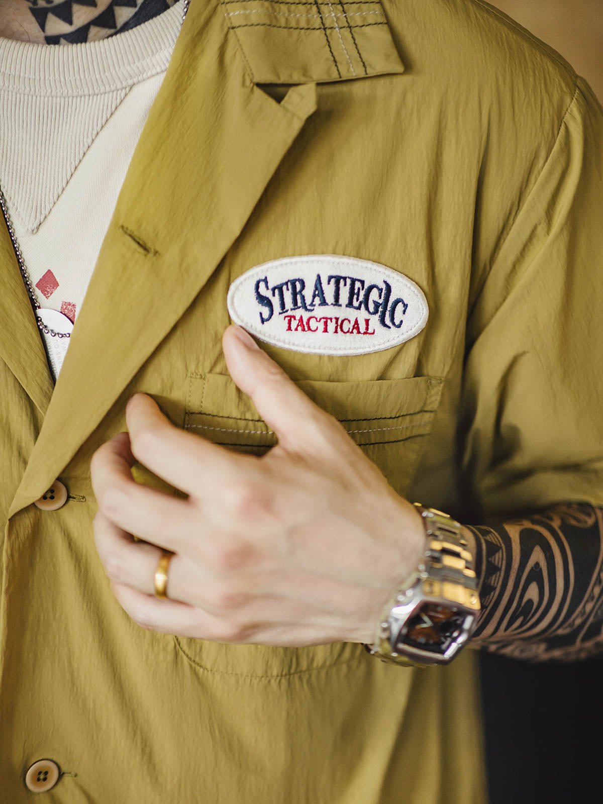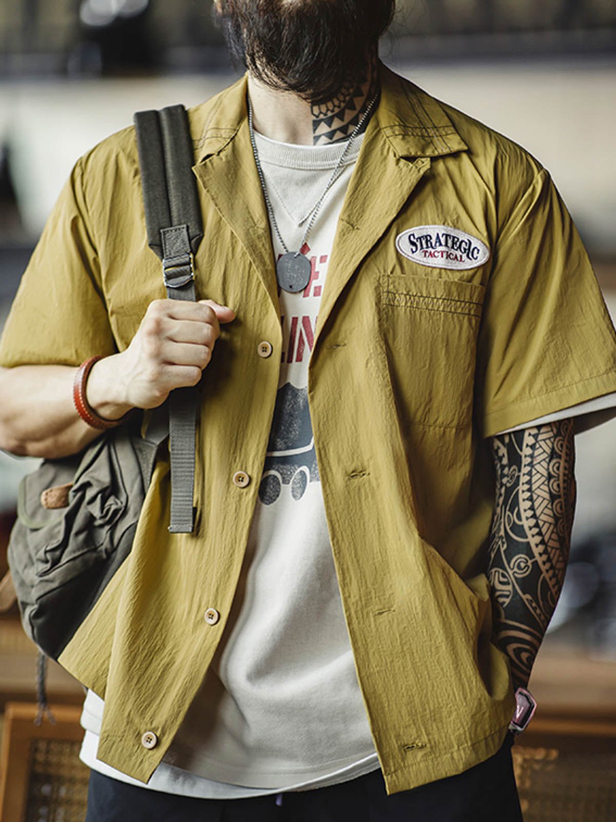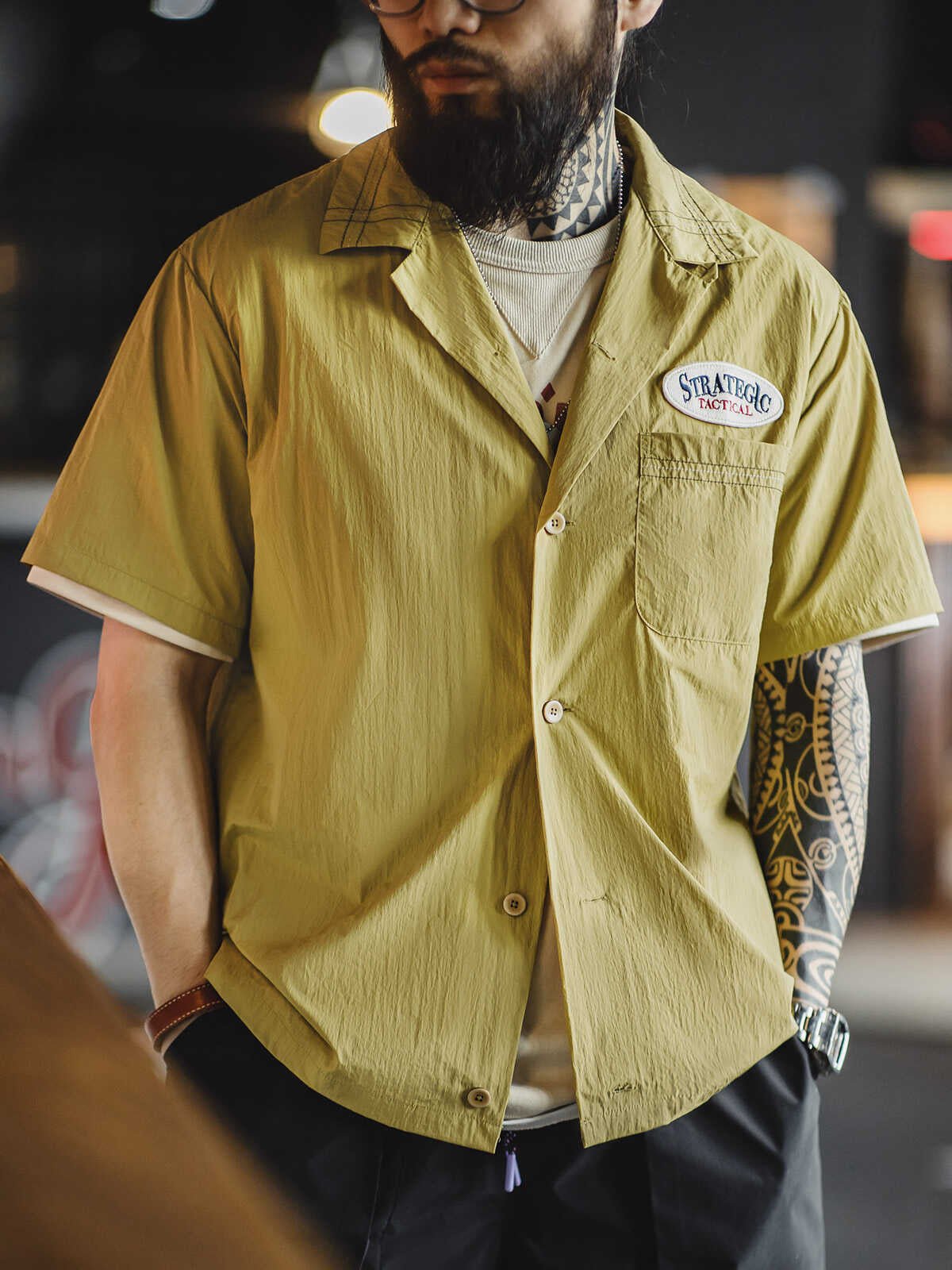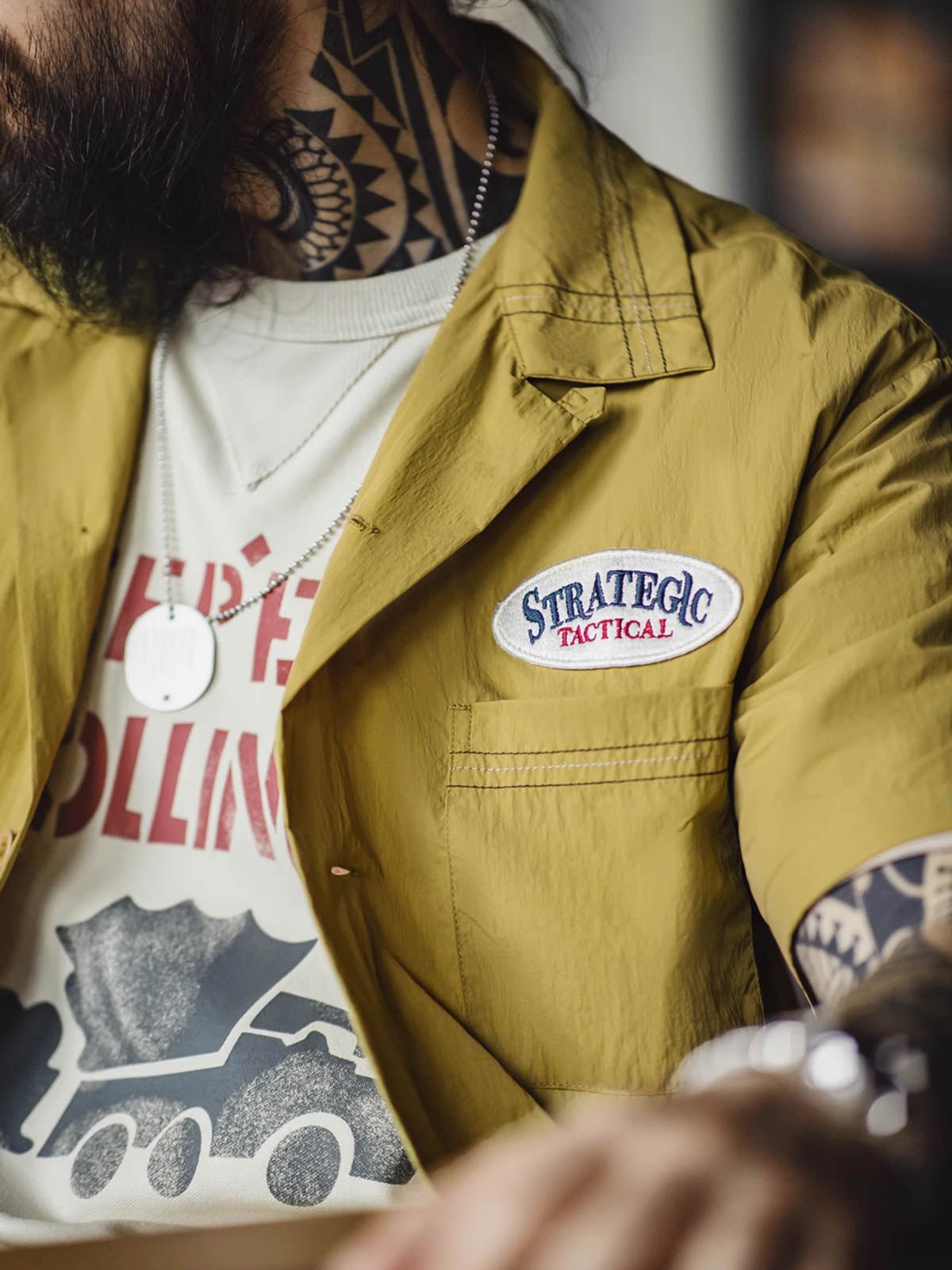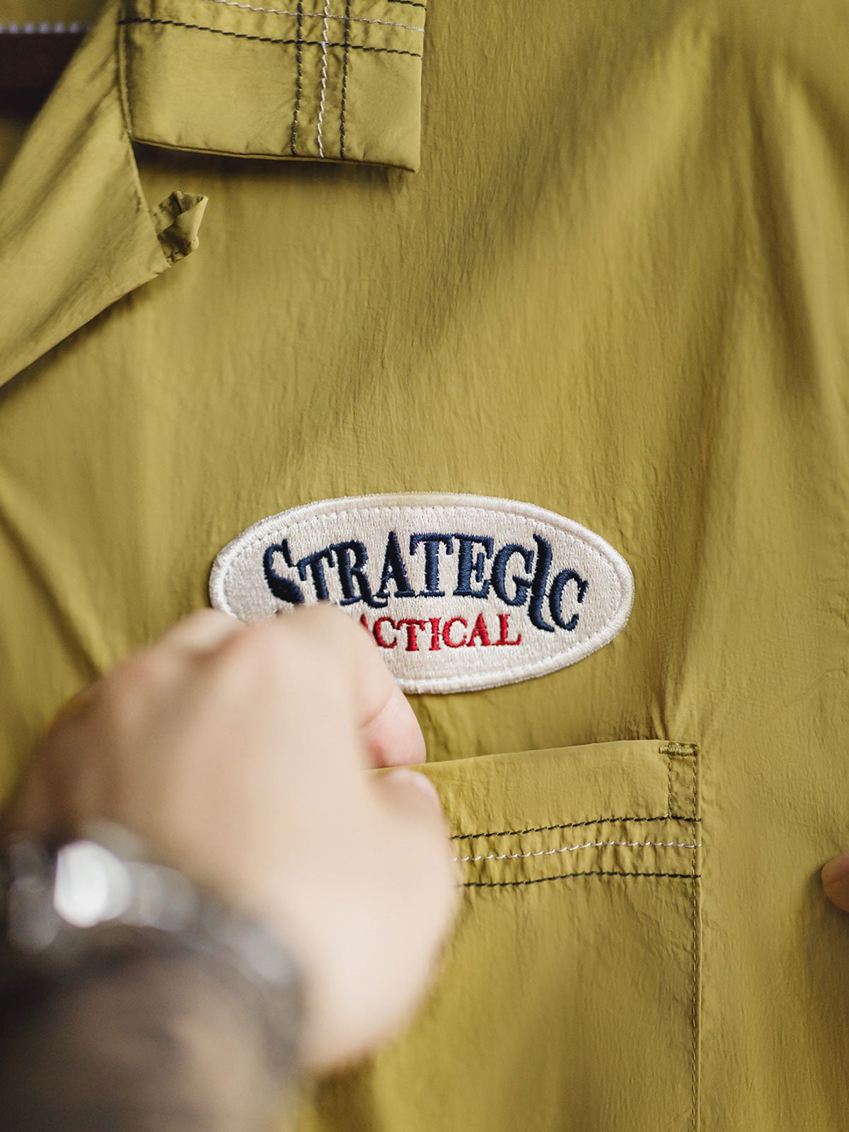 このシャツは、100%ナイロン素材を使用しており、軽量で通気性が抜群です。ウォッシュ加工によるヴィンテージ感が特徴で、クラシックなキューバカラー(開襟)デザインとマスタードイエローの配色が、夏のファッションに彩りを添えます。単独での着用はもちろん、シンプルなTシャツとレイヤードすることで、独特のヴィンテージスタイルを演出します。