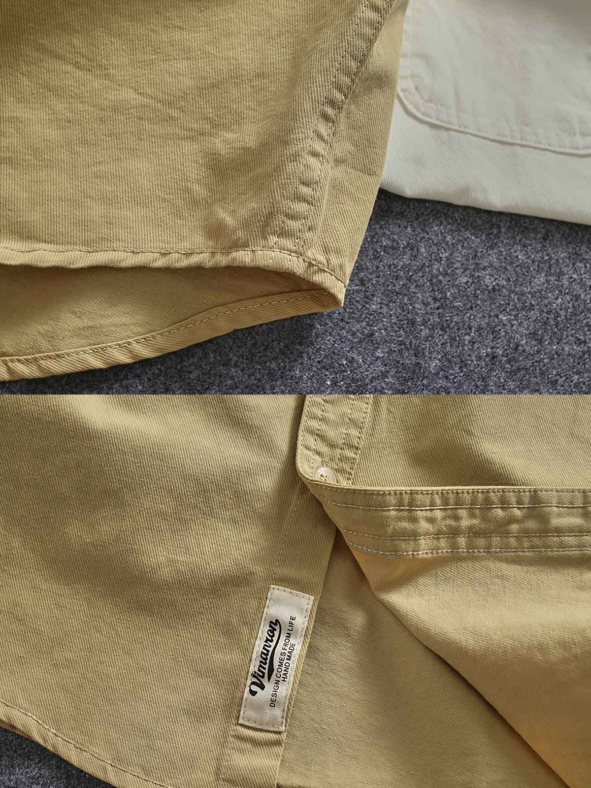 全綿素材を採用し、柔らかな質感と良好な通気性を提供します。シャツには二つの胸ポケットとペンポケットが備わっており、日常の利便性を高めています。細やかな縫製と均一のステッチが、長持ちする品質を保証します。
