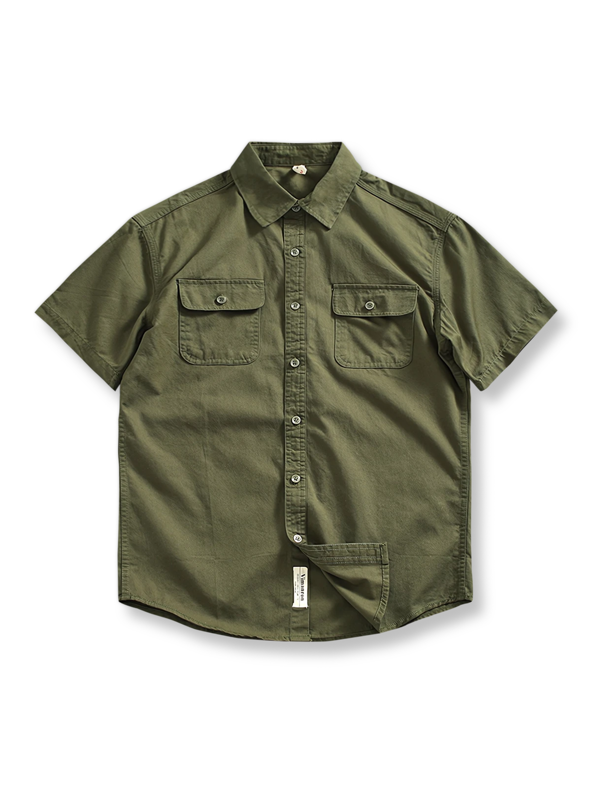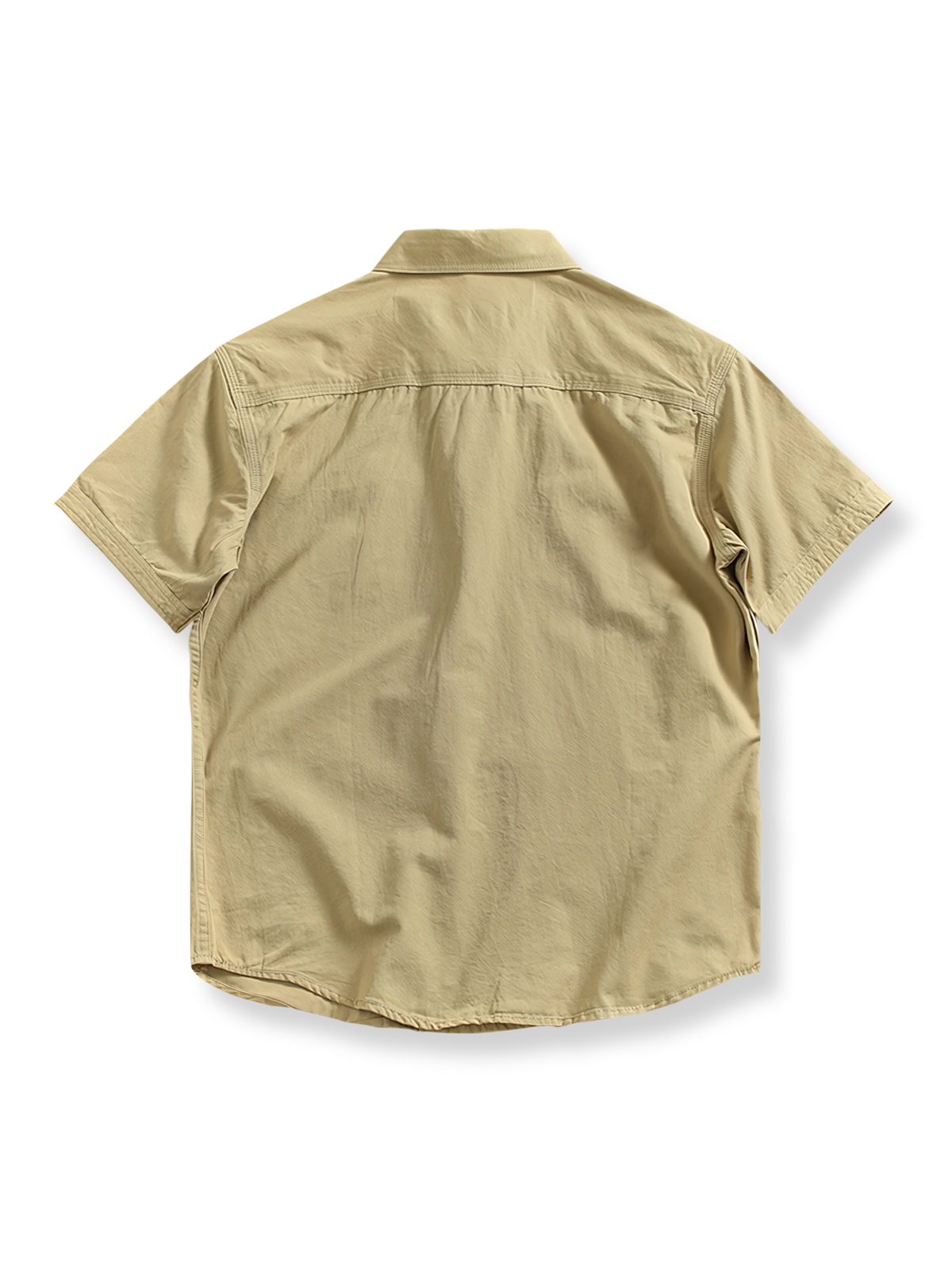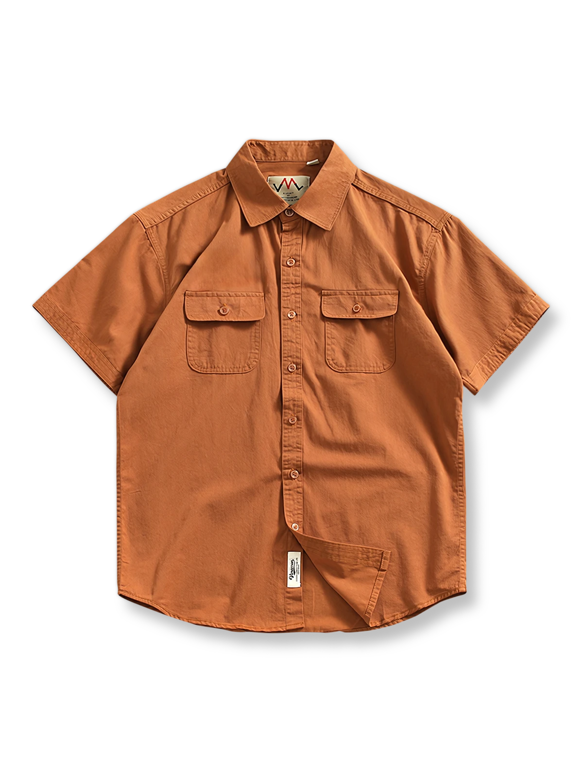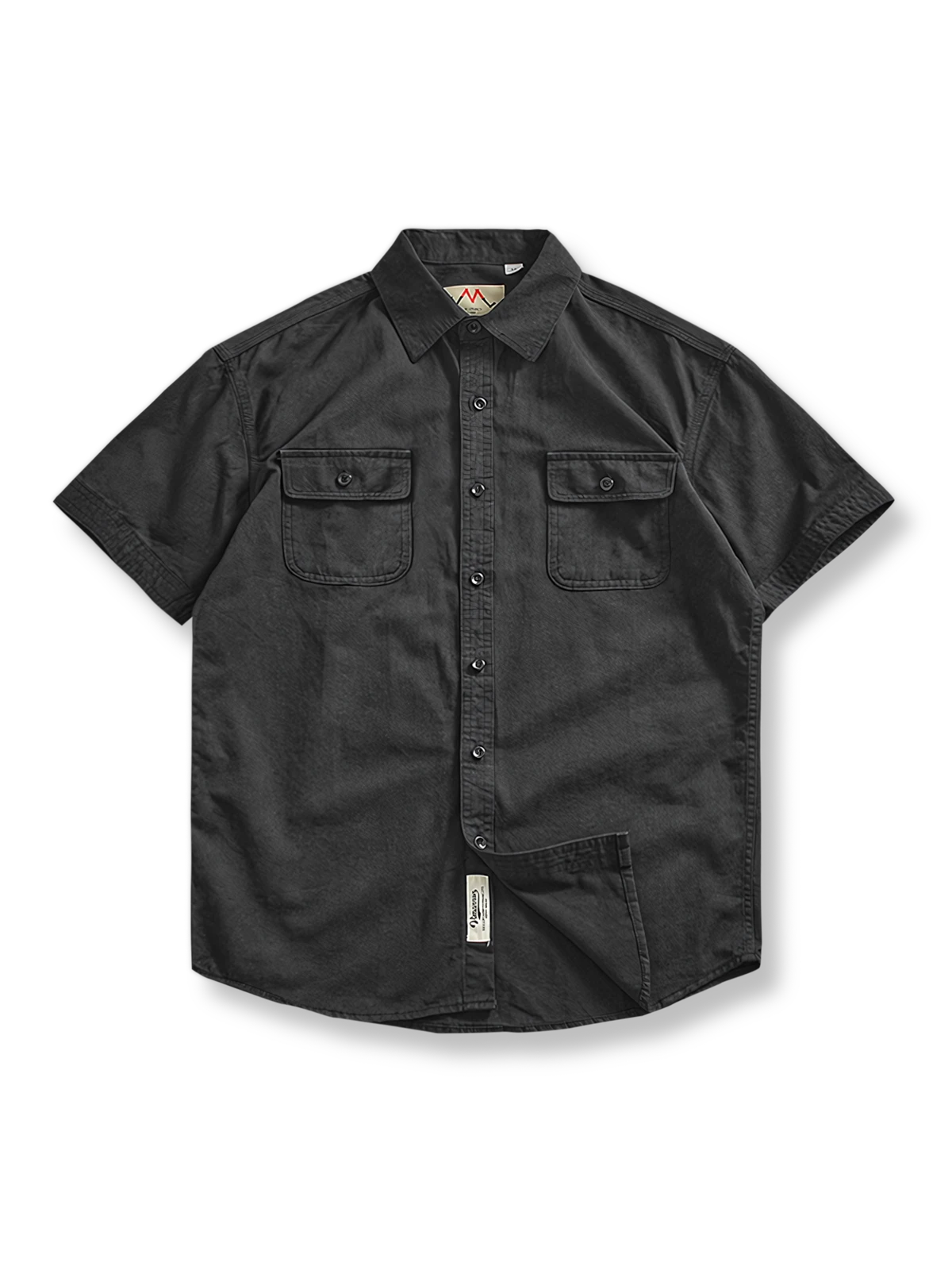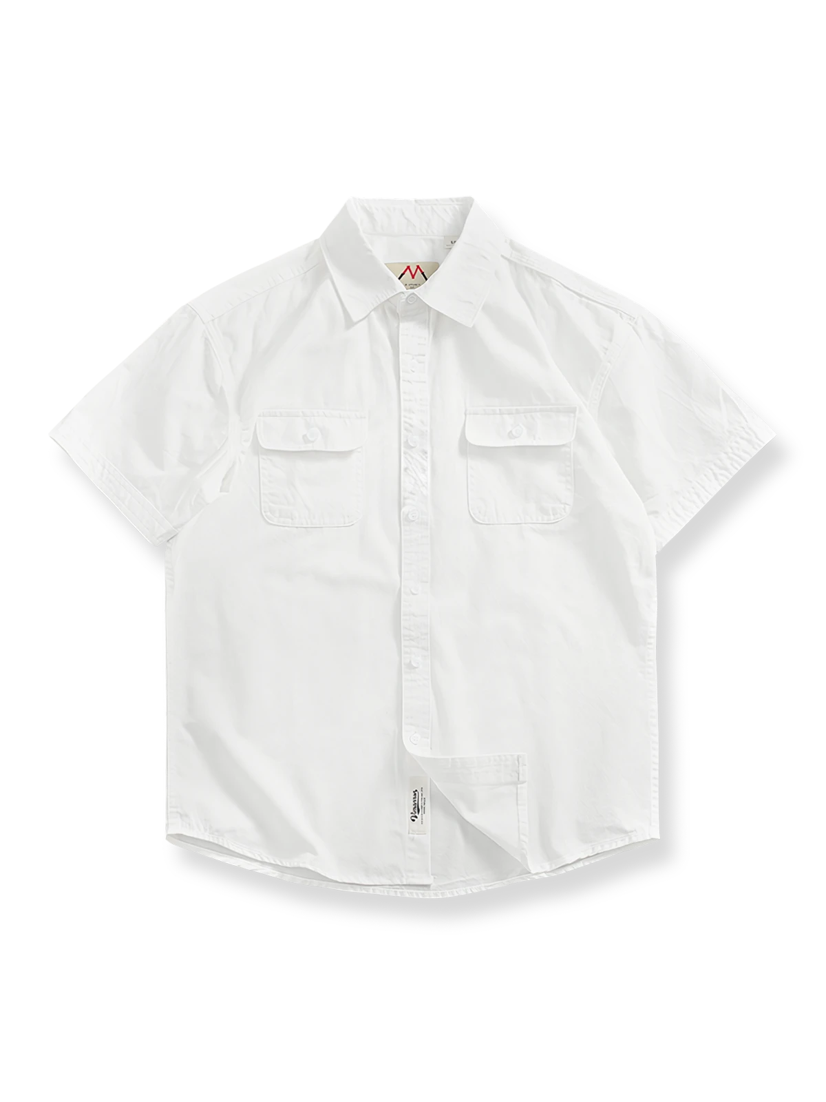 この半袖ワークシャツは、20世紀中頃のブルーカラーワーカーからインスピレーションを受けたデザインで、耐久性と機能性に焦点を当てています。シンプルで洗練されたディテールの処理が特徴で、現代のカジュアルな装いにも適応します。