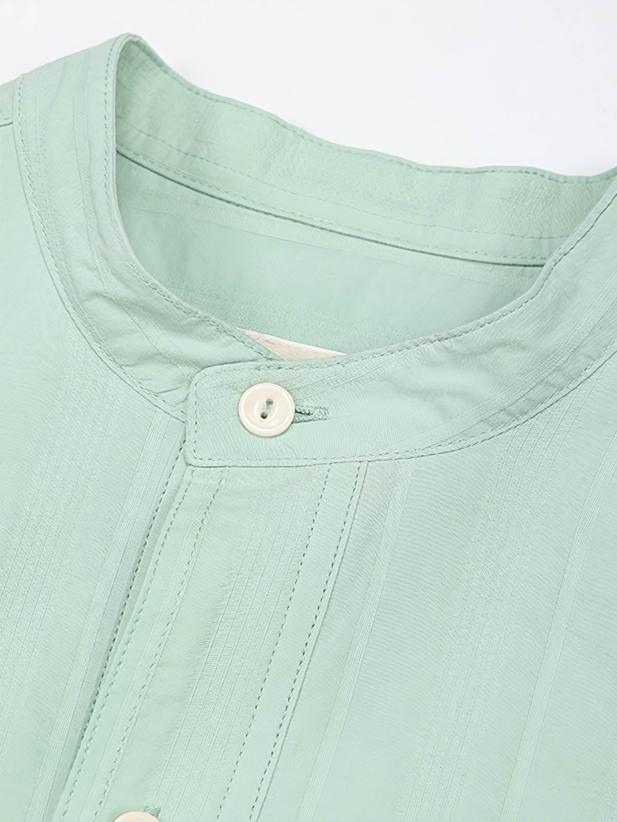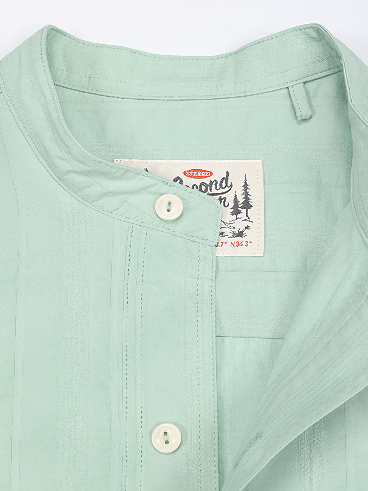 このクルーネック オーバーサイズ ワークシャツは、クラシックなワークスタイルとクルーネックデザインを組み合わせています。100%コットン素材を使用しており、軽量でドレープ性に優れ、非常に快適な着心地を提供します。ユニークな色織りストライプと微妙なシワ感が、シャツに優雅な光沢とヴィンテージ感をプラスしています。ルーズフィットのシルエットはさまざまな体型にフィットし、フロントの大きなアコーディオンポケットは伝統的なワークシャツからインスパイアされたデザインで、実用性とデザイン性を兼ね備えています。カジュアルパンツやジーンズと合わせることで、リラックスしたナチュラルなヴィンテージスタイルを演出します。