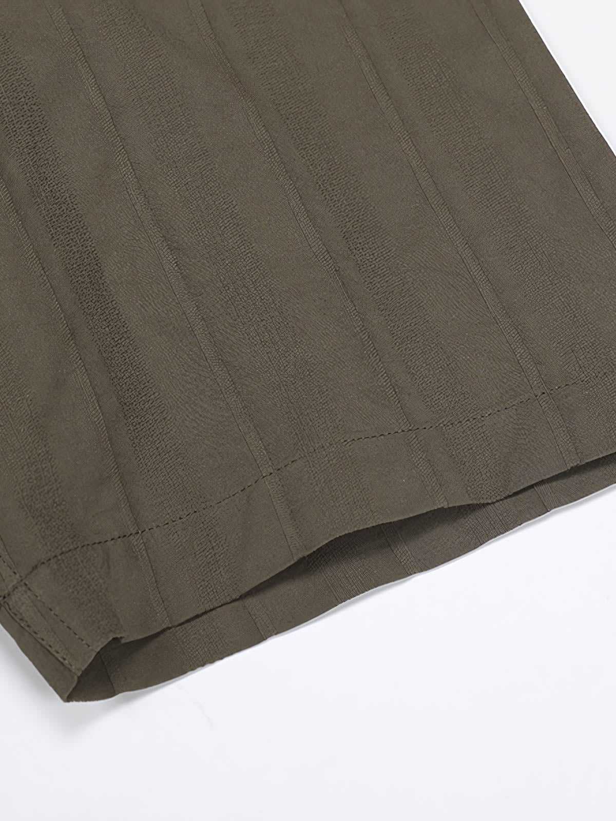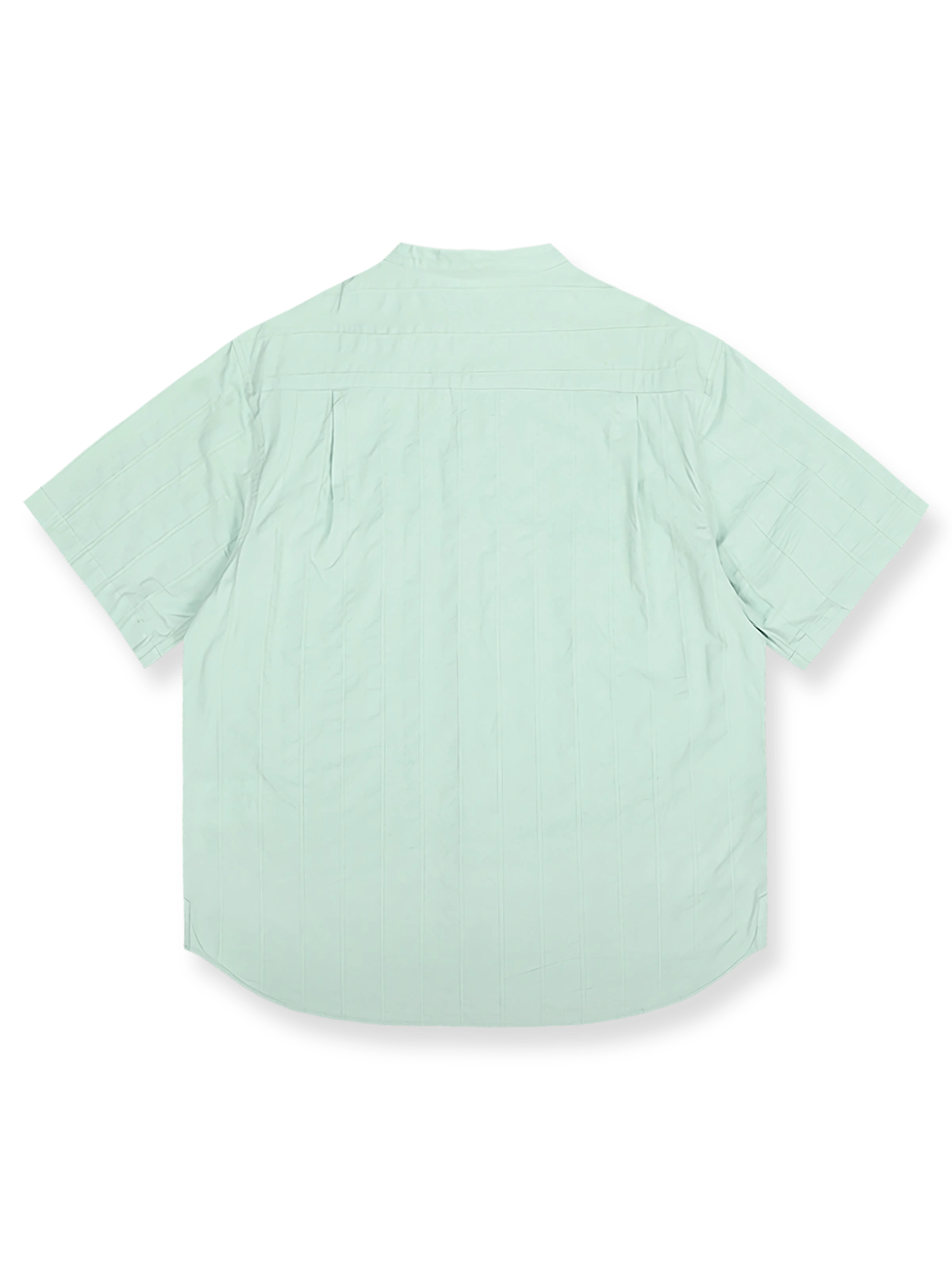 クルーネックデザインとワークウェアの要素を融合させた、夏の日常に適したルーズフィットの半袖シャツ。