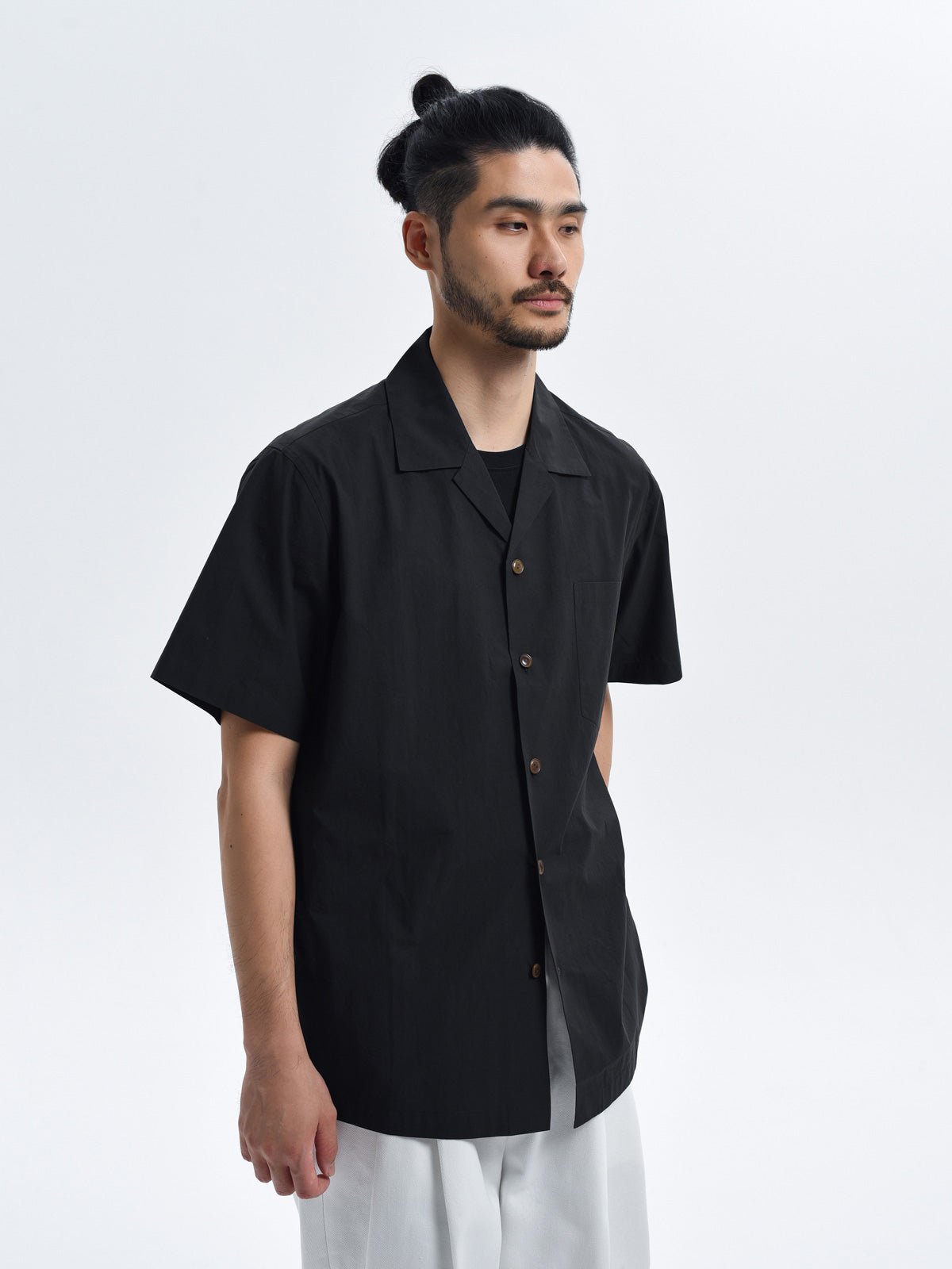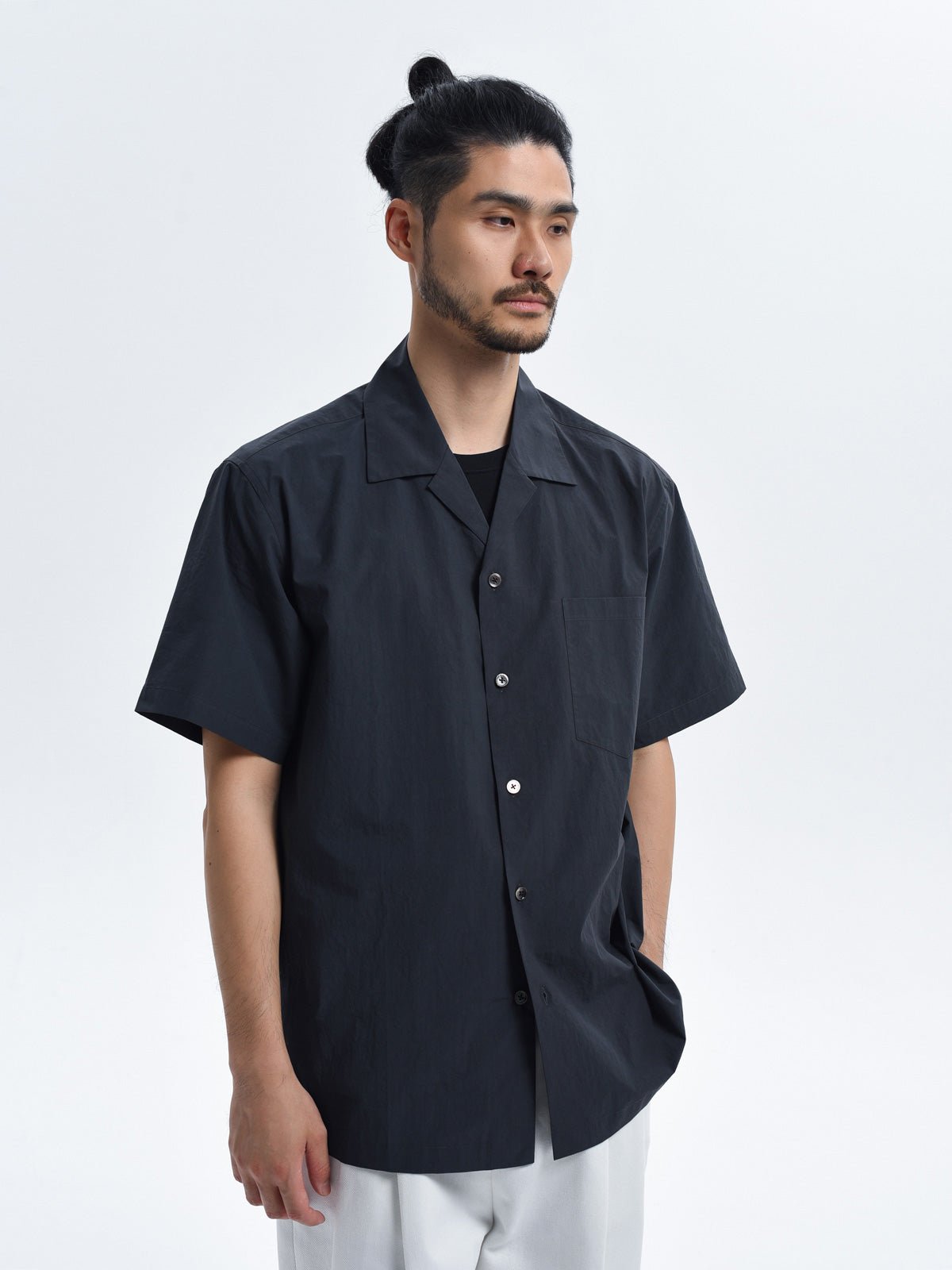 このルーズフィットのキューバカラー半袖シャツは、100%コットンの50番手ポプリン素材を使用しており、軽量で夏に最適な着心地です。クラシックなキューバカラーのデザインは、シンプルで爽やかな印象を与えます。シャツのシルエットはルーズフィットで、快適な着用感を提供し、どんな体型にもフィットします。高品質の素材は、丁寧な裁断と縫製により、一枚一枚のシャツの快適性と耐久性を確保しています。襟元はオープンカラーで、リラックスしたスタイルを演出します。日常のカジュアルスタイルからリゾートまで、幅広いシーンで活躍します。