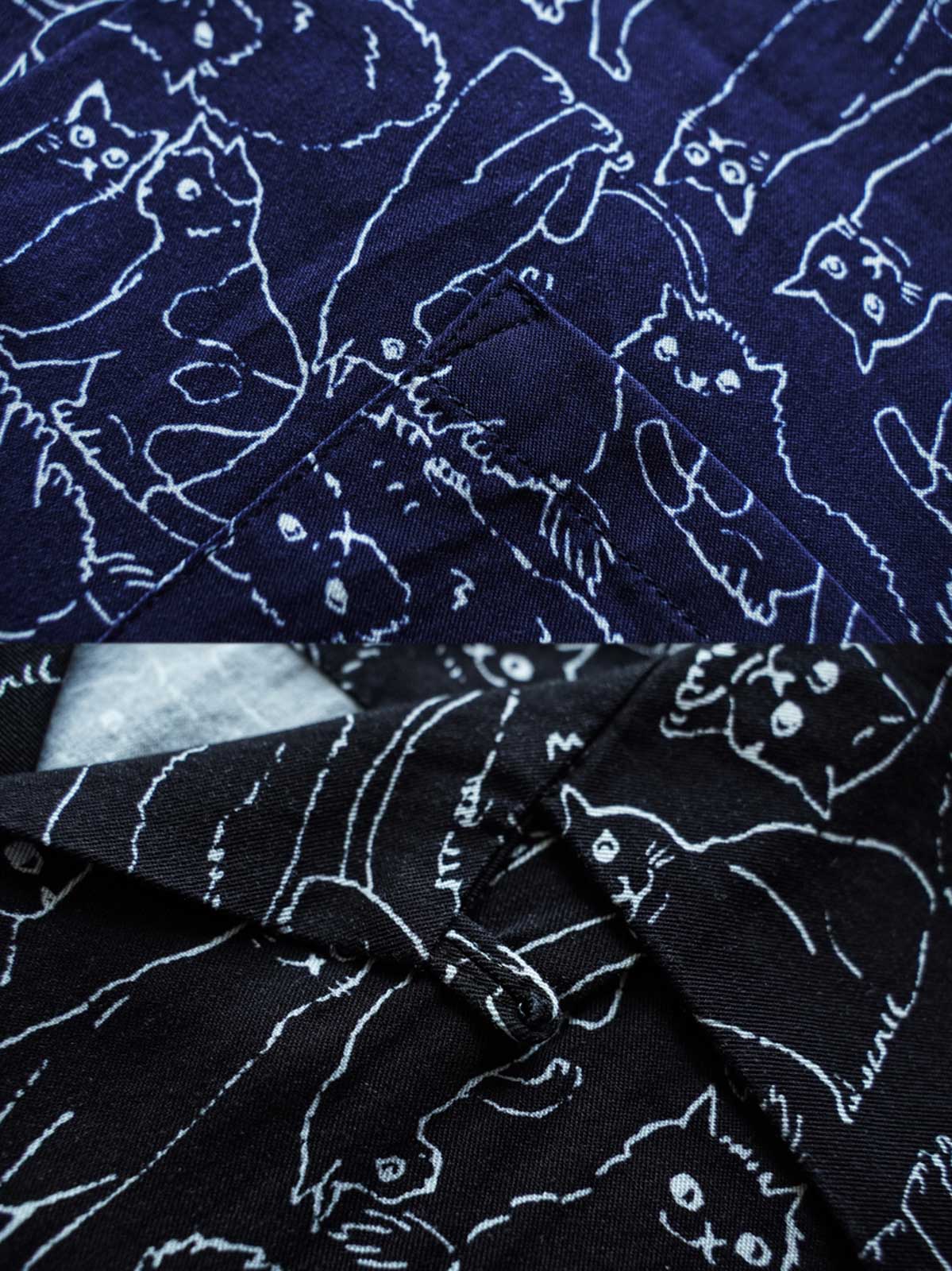 この猫柄半袖シャツは、手描き風の猫柄が描かれており、生き生きとしていて魅力的です。ゆったりとしたハワイアンシャツのシルエットで、暑い夏の日にぴったりのデザインです。素材にはテンセル繊維が使用されており、涼感を与え、快適で涼しい着心地を提供します。ボタンはココナッツシェルで作られており、独特の色合いと質感が加わり、シャツに美しさを添えています。このシャツは、レトロな風合いとモダンなスタイルを兼ね備えた、夏の理想的な選択です。