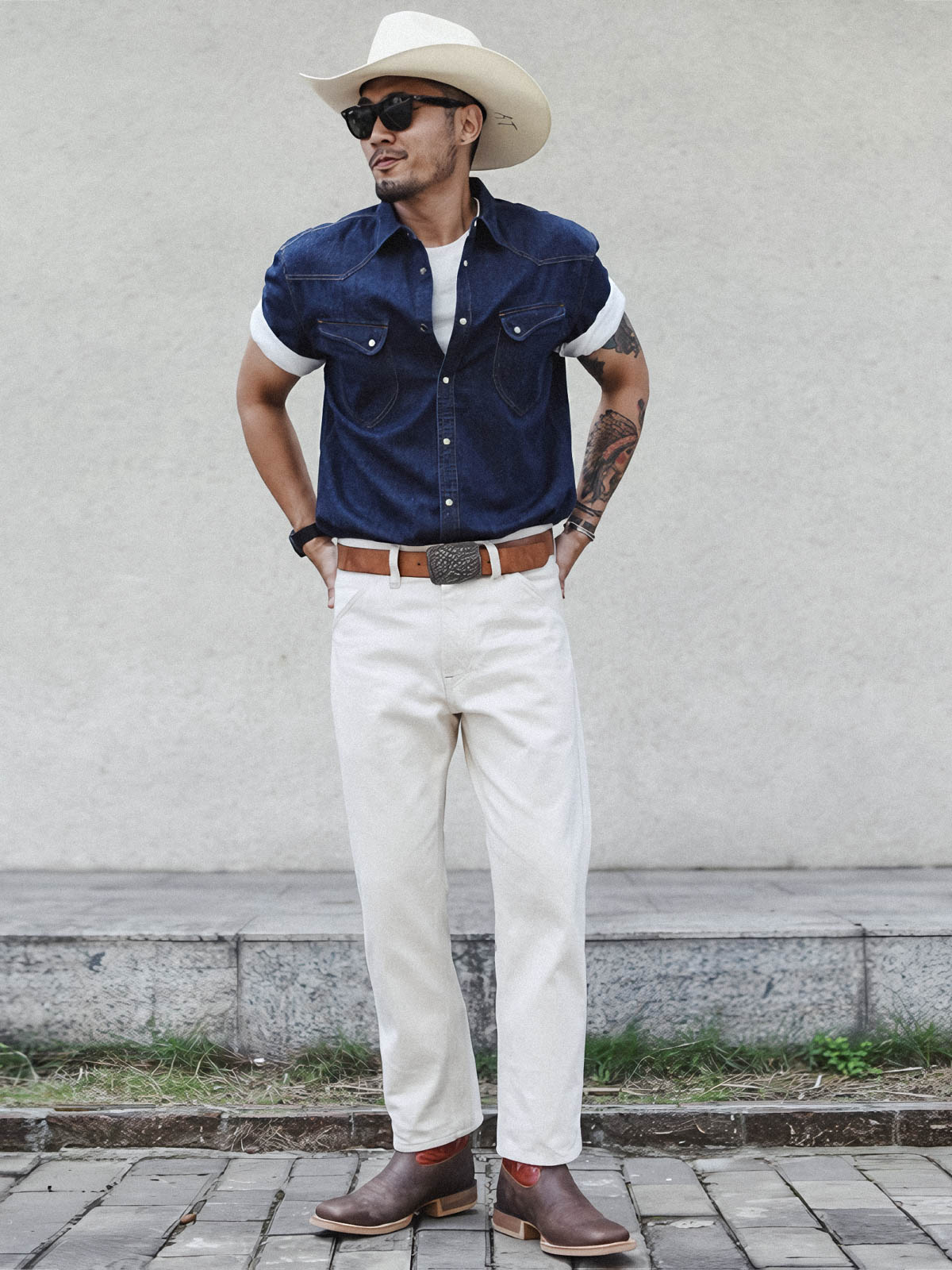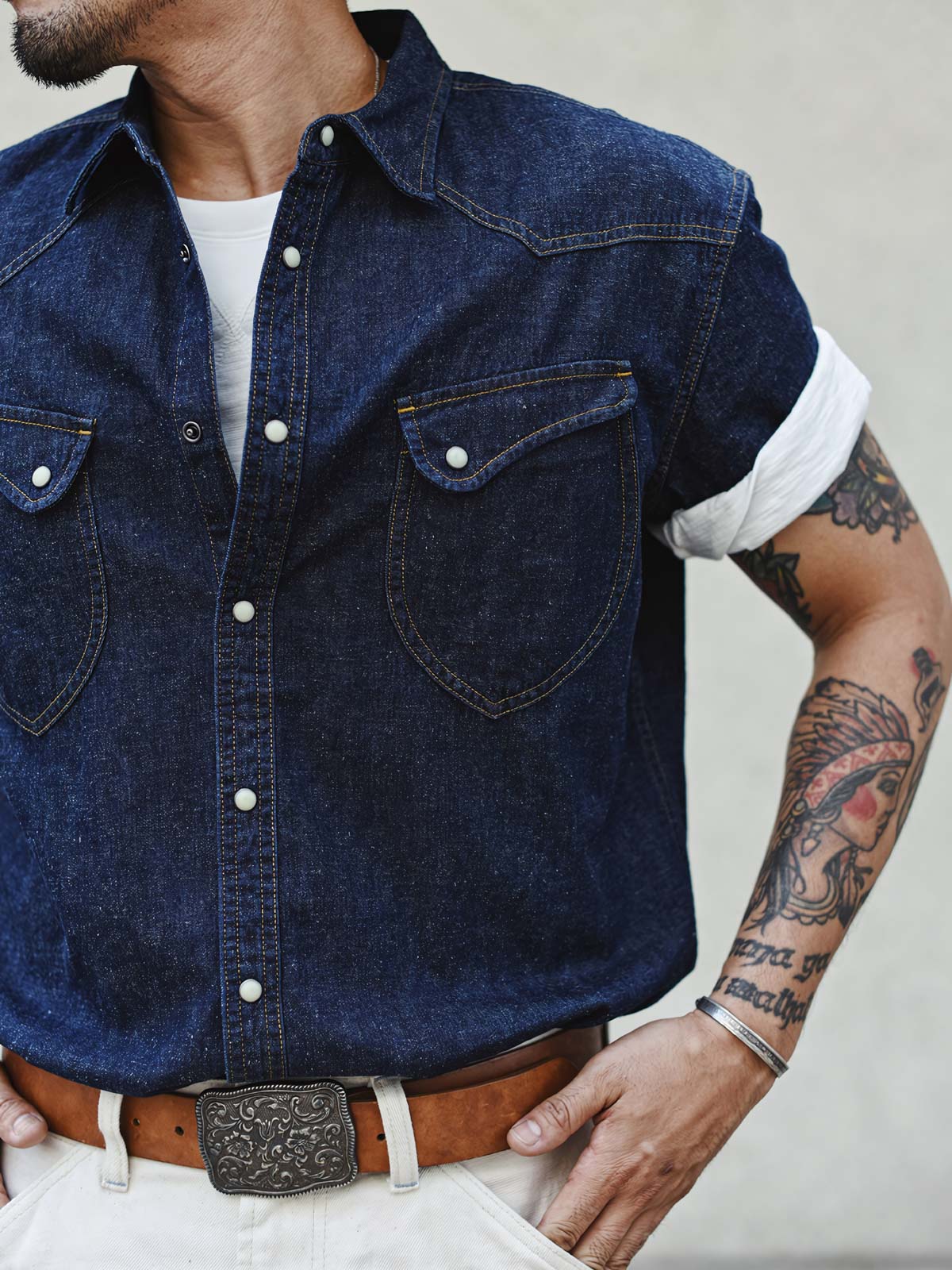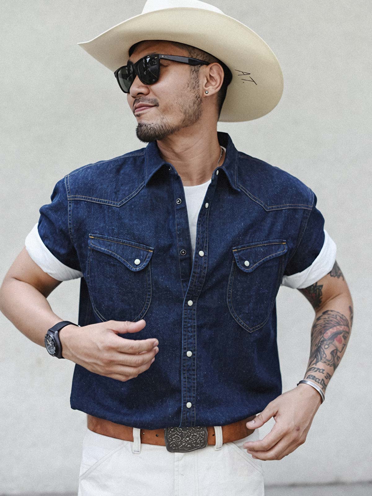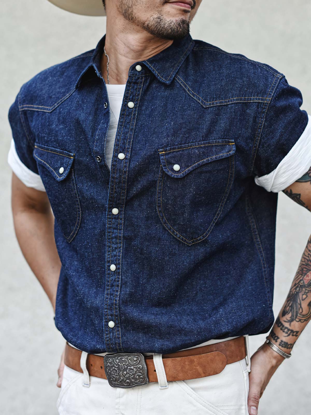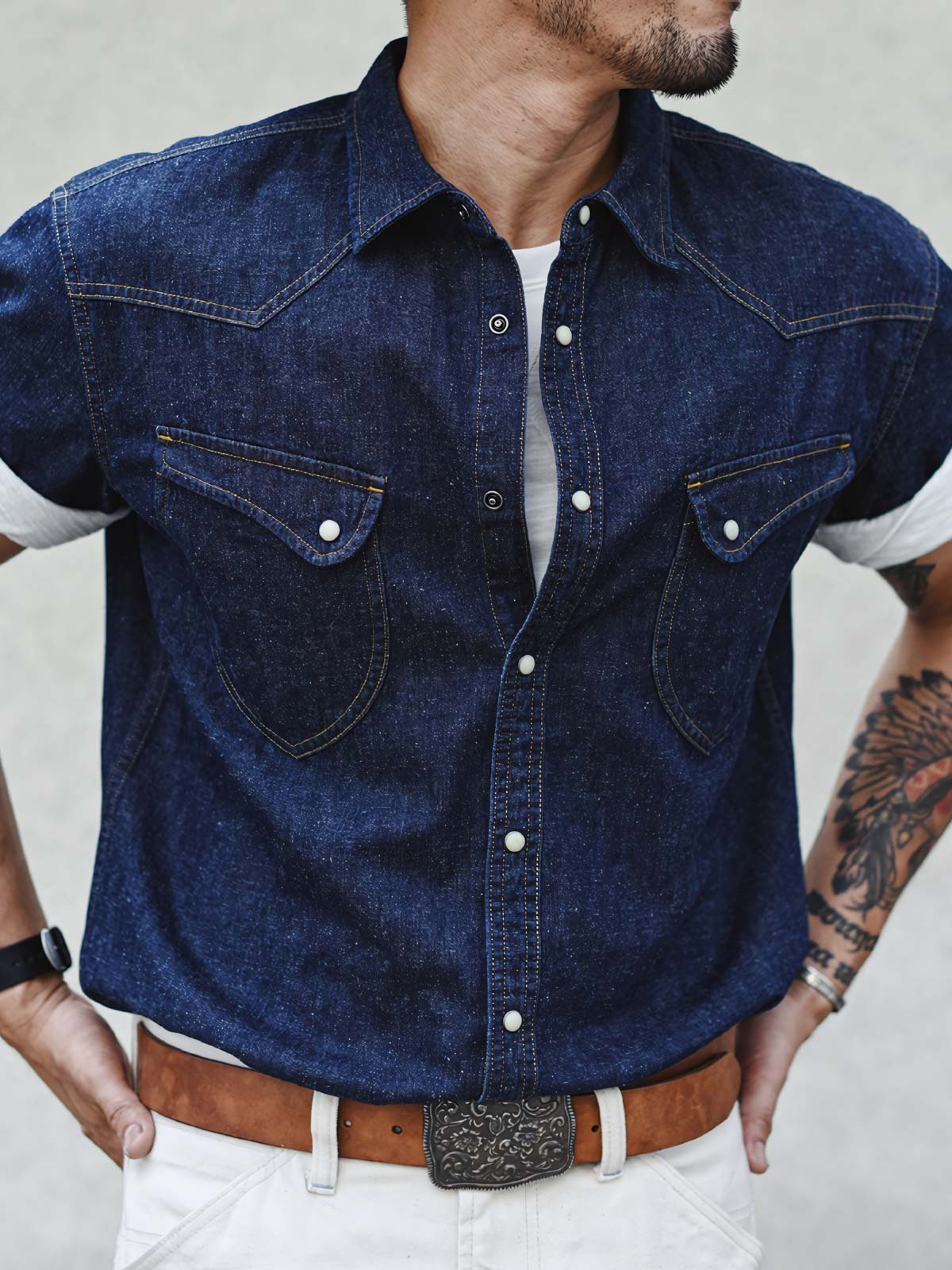 このデニムシャツは、80.3%のコットンと19.7%のリネンを使用した特注生地で、古風な質感を持っています。スナップボタンのデザインと西部風のスタイルがレトロな雰囲気を引き立てます。インディゴ染めはウォッシュ加工が施されており、着用するうちに自然な色落ちが生じ、独特のヴィンテージ感が増します。新しい短袖デザインは、お客様のフィードバックに基づいて着丈を適度に延長し、より良いカバー力を提供します。このシャツは、独特のテクスチャーとレトロなデザインで、夏に快適でおしゃれな着用体験を提供します。