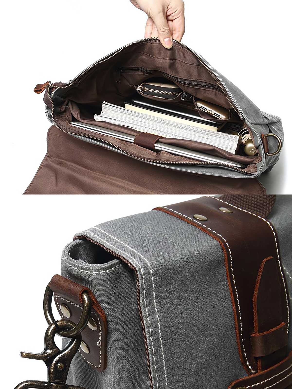 このブリーフケースは、記憶に残るキャンバスの質感と最適な手触りを実現するために、キャンバスの表面にワックス加工が施されています。使用しているうちに、ワックス加工されたキャンバスの表面には深浅さまざまな傷が蓄積されていきます。