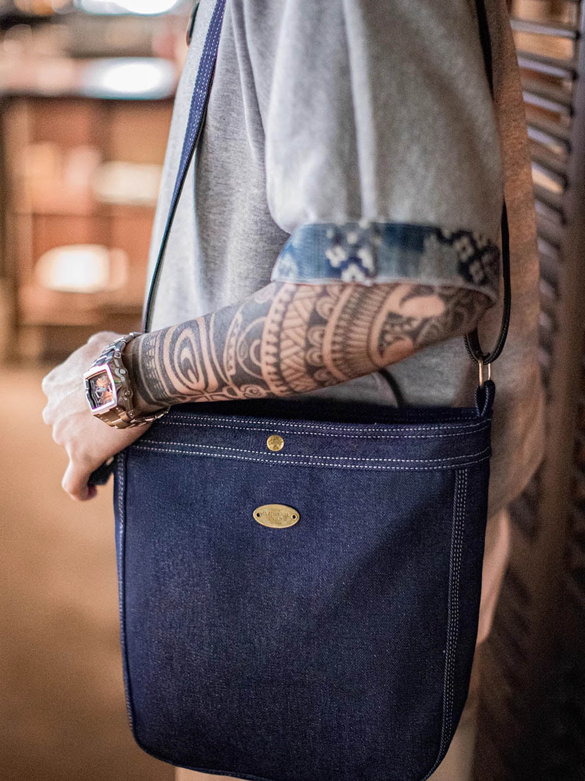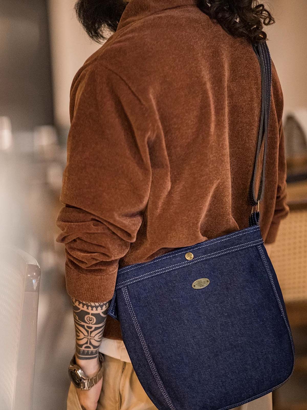 1940年代のアメリカンスタイルをイメージしたフラップなしデニムメッセンジャーバッグ。