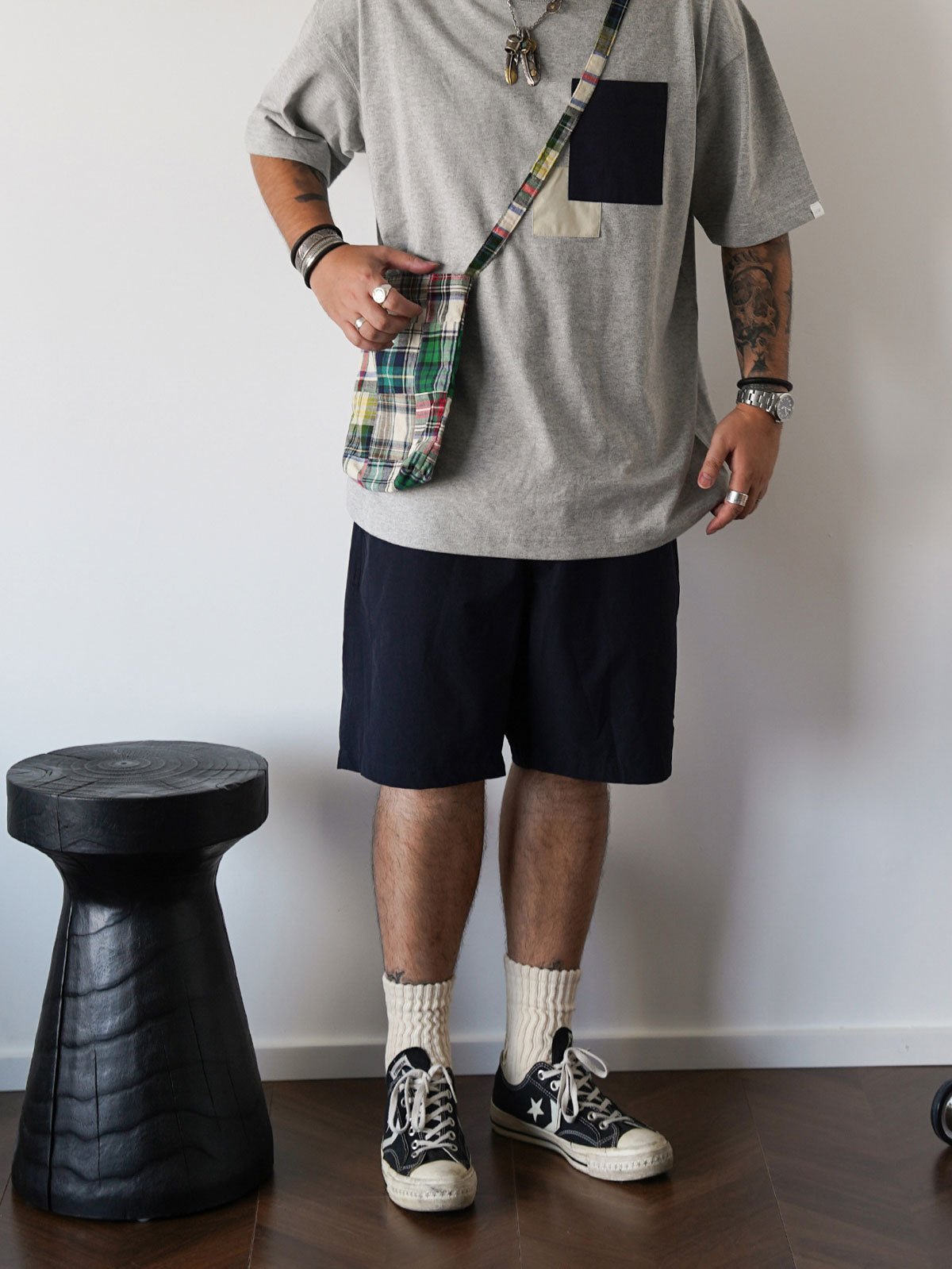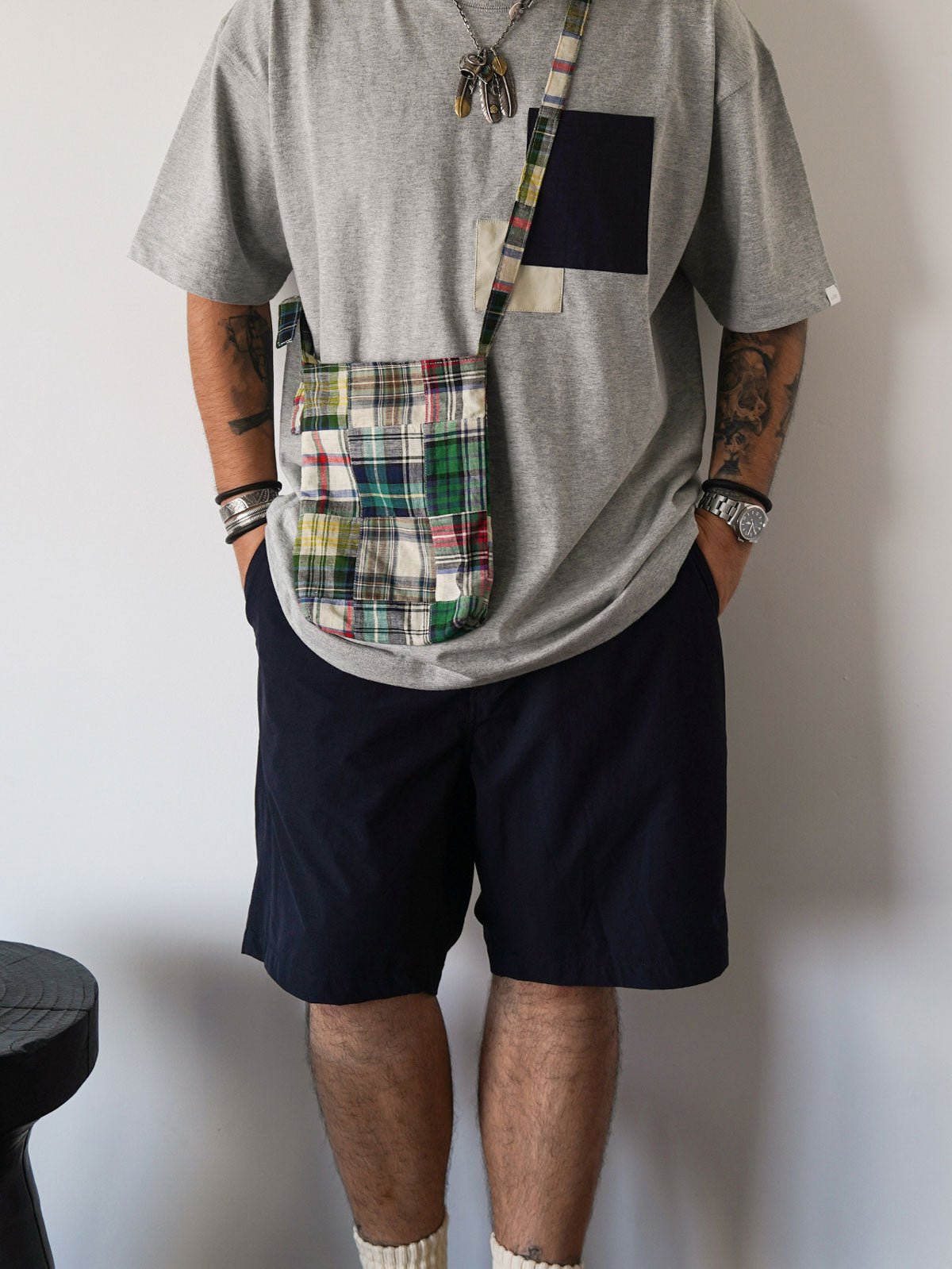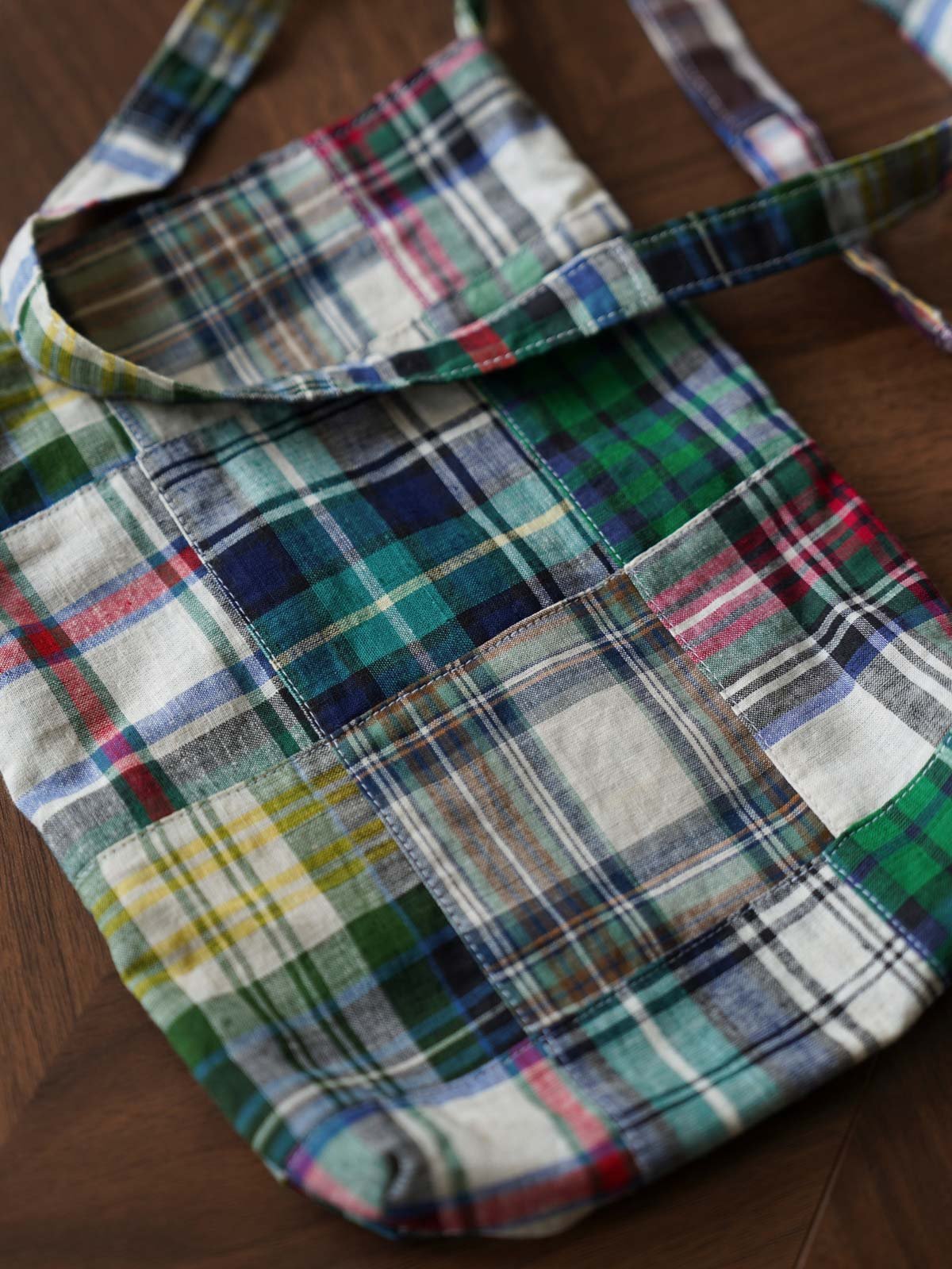 手作りのチェック布を使用したシンプルなデザイン、誰にでも使いやすいレトロなショルダーバッグ。