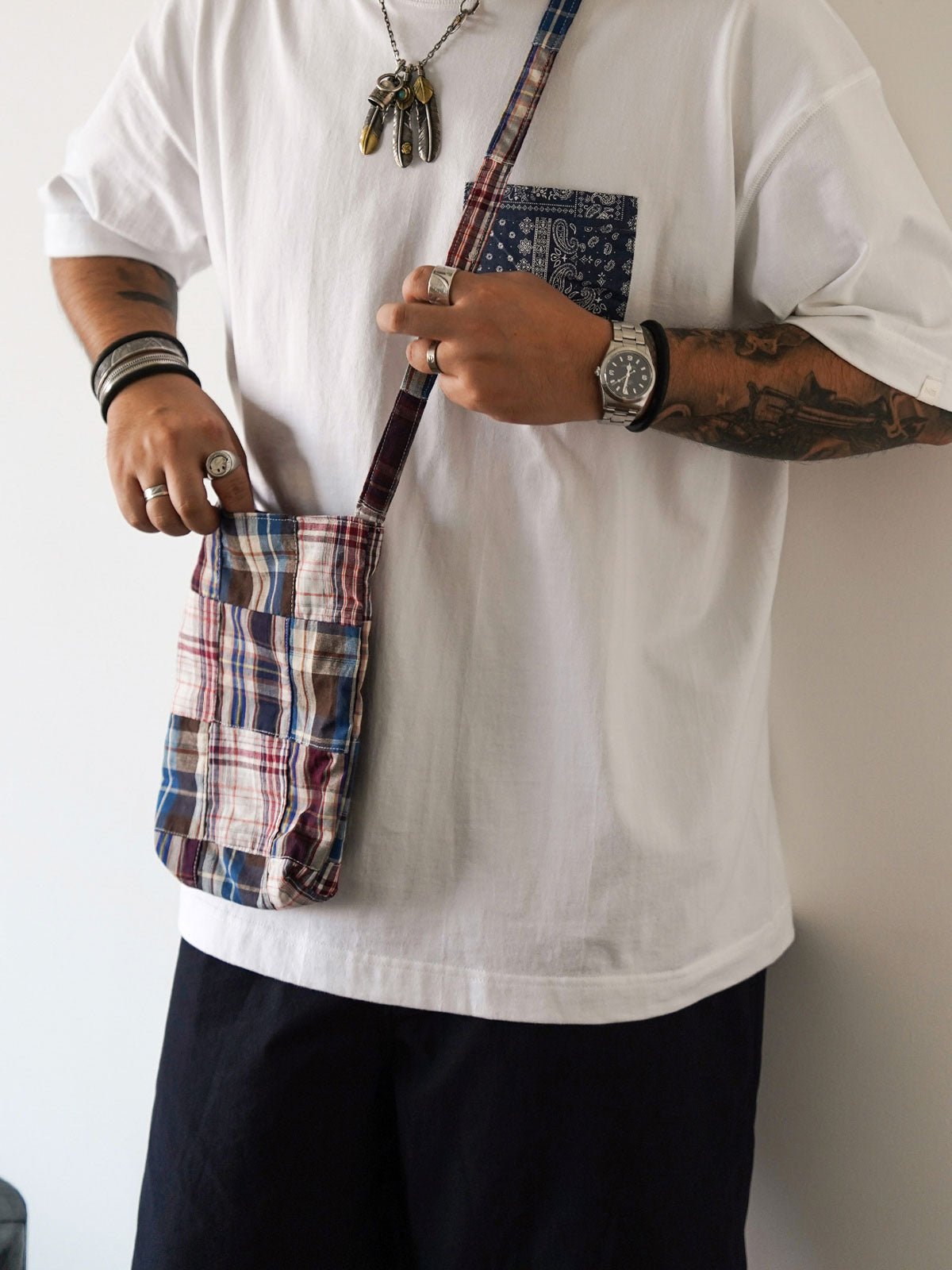 このショルダーバッグは、手作業でパッチワークされたチェック布を使用し、手作りの裁断と縫製で高級感があります。グリーン系とパープル系の2色展開で、ナチュラルなボヘミアンレトロスタイルを演出します。シンプルなデザインで軽量化され、内部にはポケットやファスナー、ボタンはなく、ショルダーストラップは自由に結んで長さを調節できます。男女問わず、子供でも使いやすいデザインです。コーディネート例として、シンプルなカジュアルウェアと合わせて、日常のお出かけやアウトドア活動に最適なアクセサリーです。