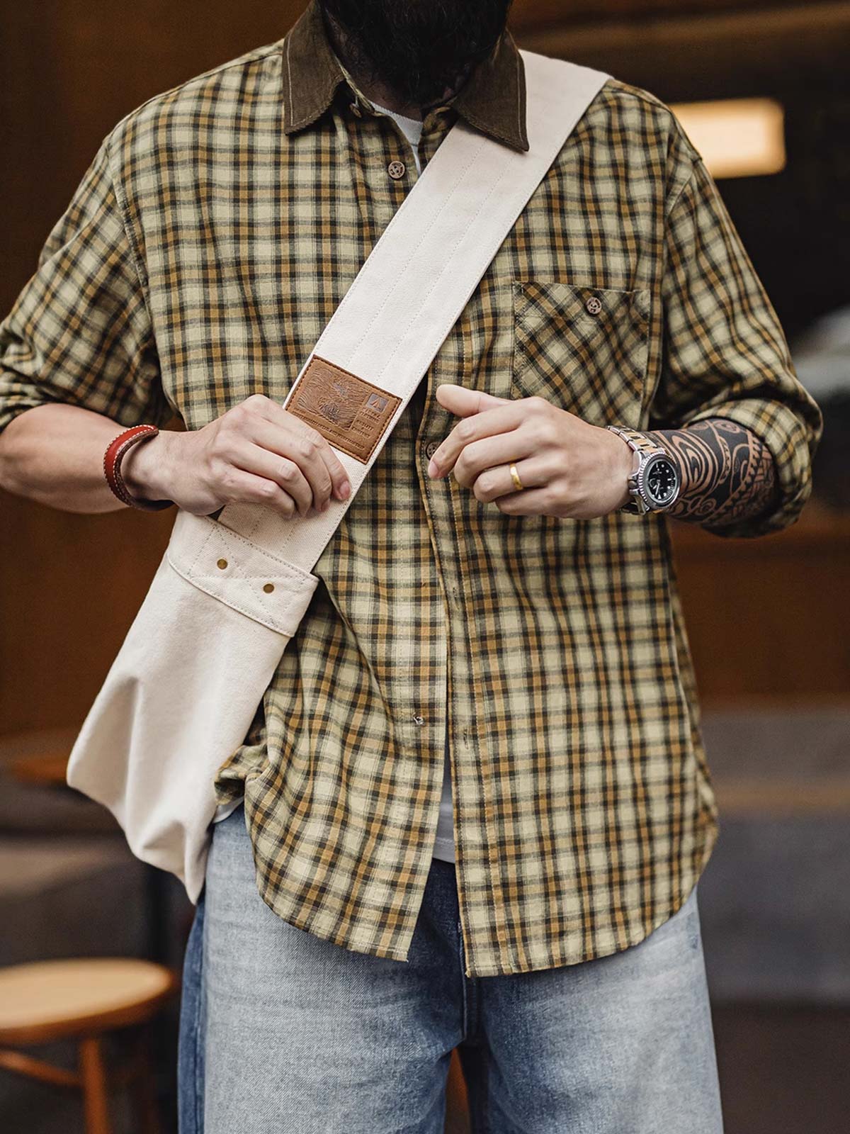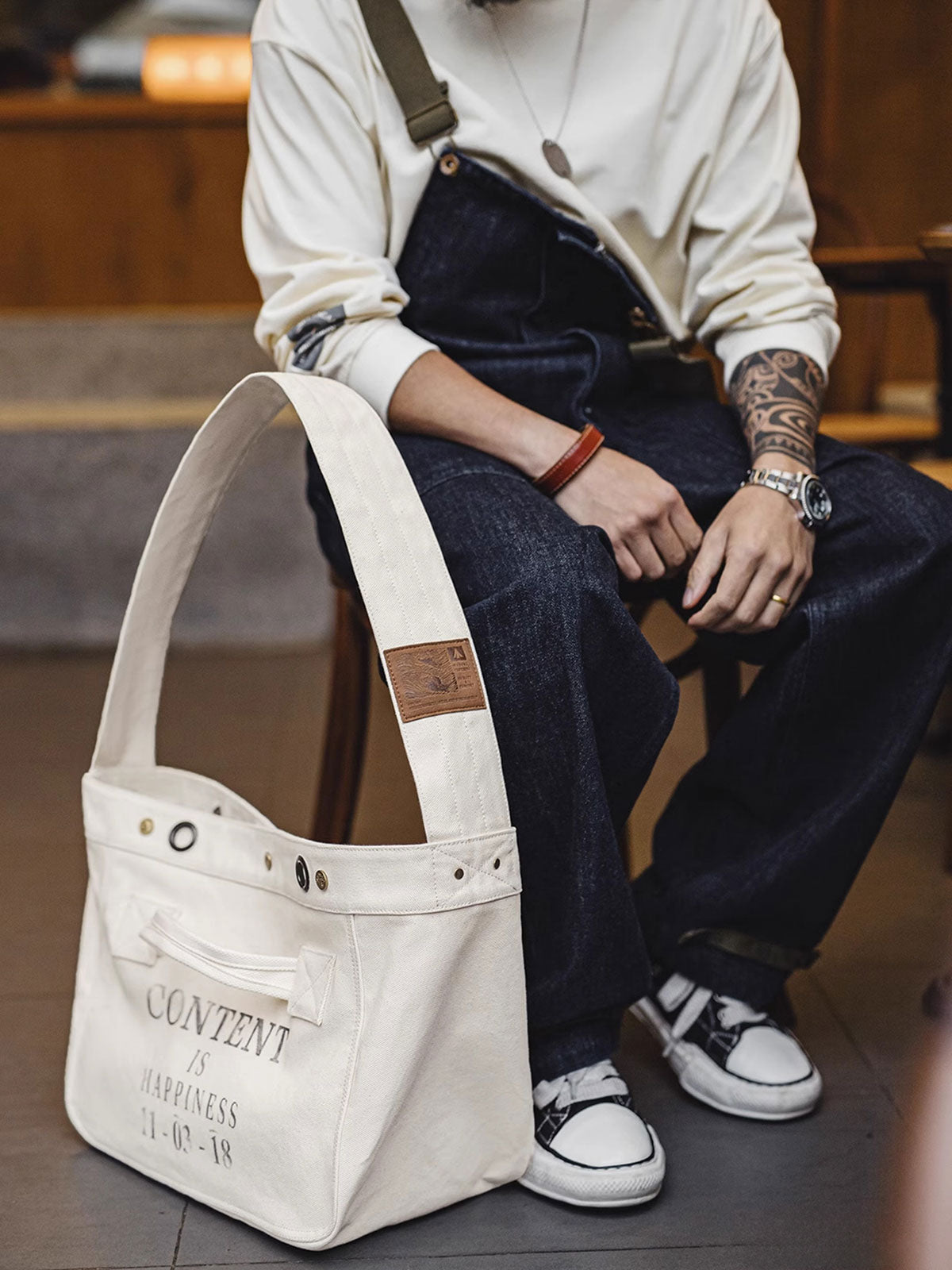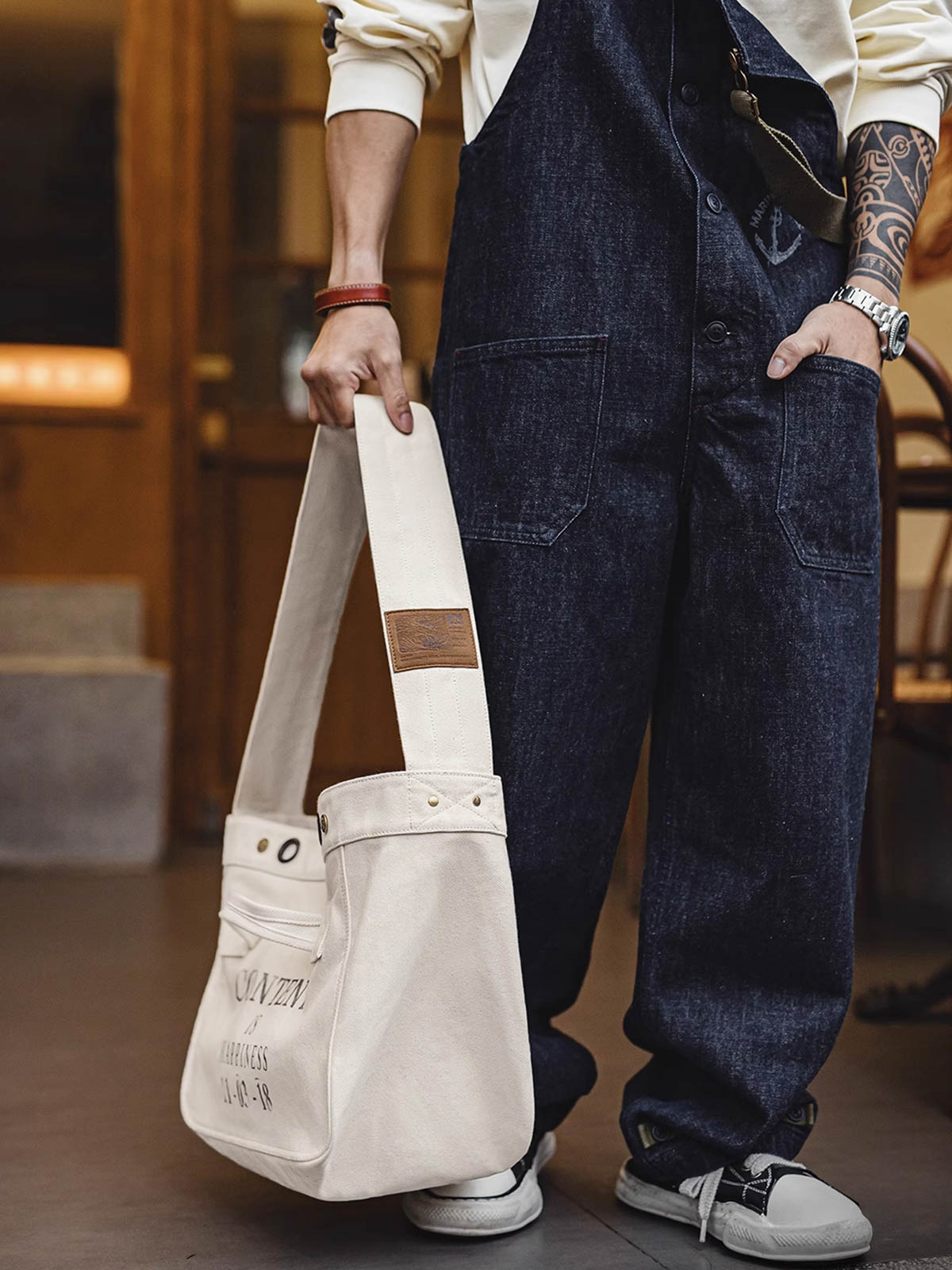 19世紀のニュースボーイ風デザインを復刻し、レトロな雰囲気と現代的な実用性を融合させたキャンバスメッセンジャーバッグ。
