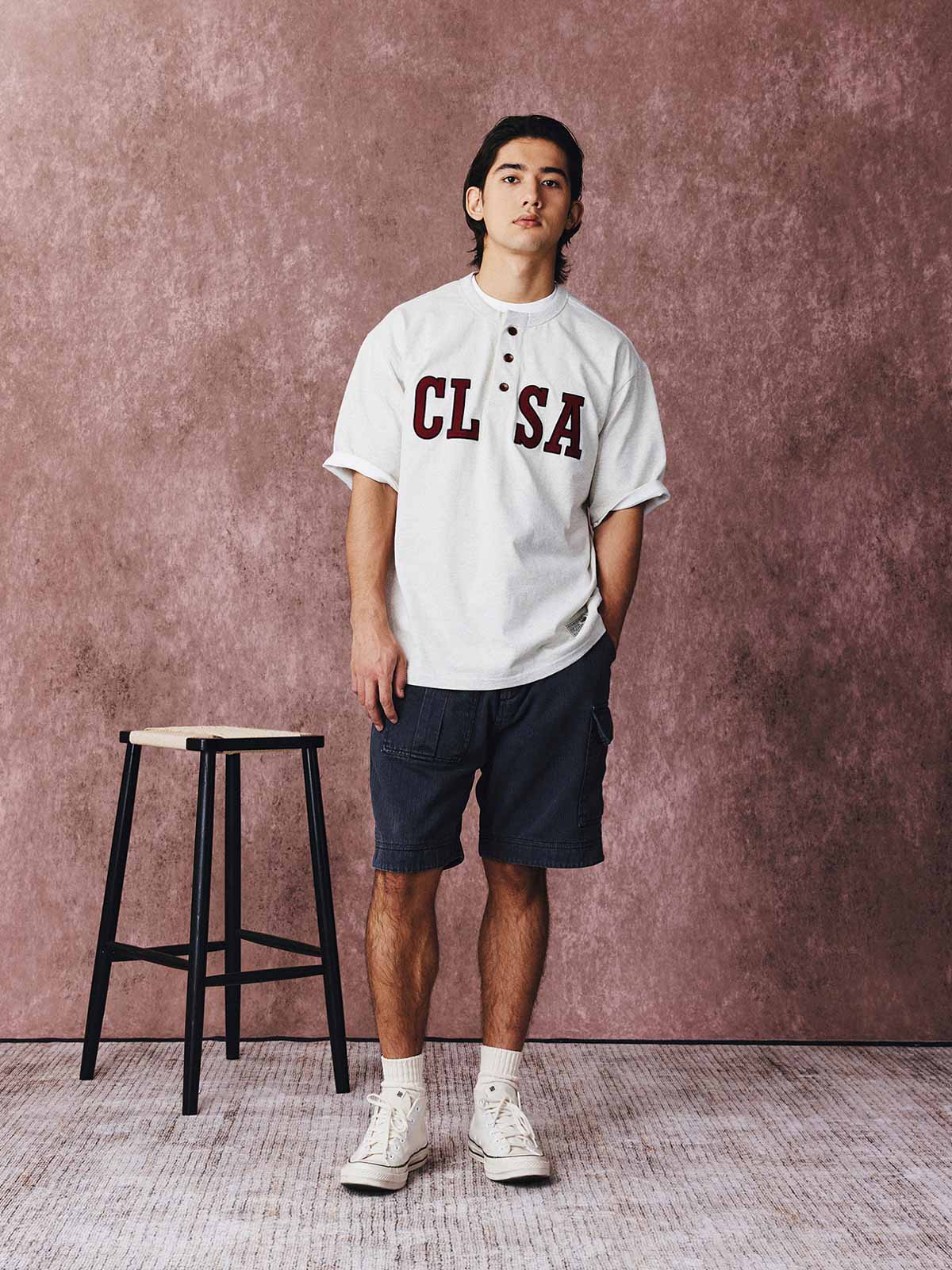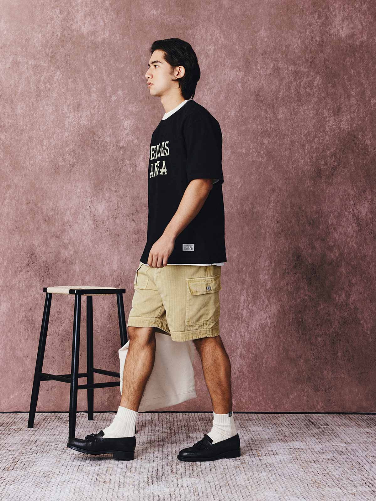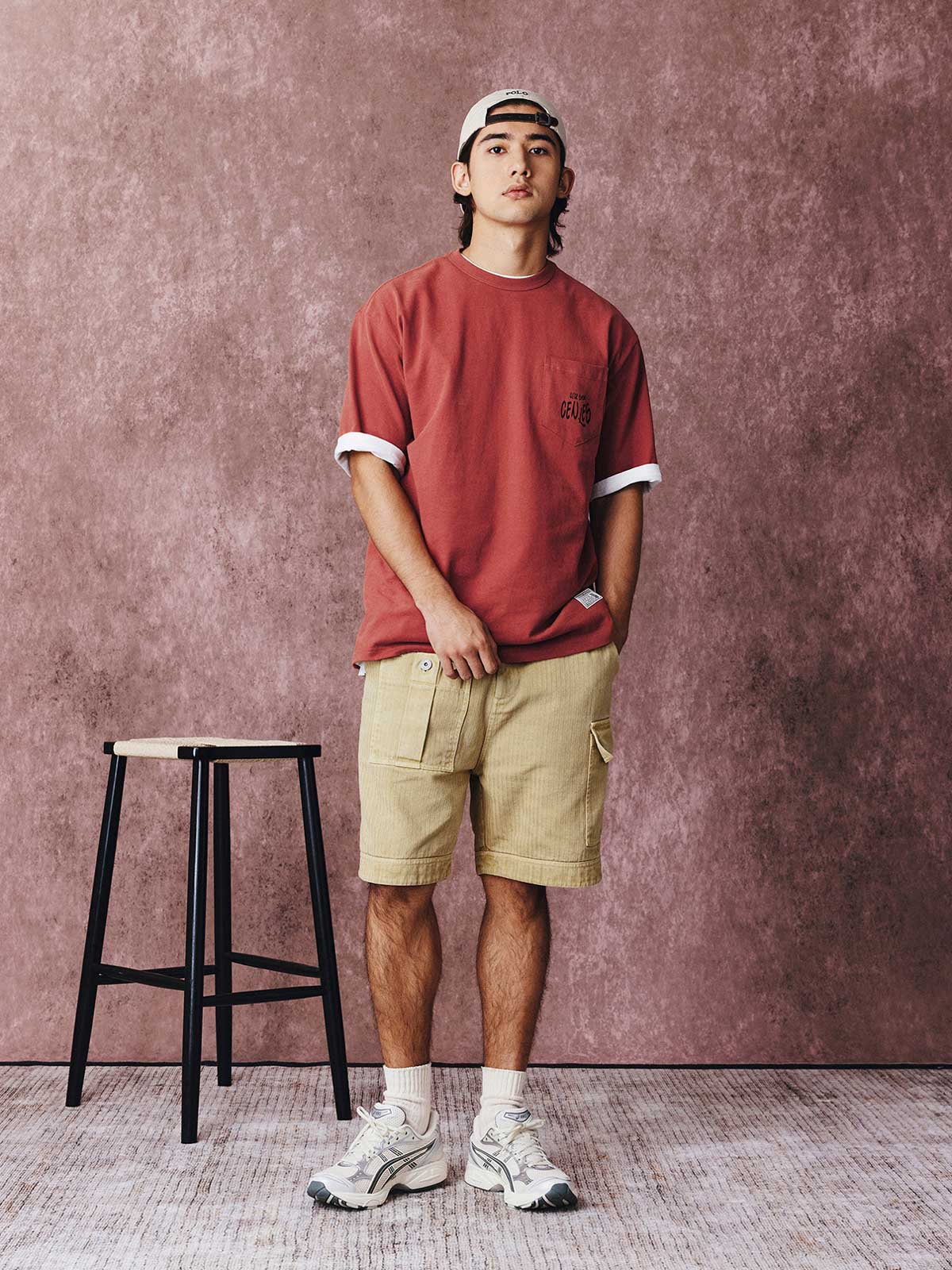 ゆったりとしたストレートカットデザインで、280Gの全綿ヘリンボーン生地を使用。この生地は立体的な質感を持ちながらも、柔らかく快適な着心地とわずかなドレープ感を提供します。ウォッシュ加工により、さらに生地が柔らかくなり、形状が保持されています。