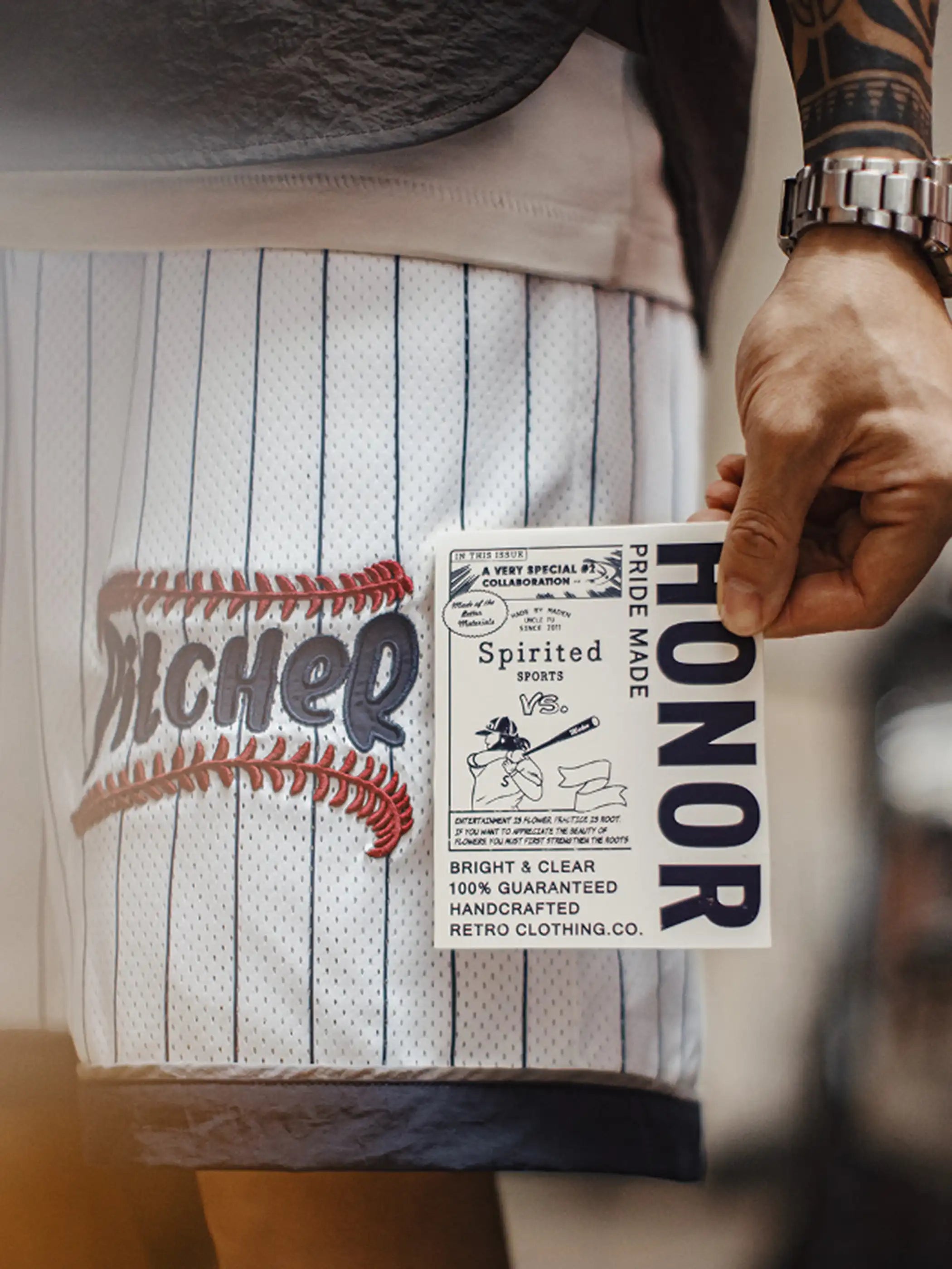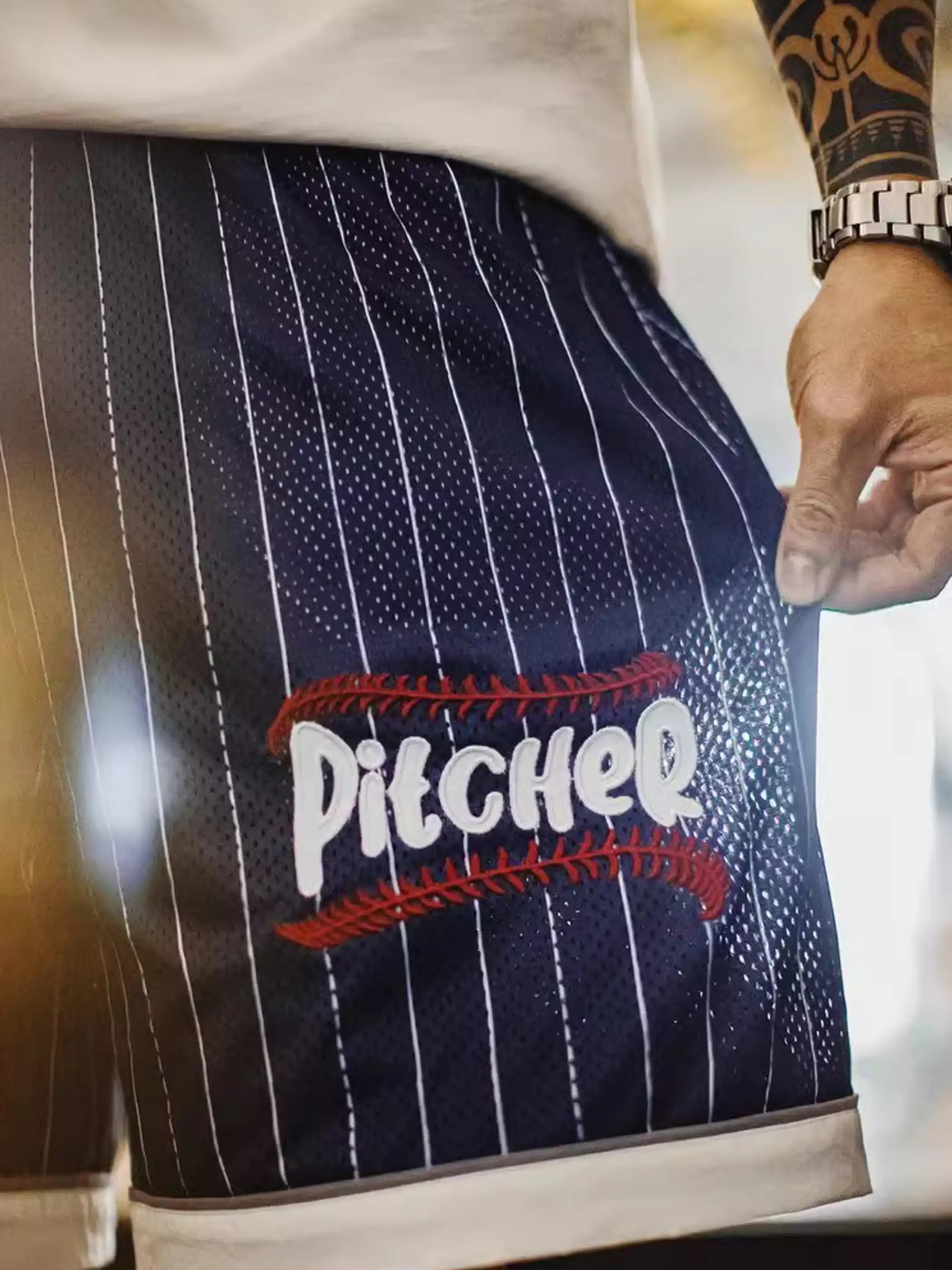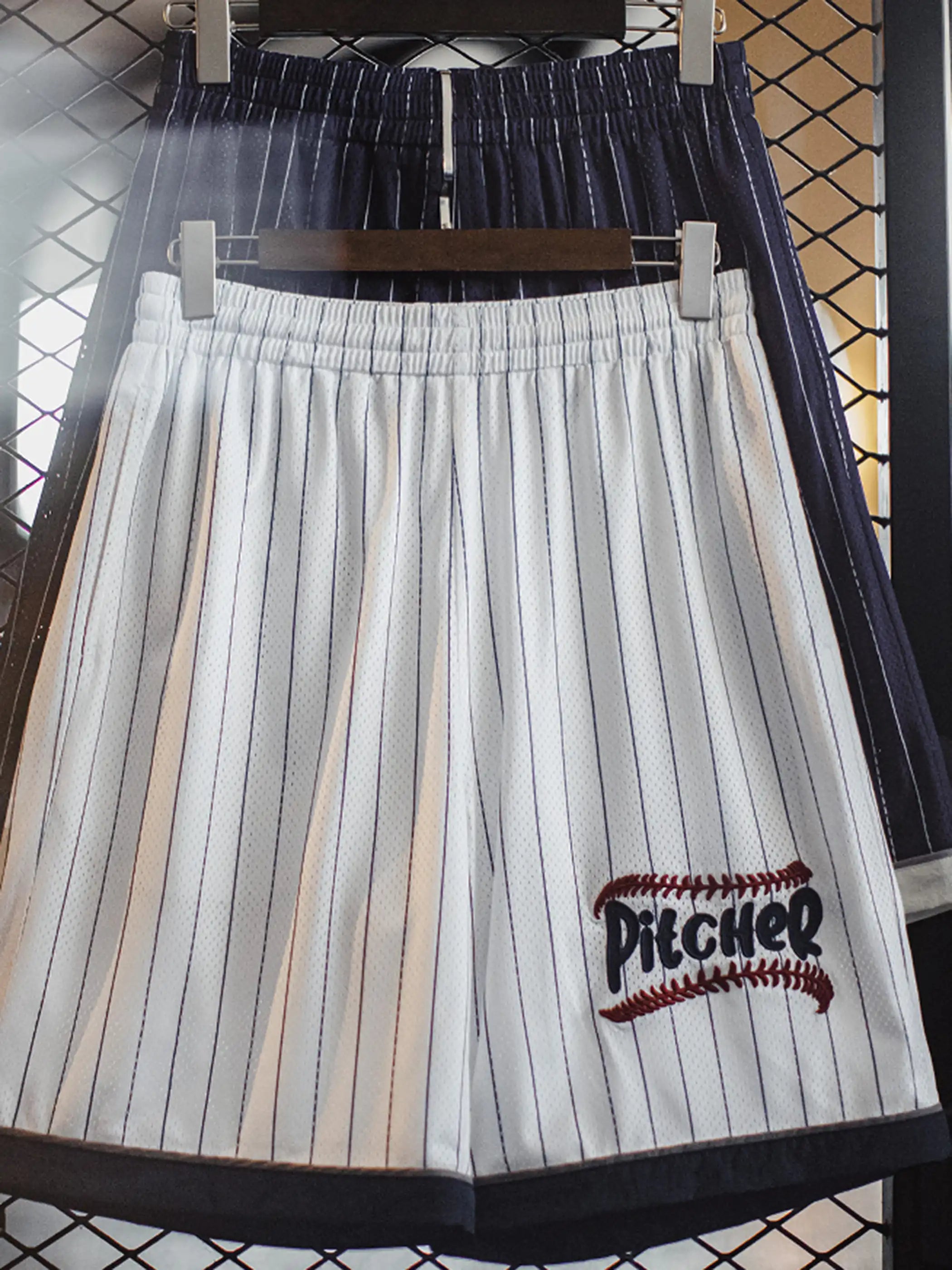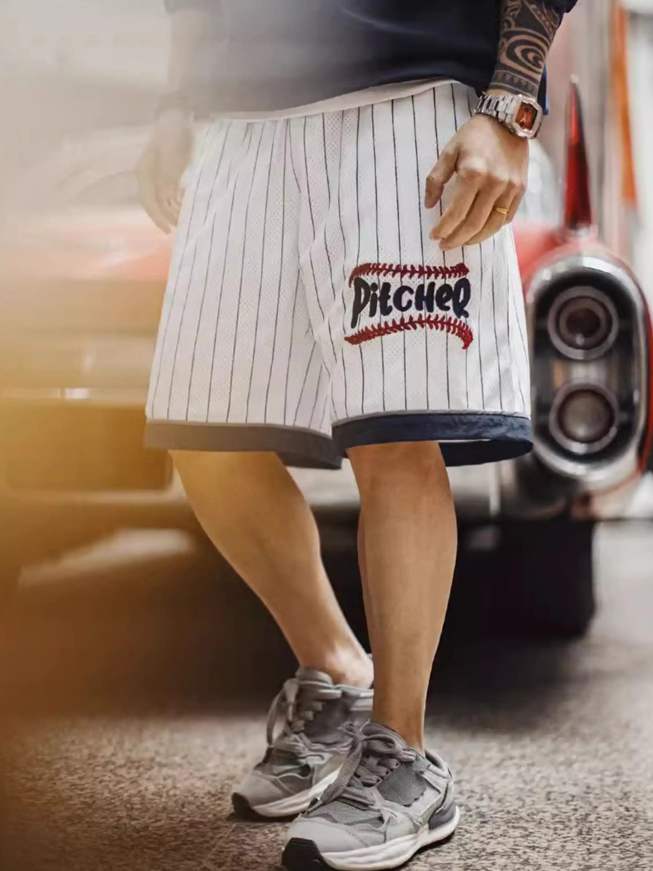 このショーツは、通気性に優れたメッシュ生地とベースボール調の刺繍が組み合わさり、夏のスポーティーなスタイルを快適に彩る一着です。