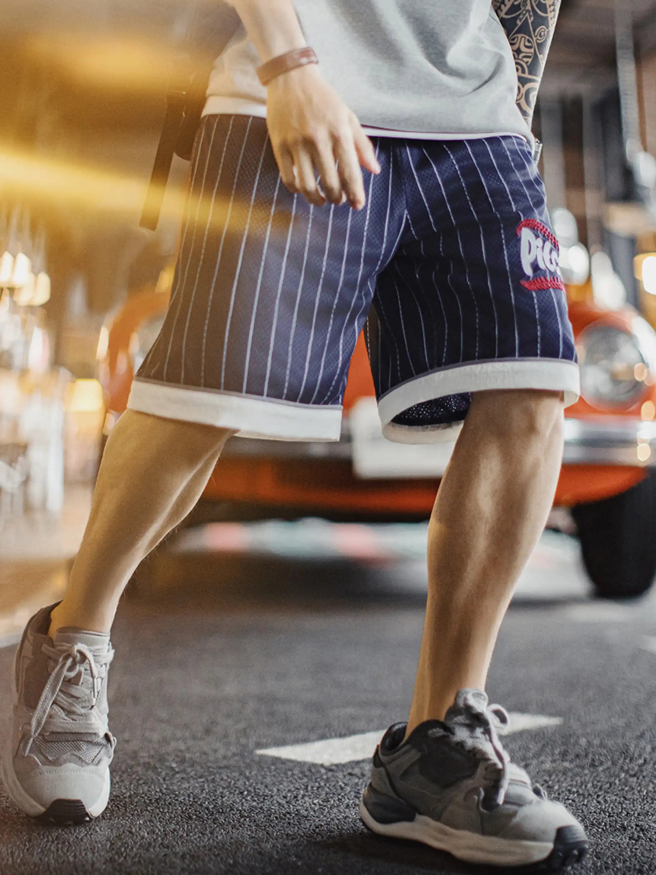 メッシュ構造の生地が全方位で空気の流れを促進し、蒸し暑い季節でも涼しさをキープ。ウエスト部分はゴム仕様でフィット感に優れ、動きやすさを確保しています。バスケットボールを思わせるゆったりシルエットに、ベースボールモチーフの刺繍をプラスすることで、アメリカンヴィンテージな雰囲気を演出。運動時だけでなく、タウンユースのカジュアルコーデにも取り入れやすいデザインです。