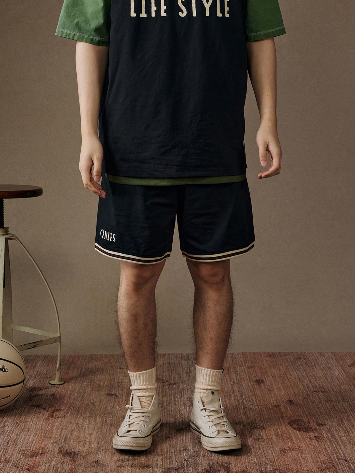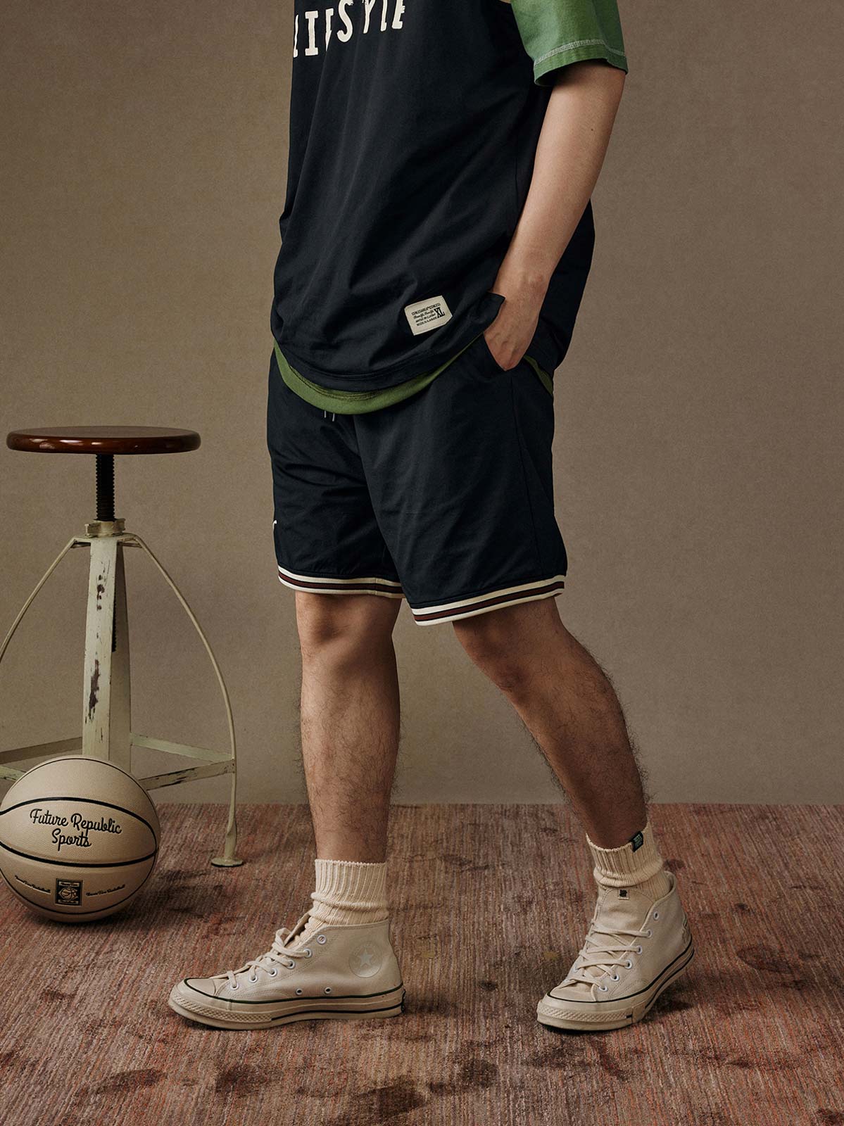 アメリカンヴィンテージ風の速乾通気性スポーツショートパンツ。