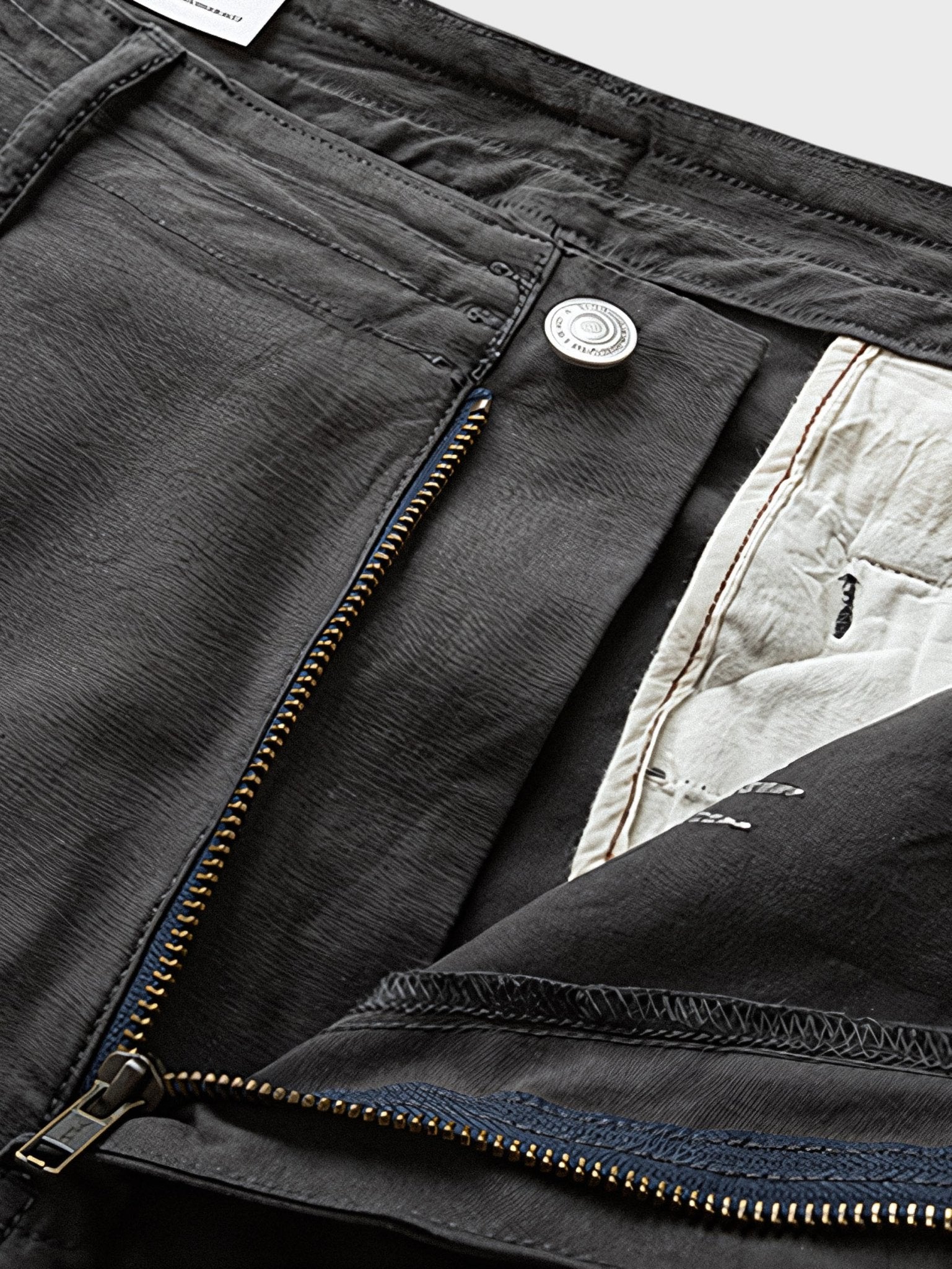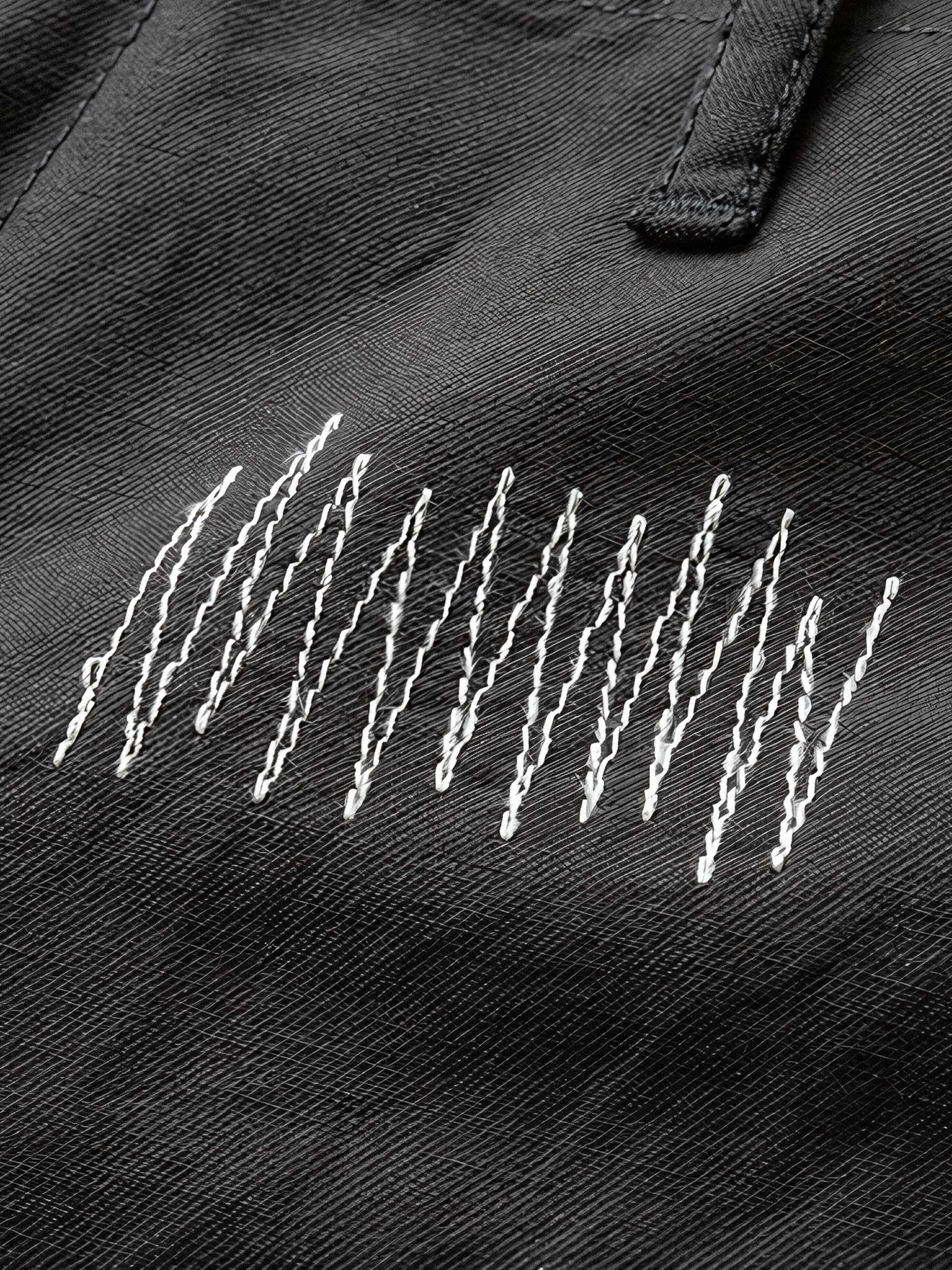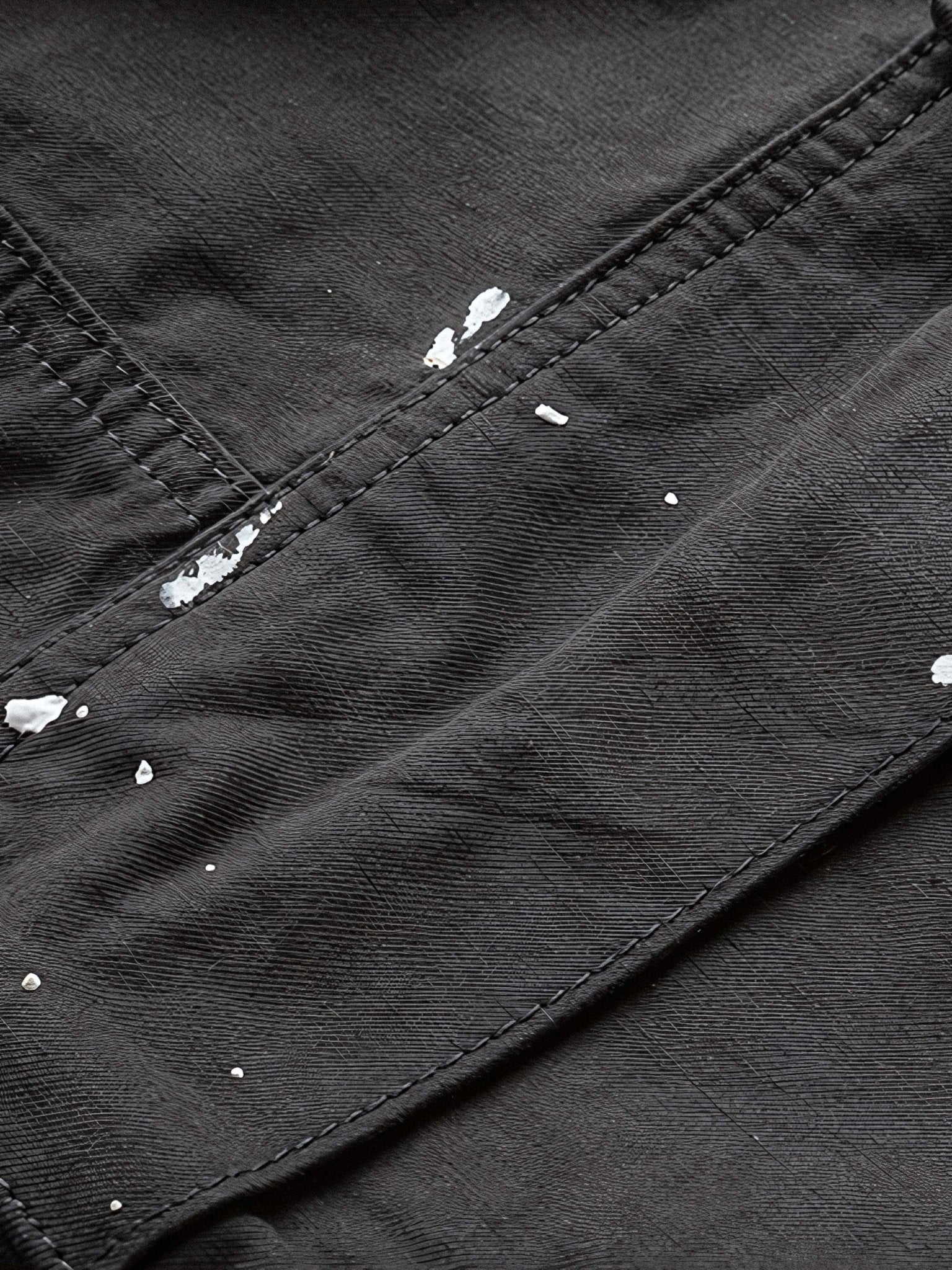 パンツの裾には、フリンジ加工が施されており、個性的な印象を与えています。また、パンツ上部には特別な縫い目で作られたデザインがあり、ユニークなアート要素を取り入れています。これらのディテールは、パンツに魅力と特別感をもたらしています。